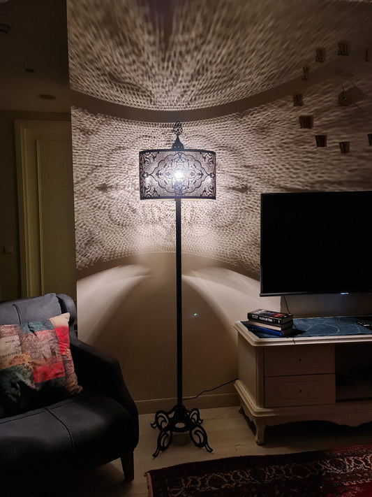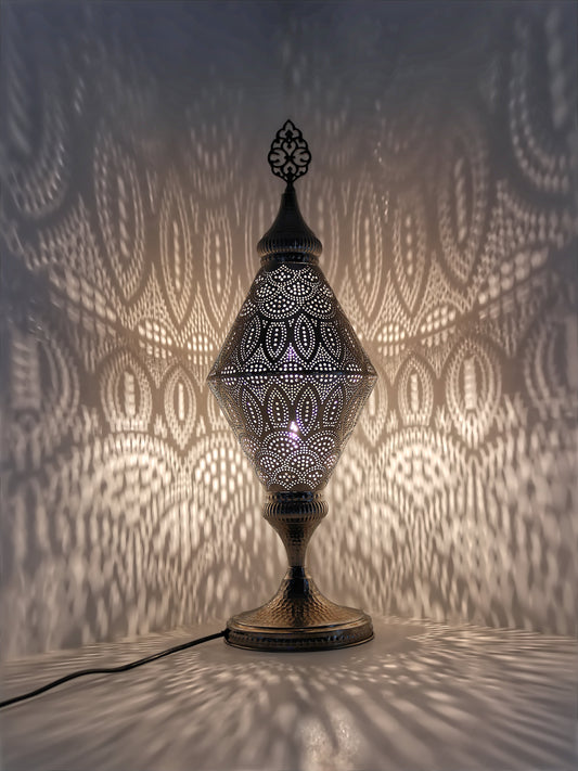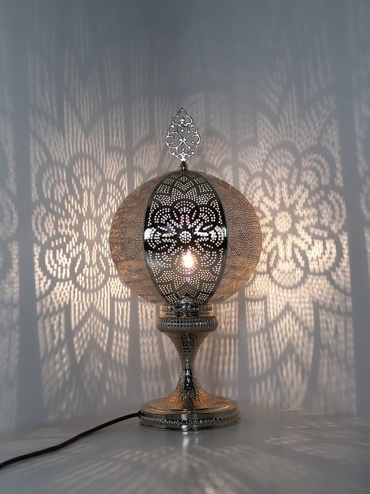 Moroccan Pierced Metal Swan Neck Table Lamp