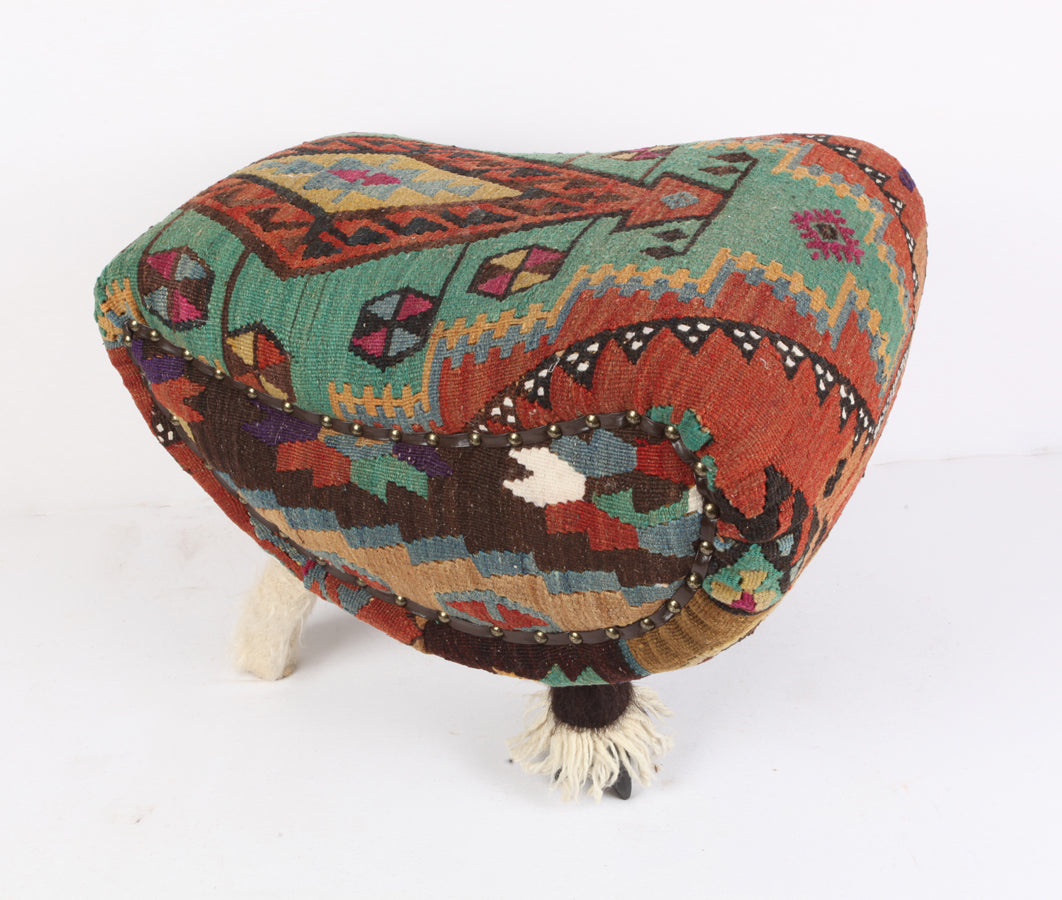 Turkish Kilim Upholstered Yoga Stool