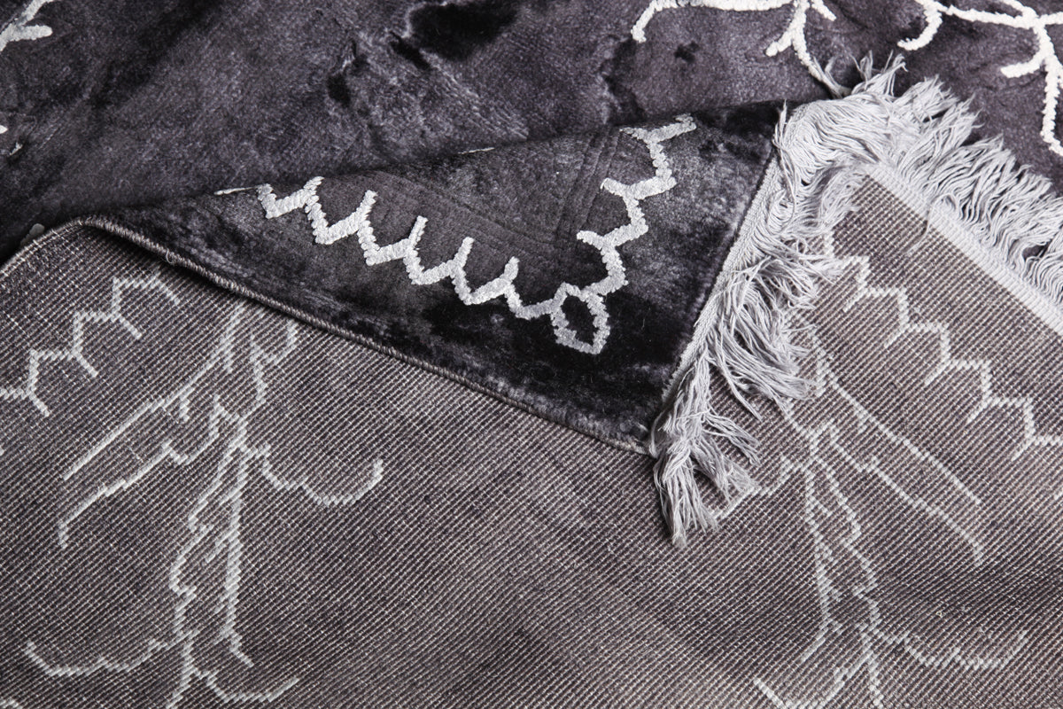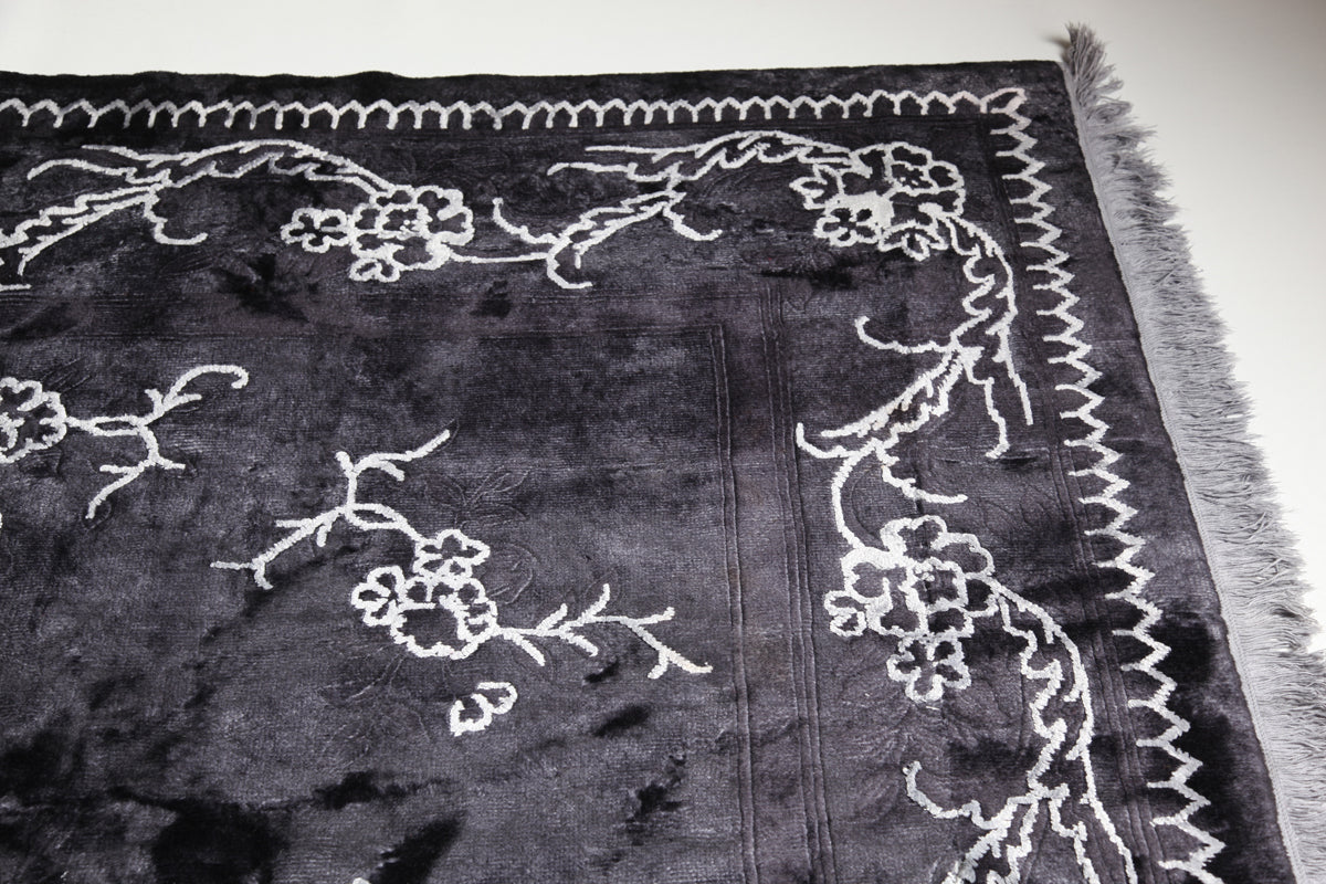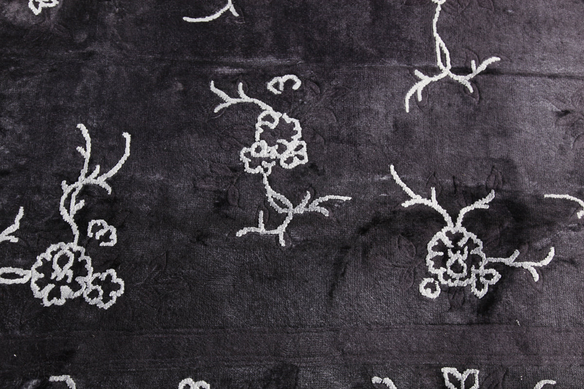 This Anatolian Carpet boasts a rare and fascinating history. Originally a needlepoint rug, it has been expertly recreated as a pile rug with a striking black field color and striking white designs that make it truly one-of-a-kind.