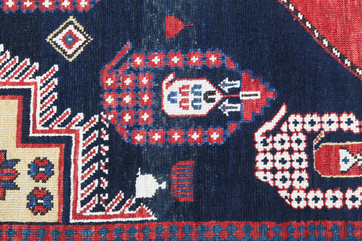 Chila Shirvans are usually more geometric than what you see here. That is why this is very unusual. Not only does this beautiful Chila Shirvan have geometric patterns, it also has more Kazak motives and Bidjar looking central design, which all makes the rug multi-cultural weaving. The rug has beautiful prime colors obtained from plants and insects.