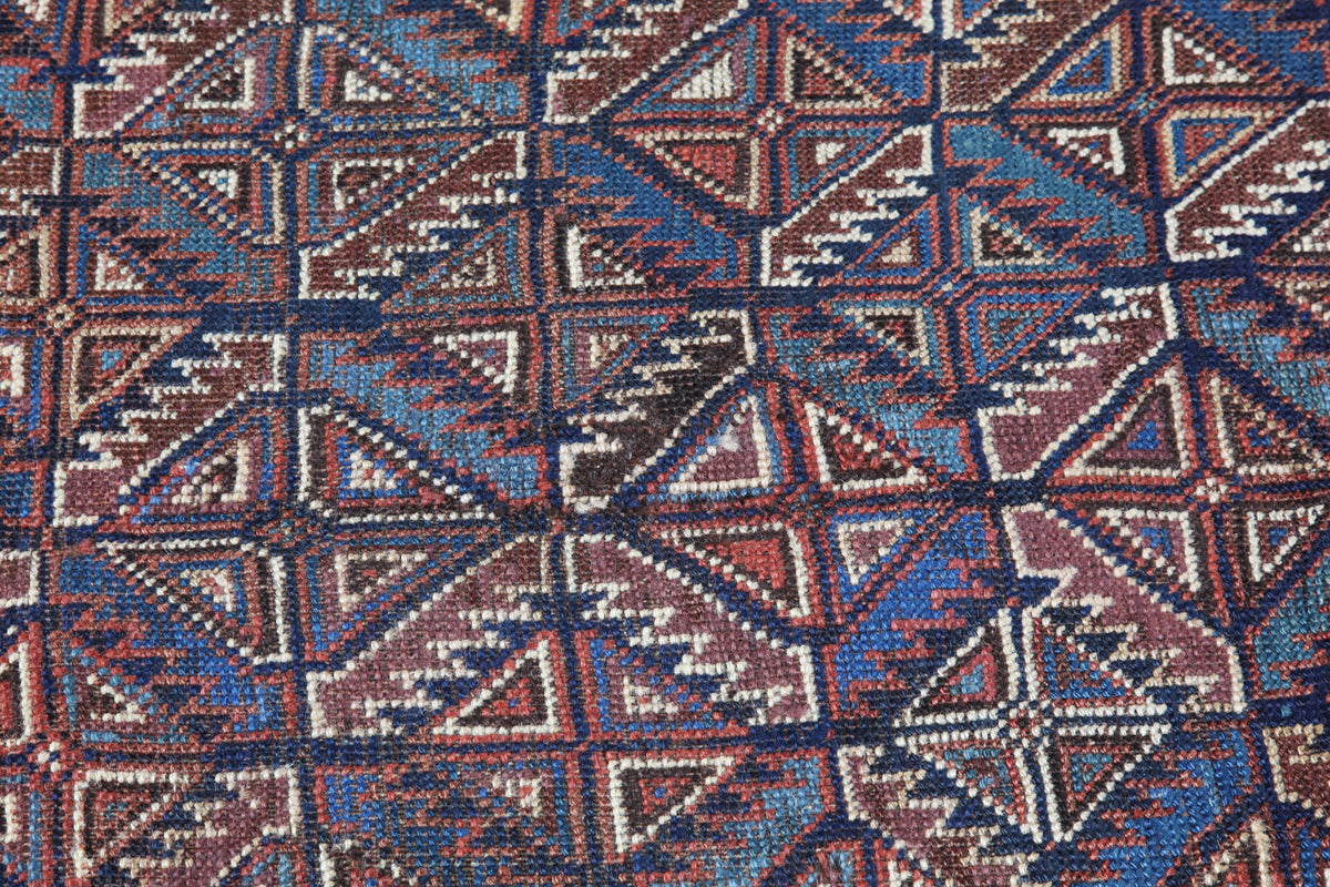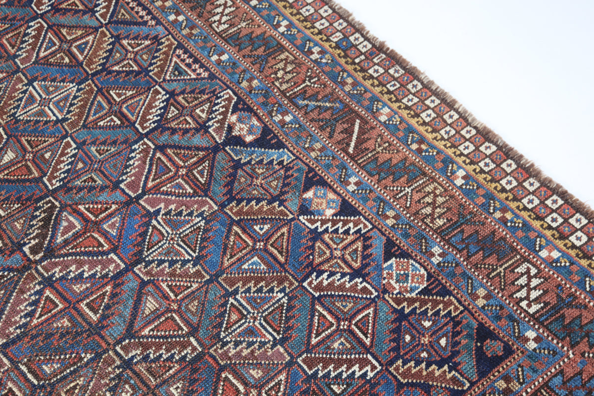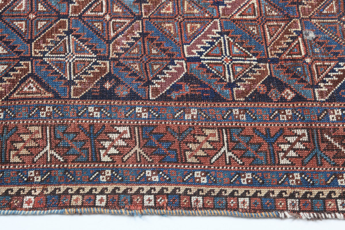Antique Qashqai Carpets, part of the broader tradition of Shirazi weaving by tribes such as the Qashqai and Khamseh since the 16th century, are distinguished by their bold tribal patterns and rustic character. This particular rug exhibits a pronounced West Central Asian influence, showcasing a complex array of geometric Turkic designs that speak to a rich intercultural heritage. These motifs carry deep symbolic meaning: representations of love, power, and protection are woven into the fabric through abstract depictions of dragons—symbols of strength and vigilance—nightingales, which evoke beauty and poetic inspiration, and various good luck charms intended to safeguard the home. Crafted with time-honored techniques and natural dyes, the carpet exemplifies both artistic mastery and cultural storytelling, making it a prized piece that combines enduring durability with profound symbolic significance.