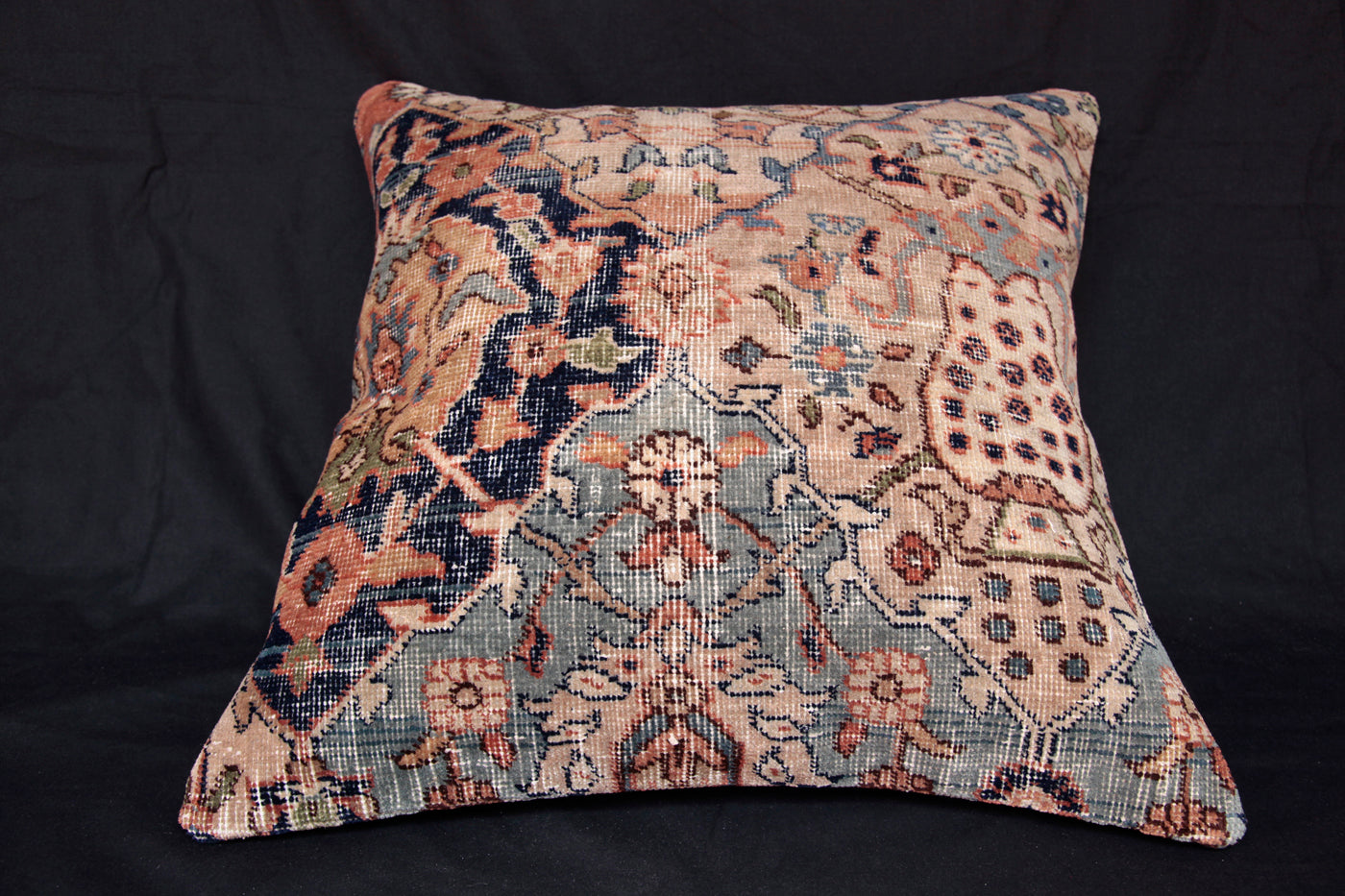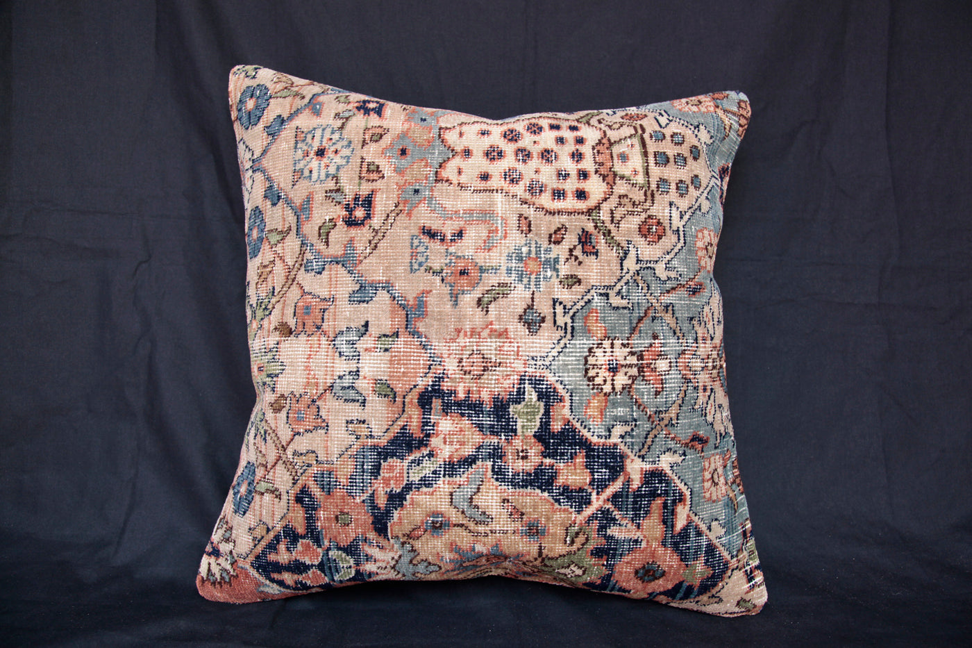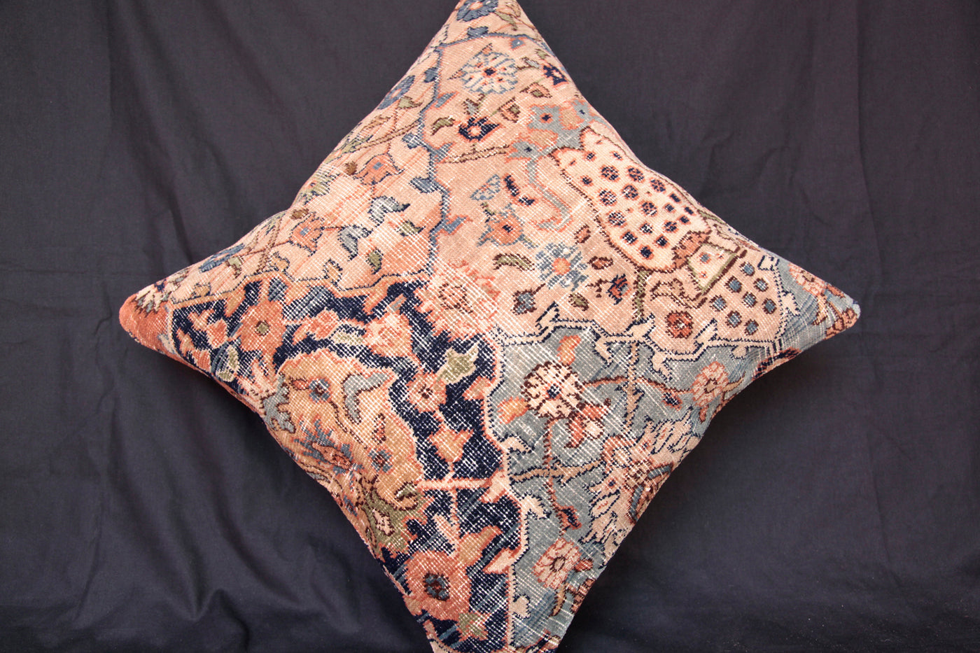These pillow cases are crafted from authentic fragments of antique handwoven carpets originating from Turkey or Central Asia, each piece offering a rare glimpse into the region's rich textile heritage. Their unique designs and intricate patterns make them exceptional decorative accents, reflecting centuries-old weaving traditions. The value of these pillows increases with their age, which explains the variation in price among pieces of similar size. For example, the Kayseri carpet pillow case below exemplifies the distinctive craftsmanship and durable materials typical of historic Anatolian rugs, making each pillow a prized collector’s item and a sophisticated addition to any interior. Below is a Kayseri carpet pillow case