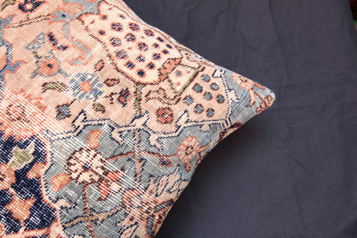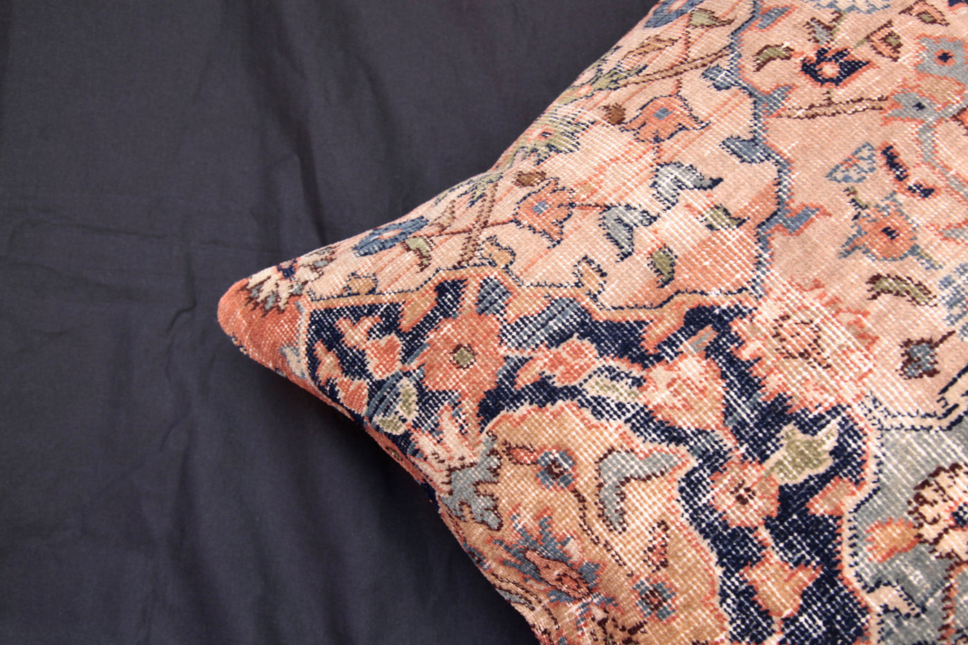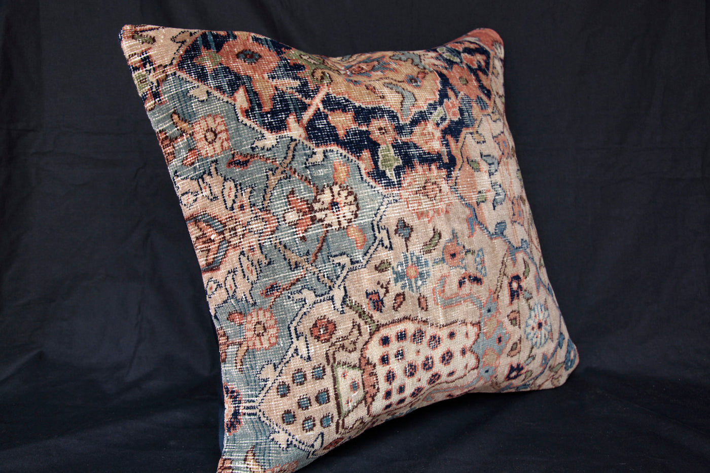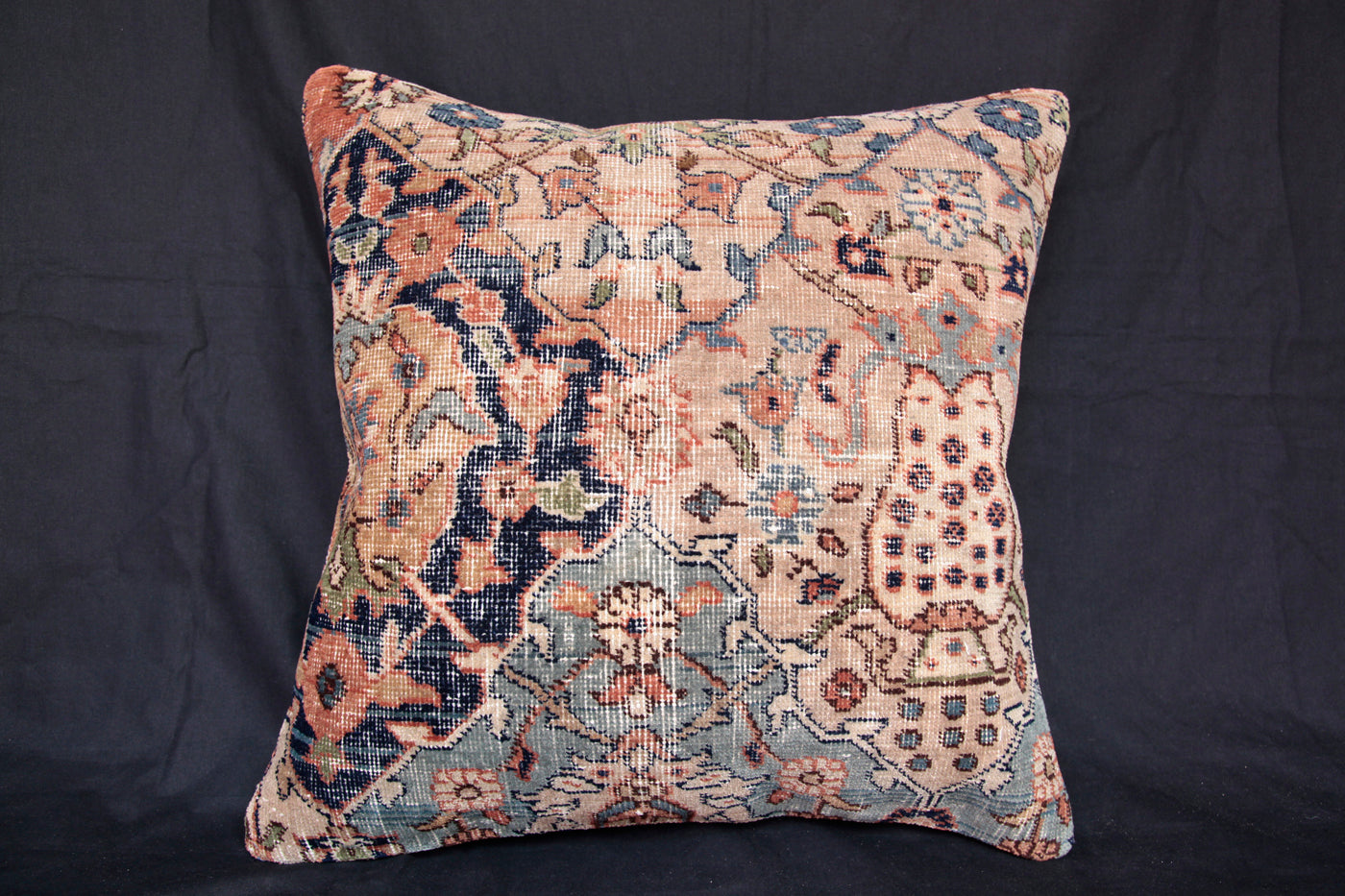 These pillow cases are crafted from authentic fragments of antique handwoven carpets originating from Turkey or Central Asia, each piece offering a rare glimpse into the region's rich textile heritage. Their unique designs and intricate patterns make them exceptional decorative accents, reflecting centuries-old weaving traditions. The value of these pillows increases with their age, which explains the variation in price among pieces of similar size. For example, the Kayseri carpet pillow case below exemplifies the distinctive craftsmanship and durable materials typical of historic Anatolian rugs, making each pillow a prized collector’s item and a sophisticated addition to any interior. Below is a Kayseri carpet pillow case