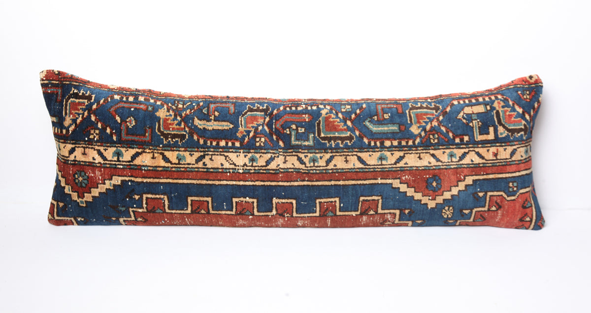 These pillow cases are crafted from authentic fragments of antique handwoven carpets originating from Turkey or Central Asia, each piece offering a rare glimpse into the region's rich textile heritage. Their unique designs and intricate patterns make them exceptional decorative accents, reflecting centuries-old weaving traditions. The value of these pillows increases with their age, which explains the variation in price among pieces of similar size. The distinctive craftsmanship and durable materials typical of historic Anatolian rugs, make each pillow a prized collector’s item and a sophisticated addition to any interior.
