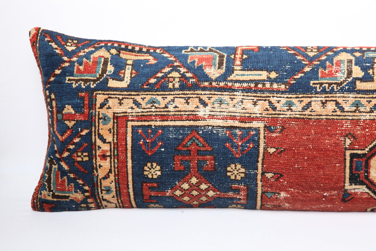 These pillow cases are crafted from authentic fragments of antique handwoven carpets originating from Turkey or Central Asia, each piece offering a rare glimpse into the region's rich textile heritage. Their unique designs and intricate patterns make them exceptional decorative accents, reflecting centuries-old weaving traditions. The value of these pillows increases with their age, which explains the variation in price among pieces of similar size. The distinctive craftsmanship and durable materials typical of historic Anatolian rugs, make each pillow a prized collector’s item and a sophisticated addition to any interior.