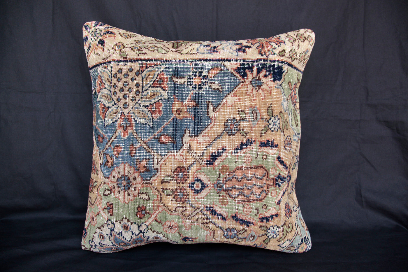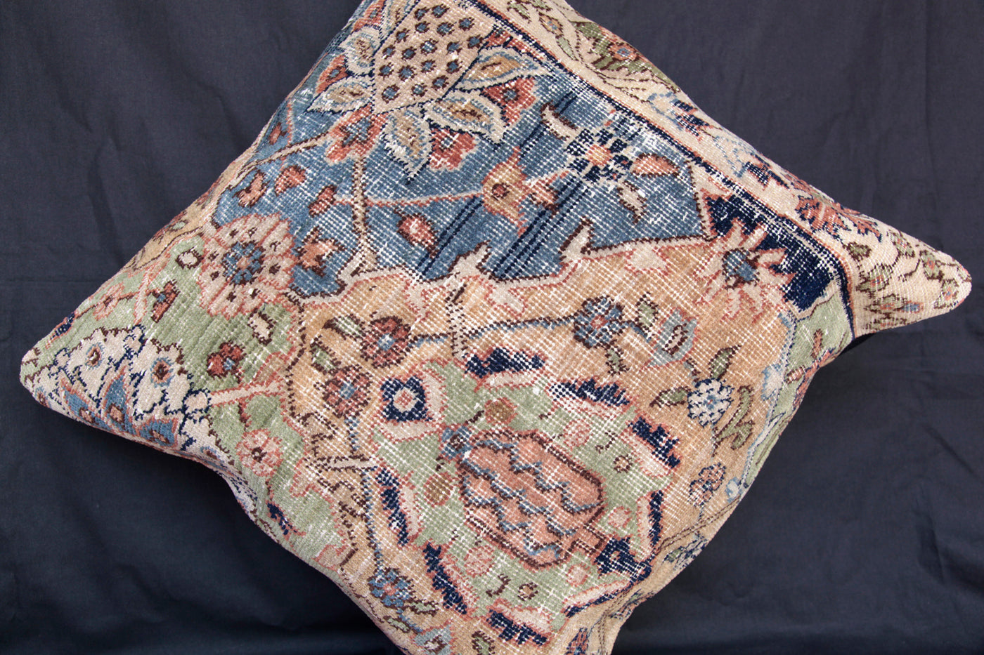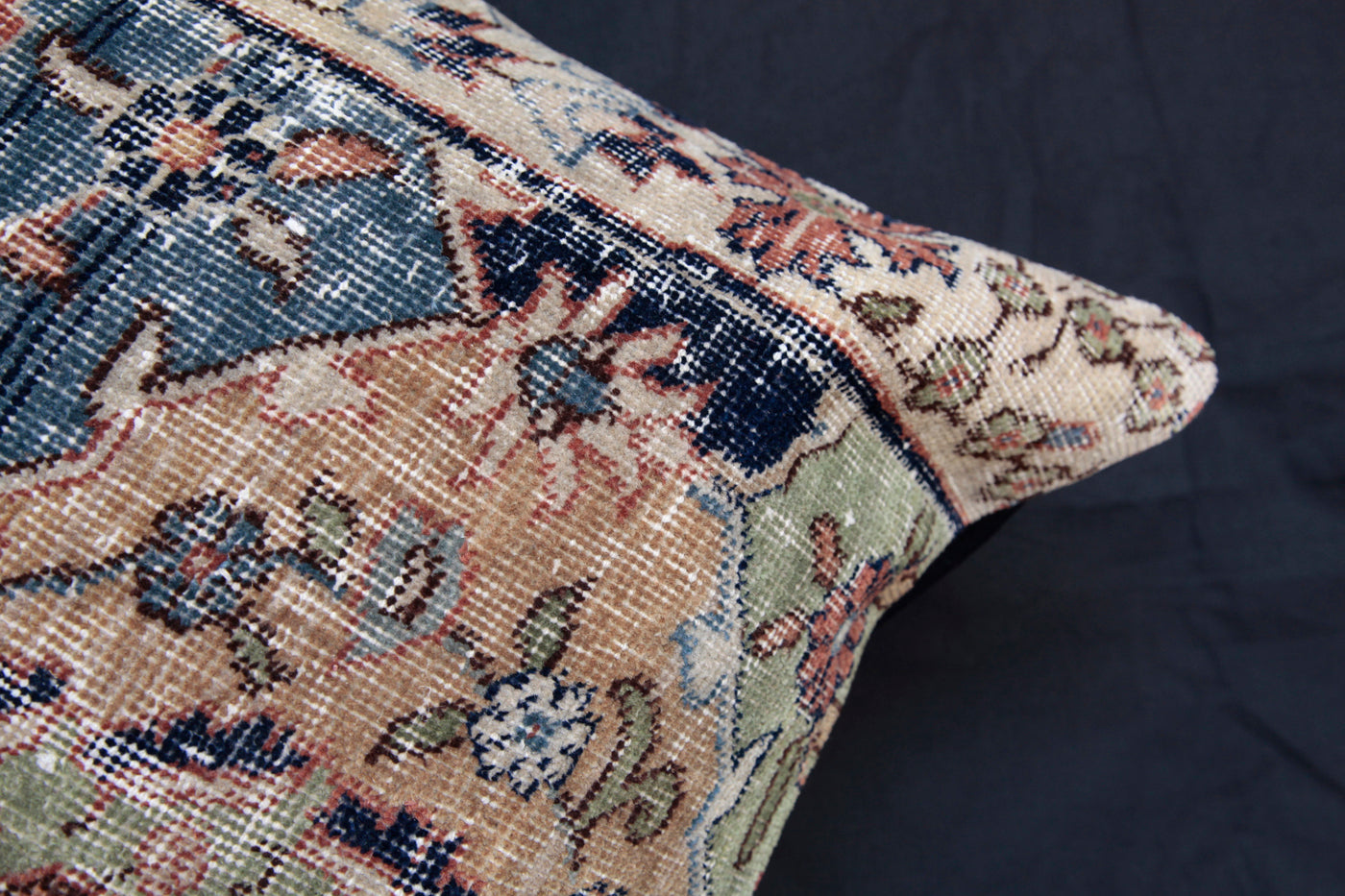 These pillow cases are crafted from authentic fragments of antique handwoven carpets originating from Turkey or Central Asia, each piece offering a rare glimpse into the region's rich textile heritage. Their unique designs and intricate patterns make them exceptional decorative accents, reflecting centuries-old weaving traditions. The value of these pillows increases with their age, which explains the variation in price among pieces of similar size. For example, the Kayseri carpet pillow case below exemplifies the distinctive craftsmanship and durable materials typical of historic Anatolian rugs, making each pillow a prized collector’s item and a sophisticated addition to any interior.