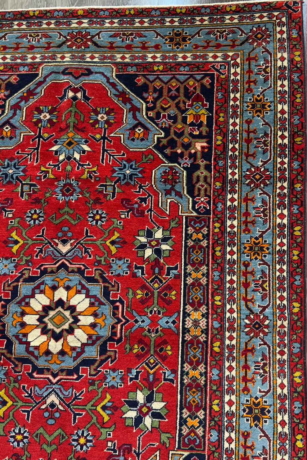 Our handwoven rugs use handspun wool and natural vegetable dyes set with safe, allergy-reducing processes. Antique rugs are over 100 years old, while vintage pieces range from 20 to 100 years. These unique rugs, once made for dowries and gifts, feature rare sizes and colors. As traditional weaving fades, each rug is carefully restored to preserve its quality, offering a distinctive and valuable addition to any collection.
