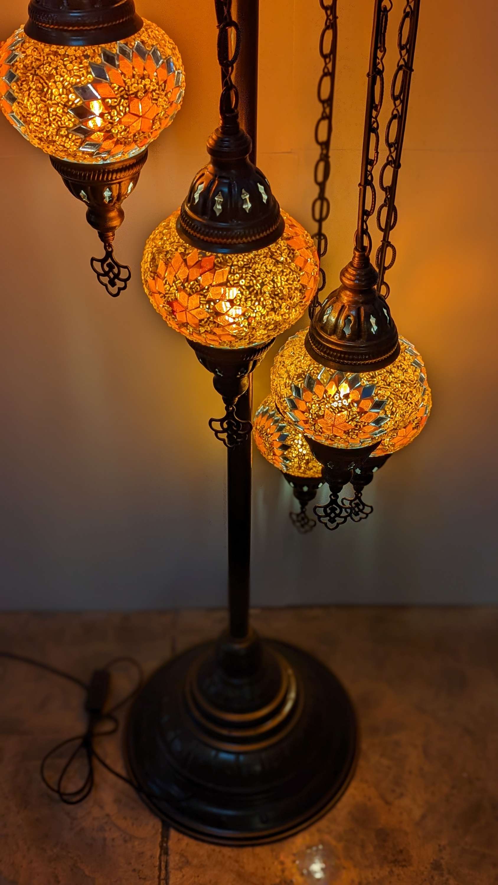 Our Mosaic Glass Lamps feature exquisite Bohemian handblown & hand decorated glass globes that reflect traditional craftsmanship. The metal frames are individually crafted and shaped with precision, especially on larger models, enhancing durability and aesthetic appeal. Our lamps are made in Turkey only after an order is placed, guaranteeing quality and authenticity. The glass globes used are significantly heavier and more robust than standard market offerings, designed to provide lasting beauty instead of delicate fragility. In the unlikely event your lamp is damaged during shipping, please notify us immediately so we can arrange a replacement. Despite recent increases in material costs by 15% to 25%, we remain committed to offering these artisan creations at accessible prices without compromising on quality.