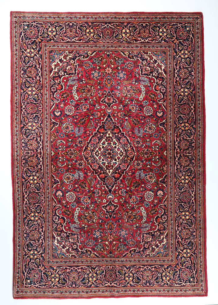 All of the rugs you can find on our site are hand-knotted in the traditional form, which includes wool on wool or wool on an organic pre-washed cotton base. These styles of carpet weaving make the rugs incredibly durable and the natural vegetable dyes resist color bleeding. The wool in our rugs is not bleached and has been washed multiple times during their production. Some of the much older antique rugs may have some repairs on the edges and fringes may be restored.
