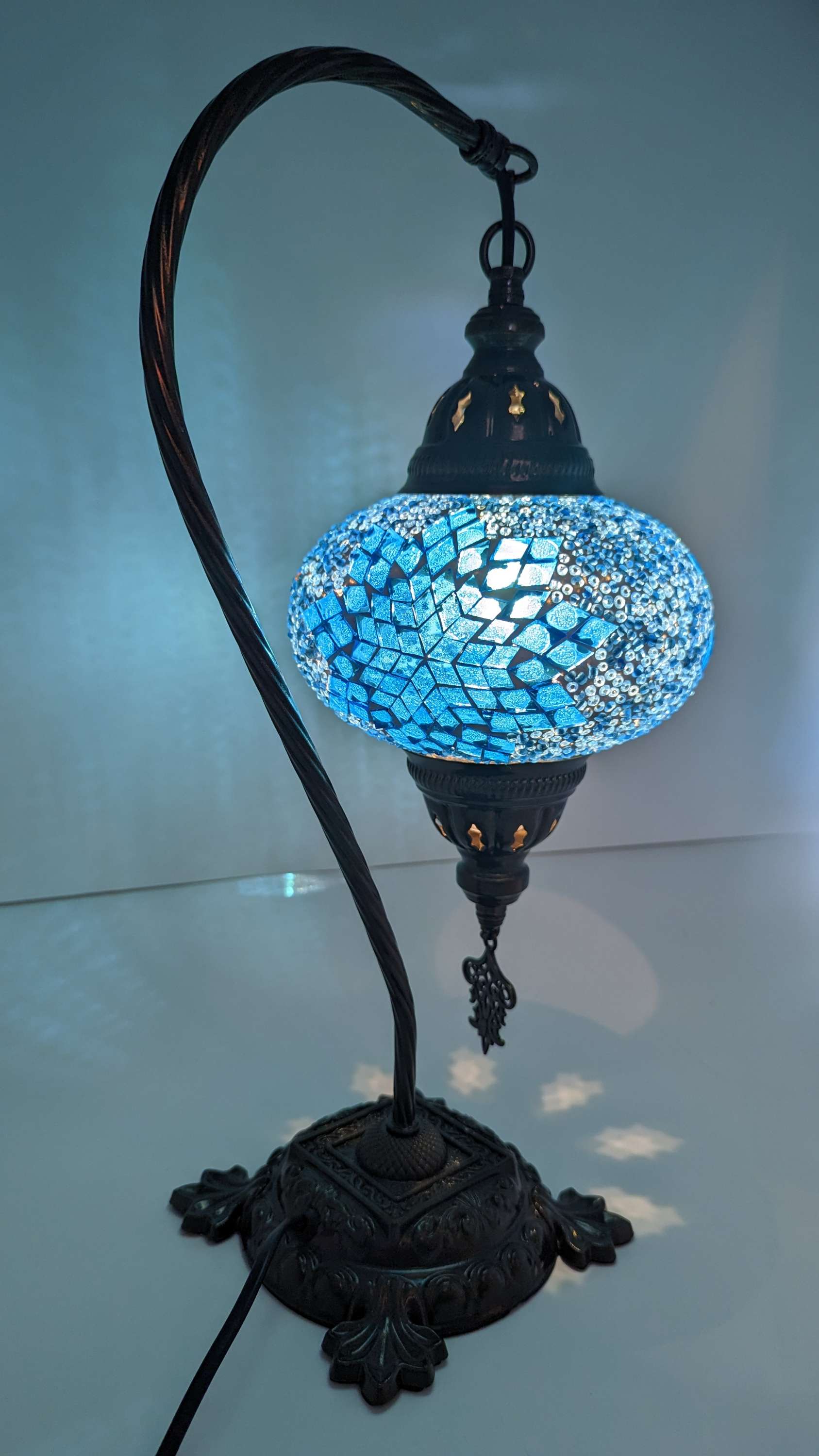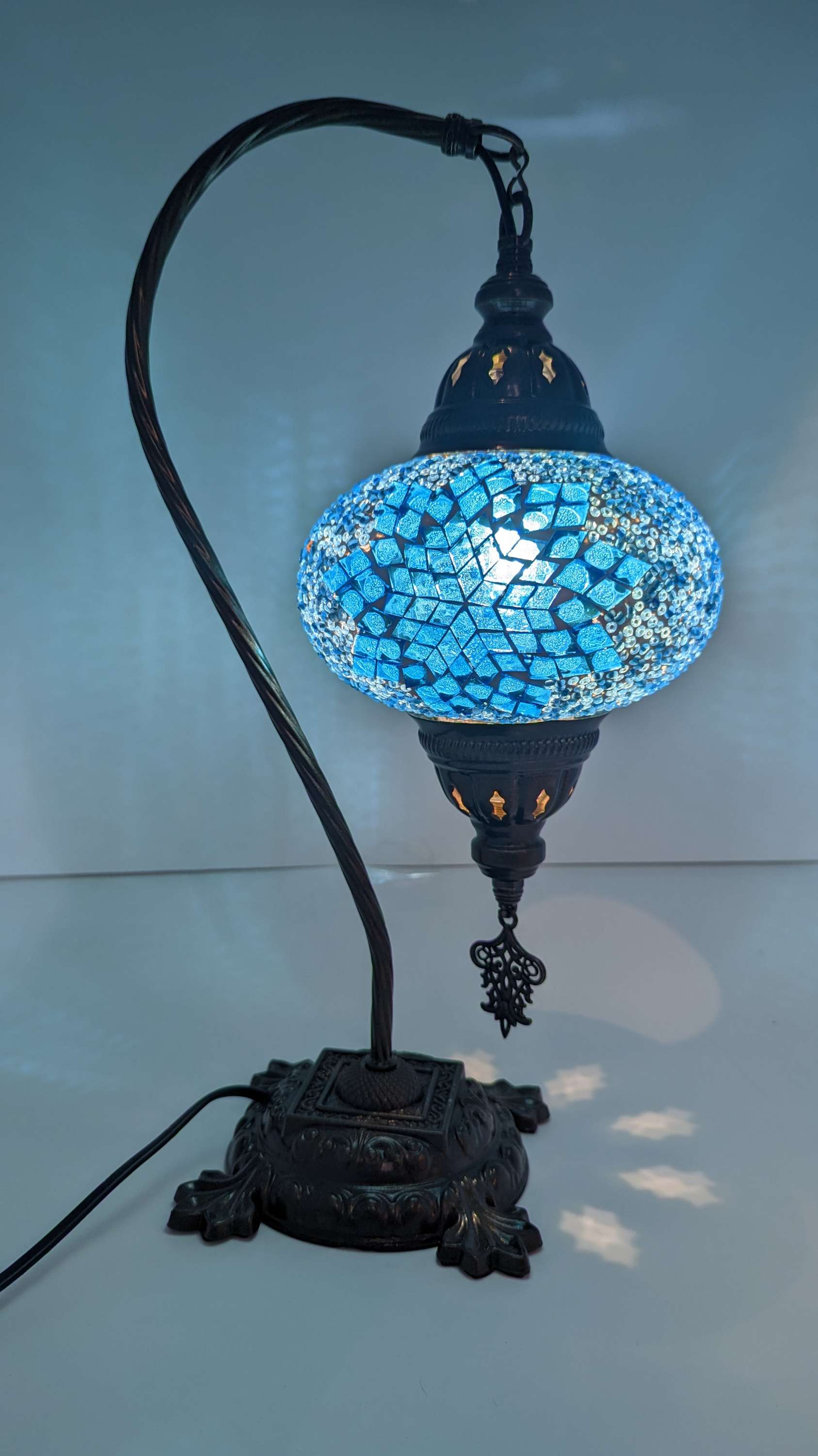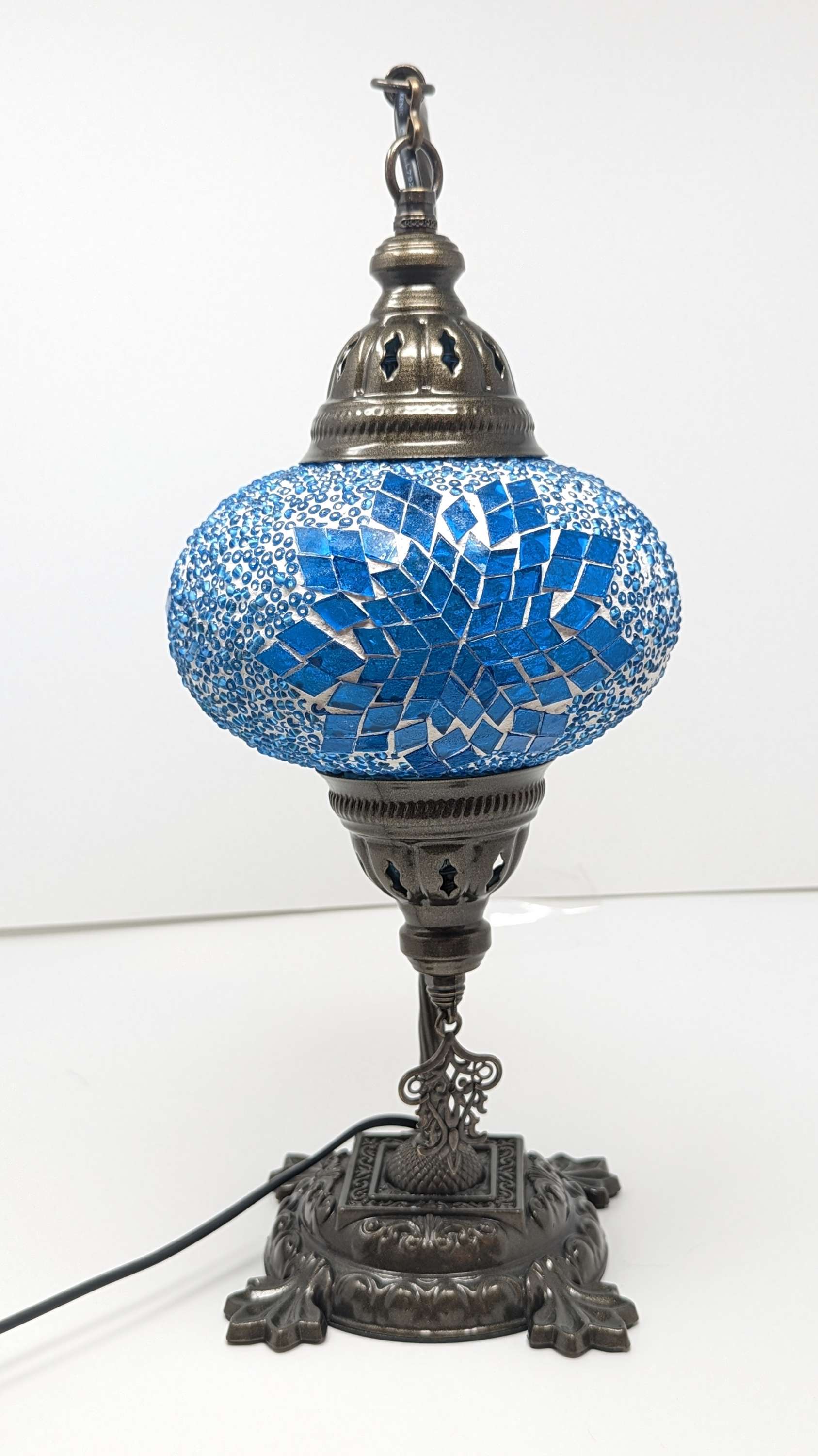Our Turkish Mosaic Glass Table Lamps feature exquisite Bohemian glass globes decorated with meticulously hand-cut glass pieces and beads, creating detailed mosaic designs that reflect traditional craftsmanship. Each lamp is carefully handmade, ensuring every piece is unique, with no two lamps being exactly alike—even when sharing similar patterns and colors. The metal frames are individually crafted and shaped with precision, especially on larger models, enhancing durability and aesthetic appeal. Our lamps are made in Turkey only after an order is placed, guaranteeing quality and authenticity. The glass globes used are significantly heavier and more robust than standard market offerings, designed to provide lasting beauty instead of delicate fragility. In the unlikely event your lamp is damaged during shipping, please notify us immediately so we can arrange a replacement. Despite recent increases in material costs by 15% to 25%, we remain committed to offering these artisan creations at accessible prices without compromising on quality.