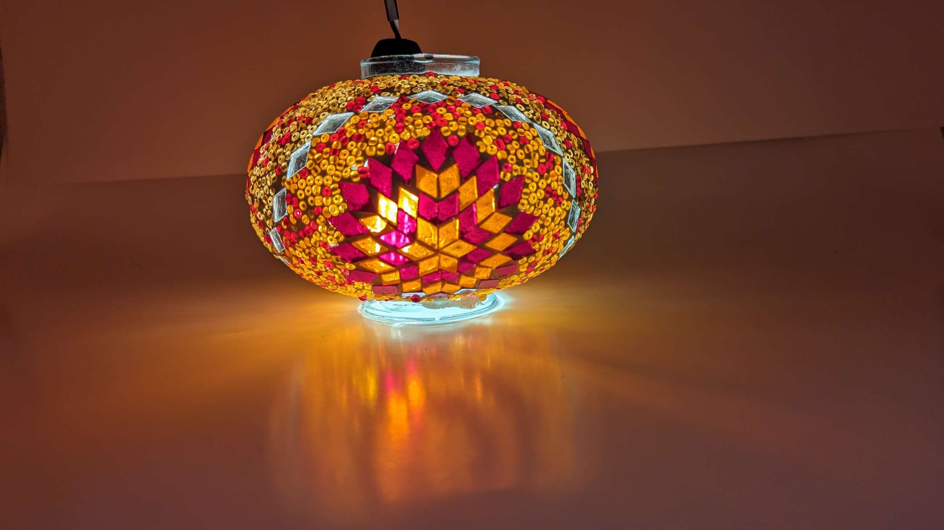 Our Turkish Mosaic Glass Table Lamps feature exquisite Bohemian glass globes decorated with meticulously hand-cut glass pieces and beads, creating detailed mosaic designs that reflect traditional craftsmanship. Each lamp is carefully handmade, ensuring every piece is unique, with no two lamps being exactly alike—even when sharing similar patterns and colors. The metal frames are individually crafted and shaped with precision, especially on larger models, enhancing durability and aesthetic appeal. Our lamps are made in Turkey only after an order is placed, guaranteeing quality and authenticity. The glass globes used are significantly heavier and more robust than standard market offerings, designed to provide lasting beauty instead of delicate fragility. In the unlikely event your lamp is damaged during shipping, please notify us immediately so we can arrange a replacement. Despite recent increases in material costs by 15% to 25%, we remain committed to offering these artisan creations at accessible prices without compromising on quality.