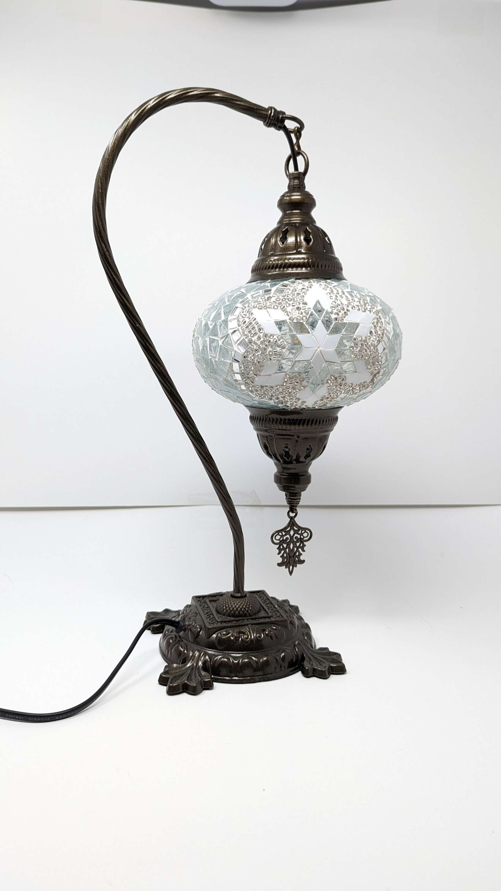 Our Turkish Mosaic Glass Table Lamps feature exquisite Bohemian glass globes decorated with meticulously hand-cut glass pieces and beads, creating detailed mosaic designs that reflect traditional craftsmanship. Each lamp is carefully handmade, ensuring every piece is unique, with no two lamps being exactly alike—even when sharing similar patterns and colors. The metal frames are individually crafted and shaped with precision, especially on larger models, enhancing durability and aesthetic appeal. Our lamps are made in Turkey only after an order is placed, guaranteeing quality and authenticity. The glass globes used are significantly heavier and more robust than standard market offerings, designed to provide lasting beauty instead of delicate fragility. In the unlikely event your lamp is damaged during shipping, please notify us immediately so we can arrange a replacement. Despite recent increases in material costs by 15% to 25%, we remain committed to offering these artisan creations at accessible prices without compromising on quality.