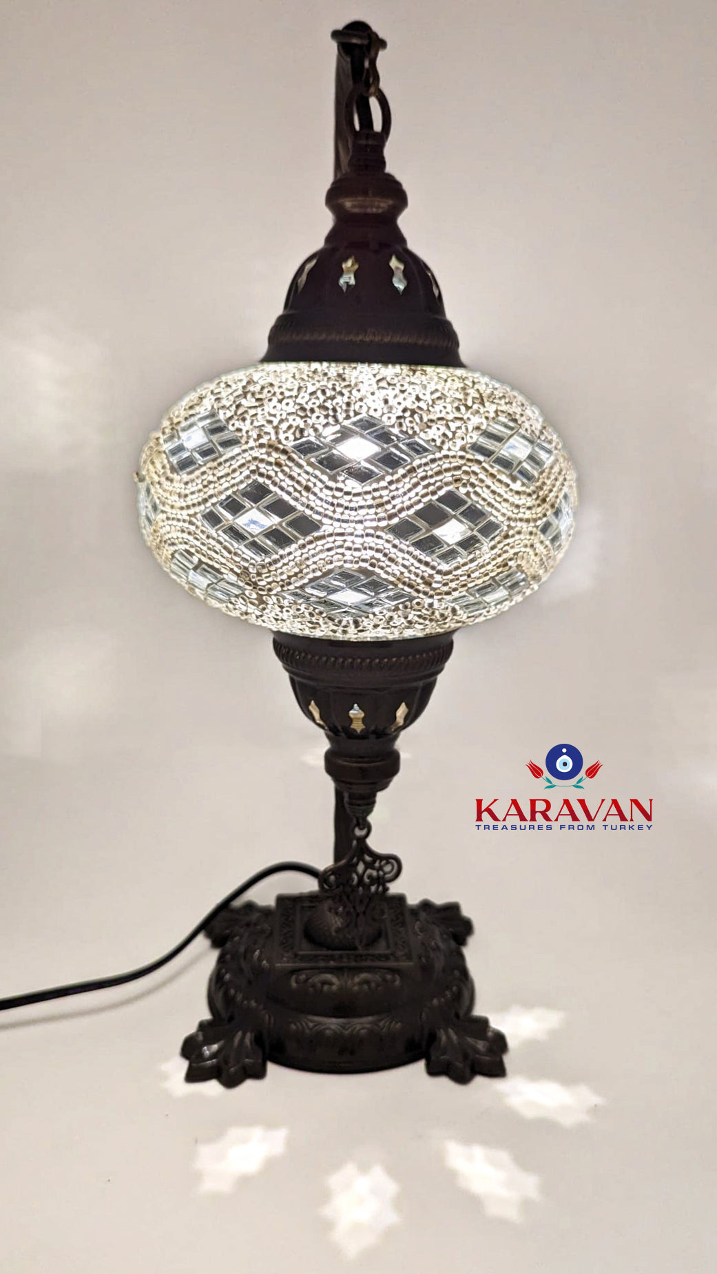 Our Turkish Mosaic Glass Table Lamps feature exquisite Bohemian glass globes decorated with meticulously hand-cut glass pieces and beads, creating detailed mosaic designs that reflect traditional craftsmanship. Each lamp is carefully handmade, ensuring every piece is unique, with no two lamps being exactly alike—even when sharing similar patterns and colors. The metal frames are individually crafted and shaped with precision, especially on larger models, enhancing durability and aesthetic appeal. Our lamps are made in Turkey only after an order is placed, guaranteeing quality and authenticity. The glass globes used are significantly heavier and more robust than standard market offerings, designed to provide lasting beauty instead of delicate fragility. In the unlikely event your lamp is damaged during shipping, please notify us immediately so we can arrange a replacement. Despite recent increases in material costs by 15% to 25%, we remain committed to offering these artisan creations at accessible prices without compromising on quality.
