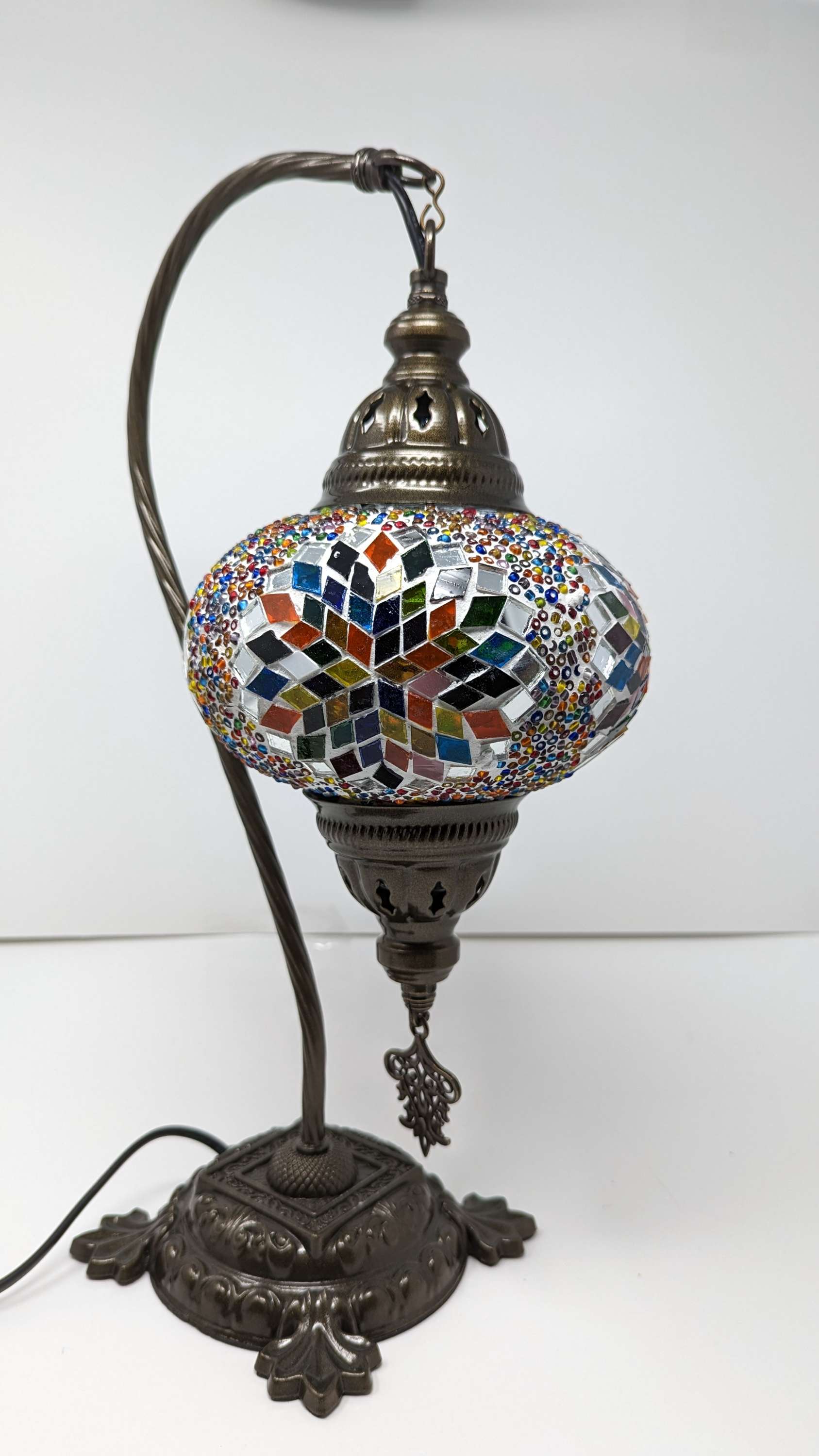 Our Turkish Mosaic Glass Table Lamps feature exquisite Bohemian glass globes decorated with meticulously hand-cut glass pieces and beads, creating detailed mosaic designs that reflect traditional craftsmanship. Each lamp is carefully handmade, ensuring every piece is unique, with no two lamps being exactly alike—even when sharing similar patterns and colors. The metal frames are individually crafted and shaped with precision, especially on larger models, enhancing durability and aesthetic appeal. Our lamps are made in Turkey only after an order is placed, guaranteeing quality and authenticity. The glass globes used are significantly heavier and more robust than standard market offerings, designed to provide lasting beauty instead of delicate fragility. In the unlikely event your lamp is damaged during shipping, please notify us immediately so we can arrange a replacement. Despite recent increases in material costs by 15% to 25%, we remain committed to offering these artisan creations at accessible prices without compromising on quality.