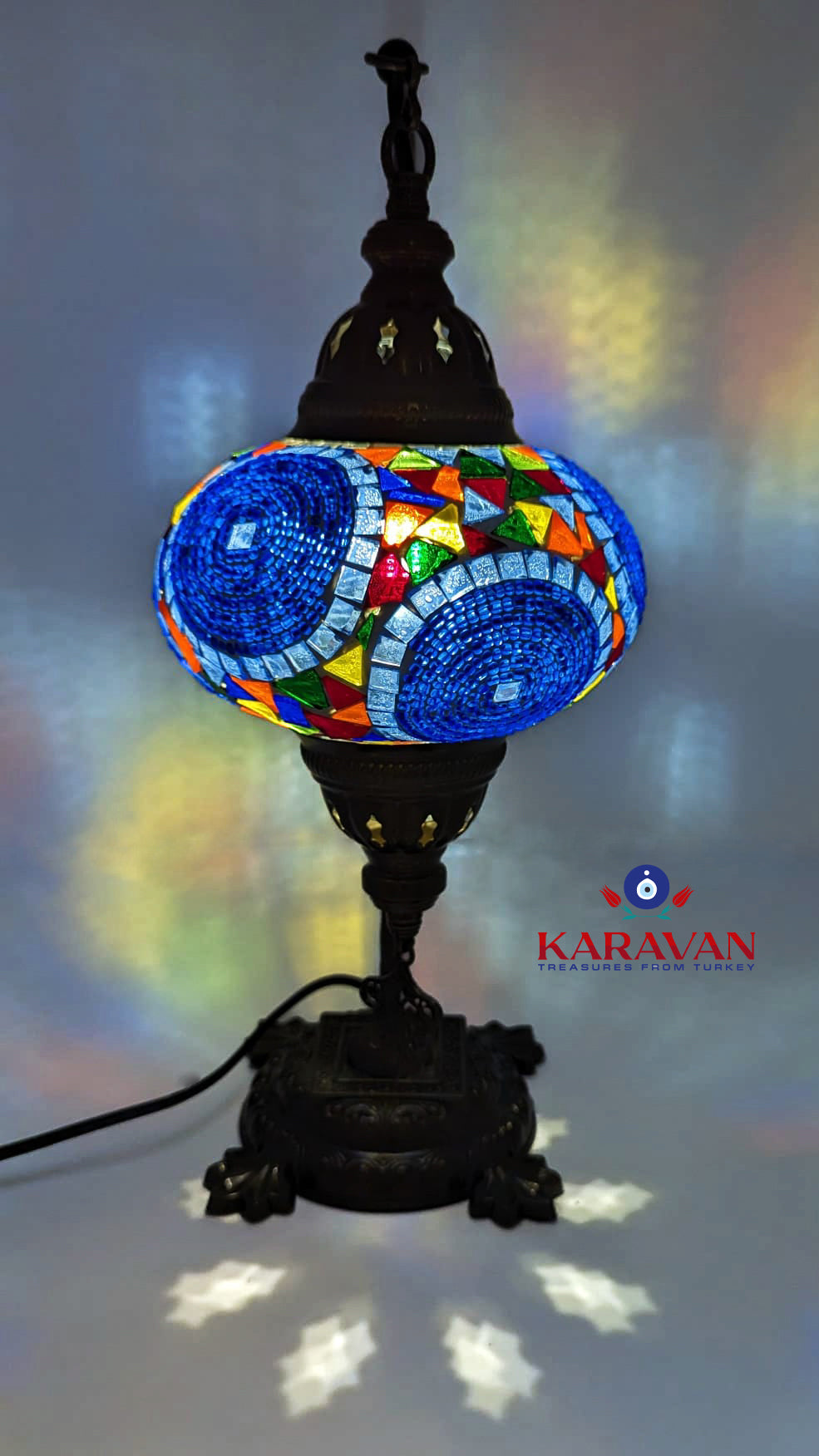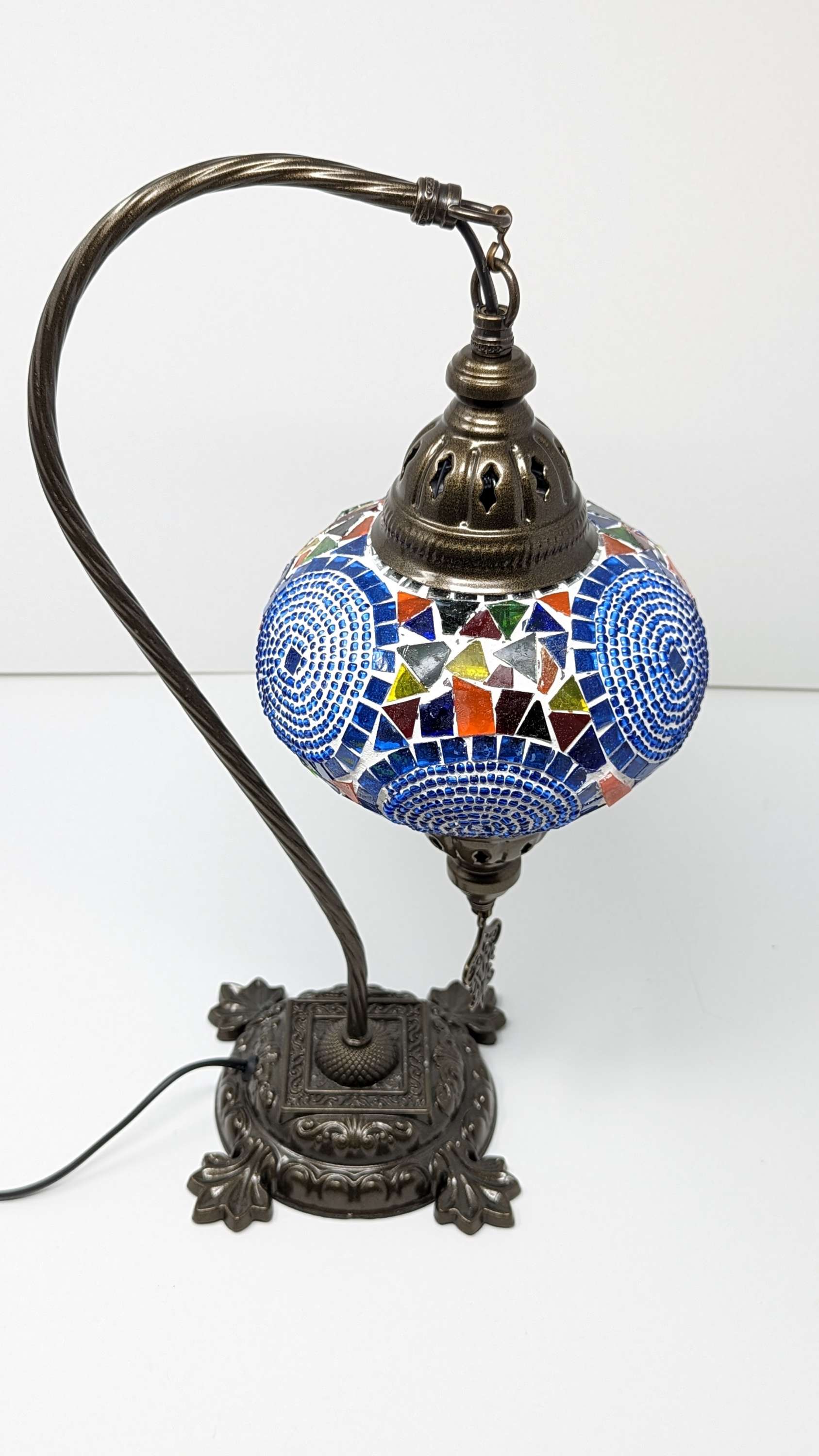 Our Turkish Mosaic Glass Table Lamps feature exquisite Bohemian glass globes decorated with meticulously hand-cut glass pieces and beads, creating detailed mosaic designs that reflect traditional craftsmanship. Each lamp is carefully handmade, ensuring every piece is unique, with no two lamps being exactly alike—even when sharing similar patterns and colors. The metal frames are individually crafted and shaped with precision, especially on larger models, enhancing durability and aesthetic appeal. Our lamps are made in Turkey only after an order is placed, guaranteeing quality and authenticity. The glass globes used are significantly heavier and more robust than standard market offerings, designed to provide lasting beauty instead of delicate fragility. In the unlikely event your lamp is damaged during shipping, please notify us immediately so we can arrange a replacement. Despite recent increases in material costs by 15% to 25%, we remain committed to offering these artisan creations at accessible prices without compromising on quality.