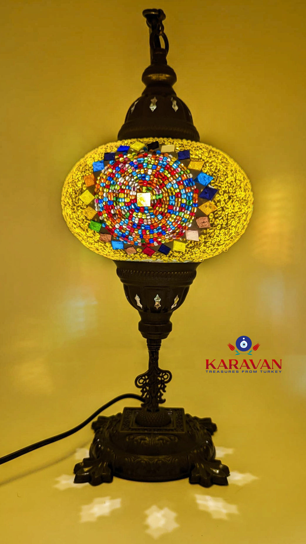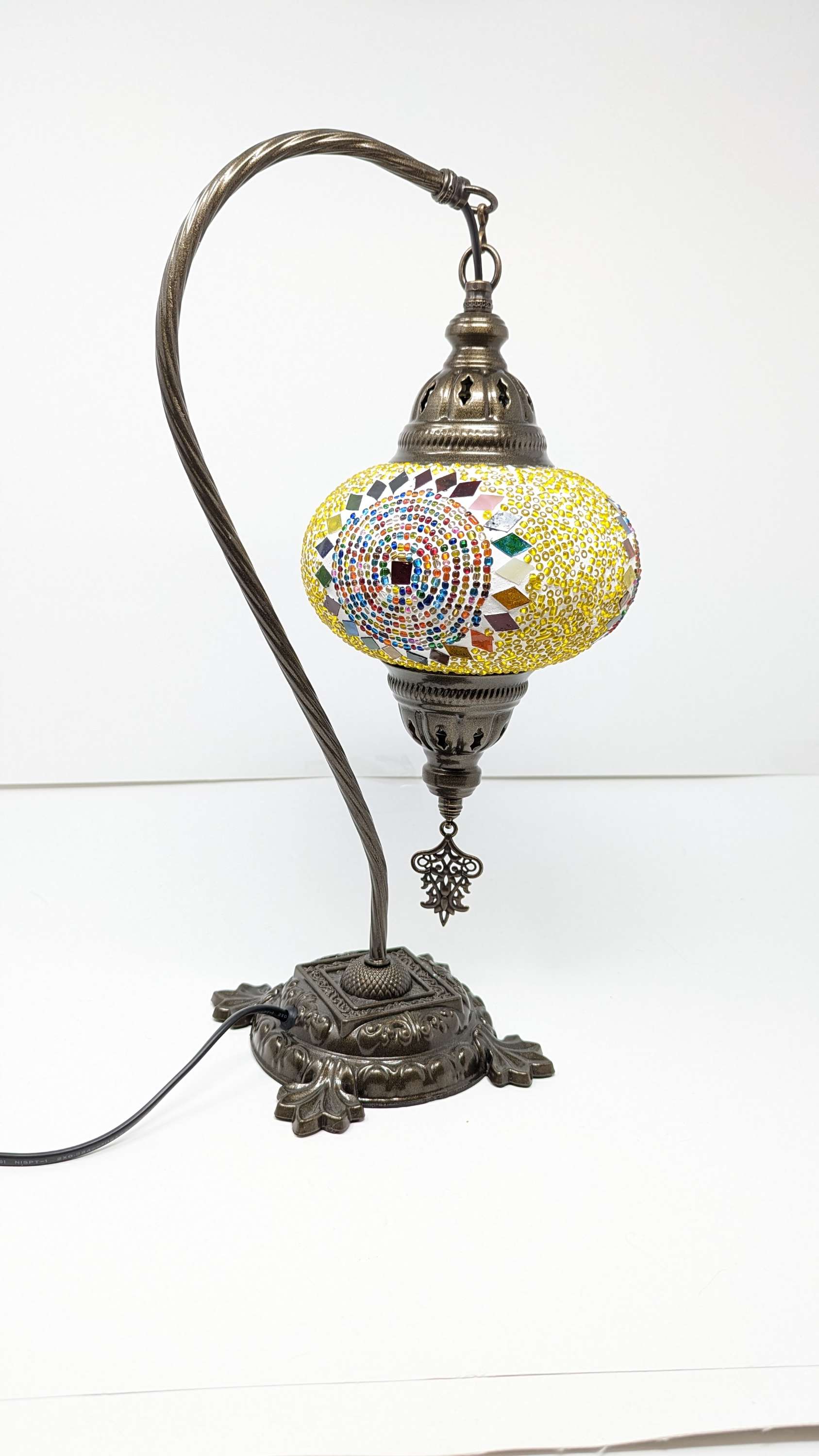 Our Turkish Mosaic Glass Table Lamps feature exquisite Bohemian glass globes decorated with meticulously hand-cut glass pieces and beads, creating detailed mosaic designs that reflect traditional craftsmanship. Each lamp is carefully handmade, ensuring every piece is unique, with no two lamps being exactly alike—even when sharing similar patterns and colors. The metal frames are individually crafted and shaped with precision, especially on larger models, enhancing durability and aesthetic appeal. Our lamps are made in Turkey only after an order is placed, guaranteeing quality and authenticity. The glass globes used are significantly heavier and more robust than standard market offerings, designed to provide lasting beauty instead of delicate fragility. In the unlikely event your lamp is damaged during shipping, please notify us immediately so we can arrange a replacement. Despite recent increases in material costs by 15% to 25%, we remain committed to offering these artisan creations at accessible prices without compromising on quality.