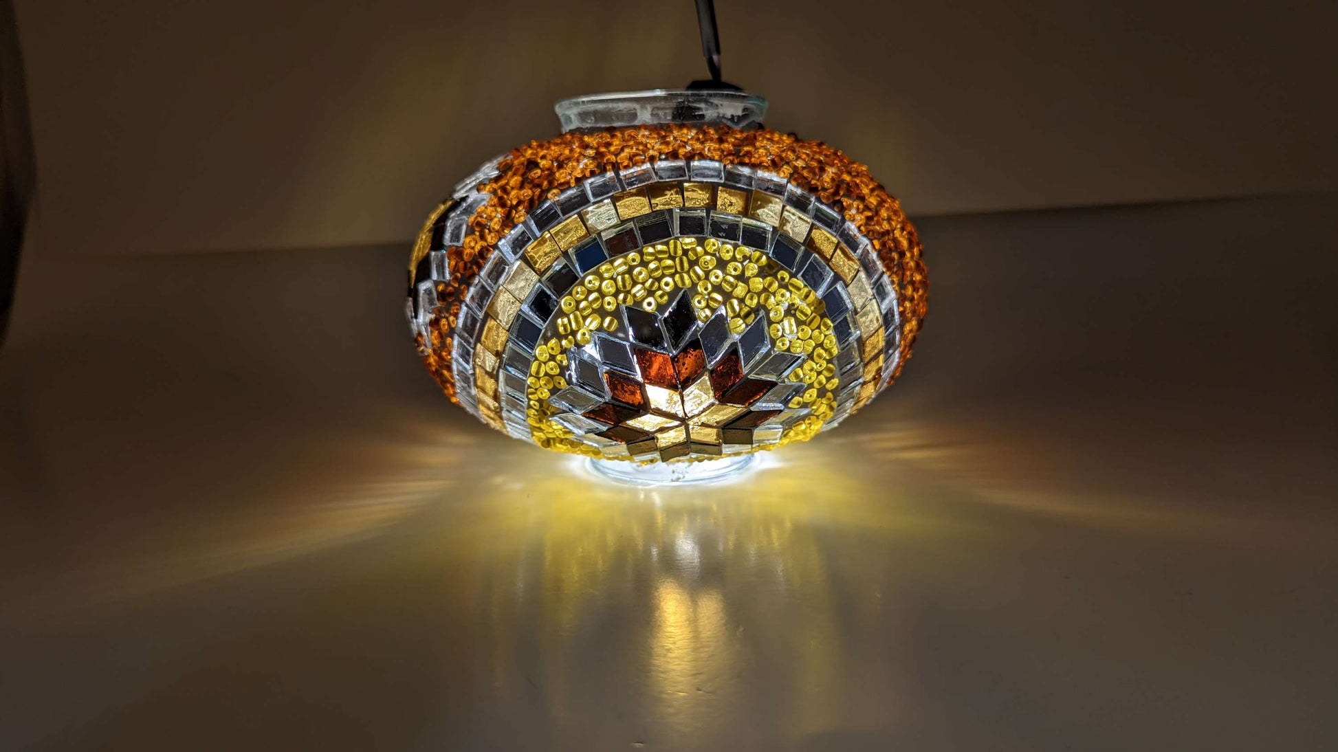 Our Turkish Mosaic Glass Table Lamps feature exquisite Bohemian glass globes decorated with meticulously hand-cut glass pieces and beads, creating detailed mosaic designs that reflect traditional craftsmanship. Each lamp is carefully handmade, ensuring every piece is unique, with no two lamps being exactly alike—even when sharing similar patterns and colors. The metal frames are individually crafted and shaped with precision, especially on larger models, enhancing durability and aesthetic appeal. Our lamps are made in Turkey only after an order is placed, guaranteeing quality and authenticity. The glass globes used are significantly heavier and more robust than standard market offerings, designed to provide lasting beauty instead of delicate fragility. In the unlikely event your lamp is damaged during shipping, please notify us immediately so we can arrange a replacement. Despite recent increases in material costs by 15% to 25%, we remain committed to offering these artisan creations at accessible prices without compromising on quality.
