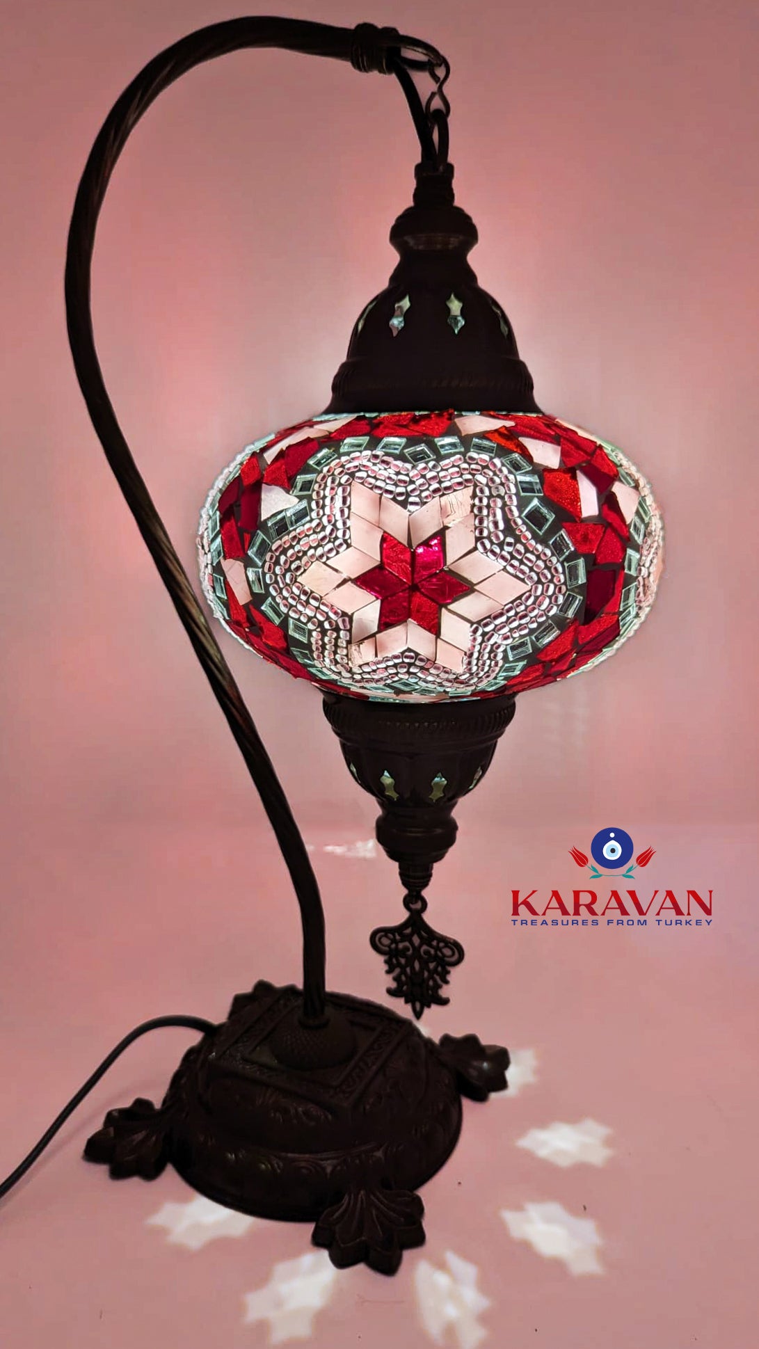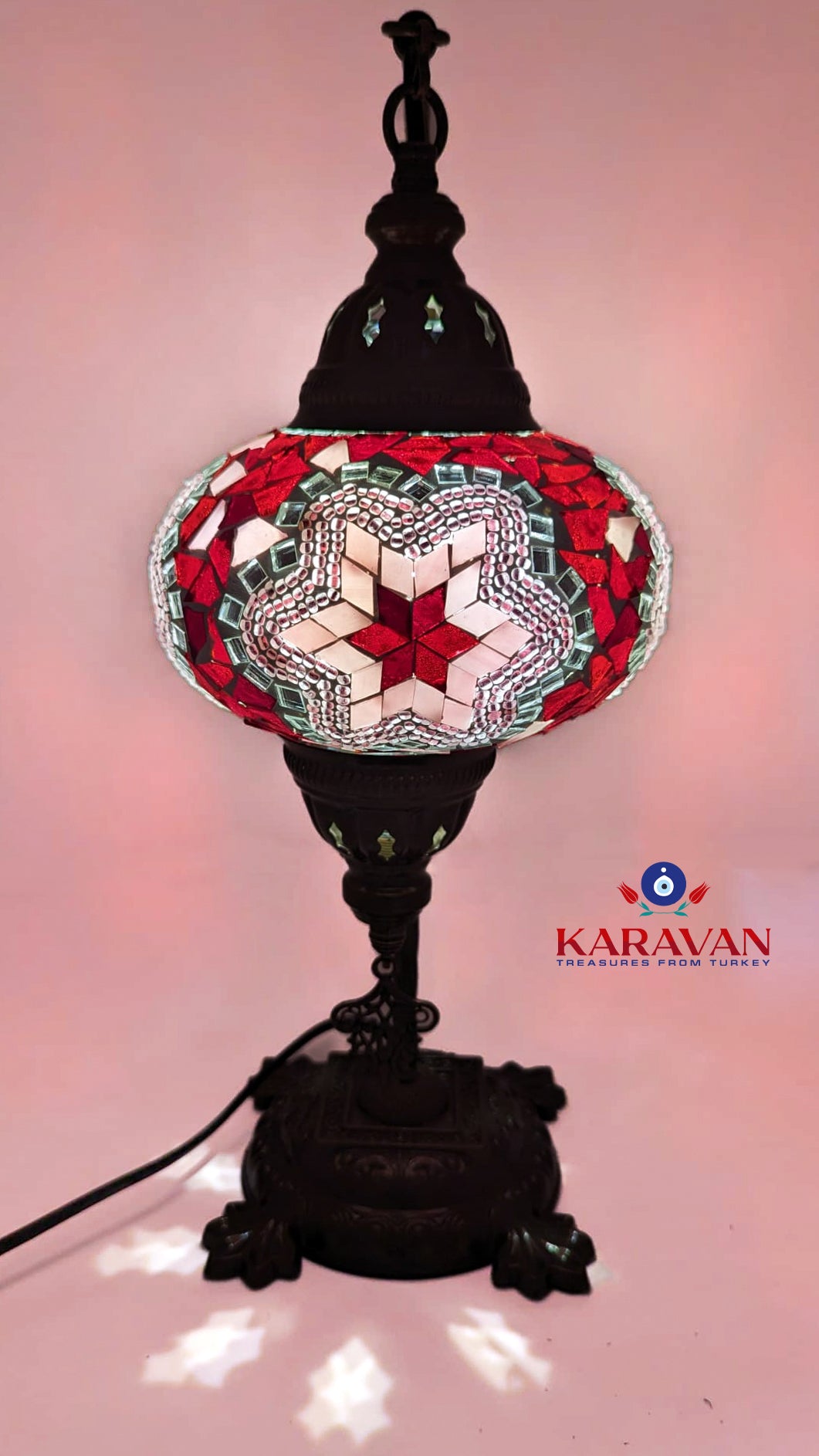Our Turkish Mosaic Glass Table Lamps feature exquisite Bohemian glass globes decorated with meticulously hand-cut glass pieces and beads, creating detailed mosaic designs that reflect traditional craftsmanship. Each lamp is carefully handmade, ensuring every piece is unique, with no two lamps being exactly alike—even when sharing similar patterns and colors. The metal frames are individually crafted and shaped with precision, especially on larger models, enhancing durability and aesthetic appeal. Our lamps are made in Turkey only after an order is placed, guaranteeing quality and authenticity. The glass globes used are significantly heavier and more robust than standard market offerings, designed to provide lasting beauty instead of delicate fragility. In the unlikely event your lamp is damaged during shipping, please notify us immediately so we can arrange a replacement. Despite recent increases in material costs by 15% to 25%, we remain committed to offering these artisan creations at accessible prices without compromising on quality.