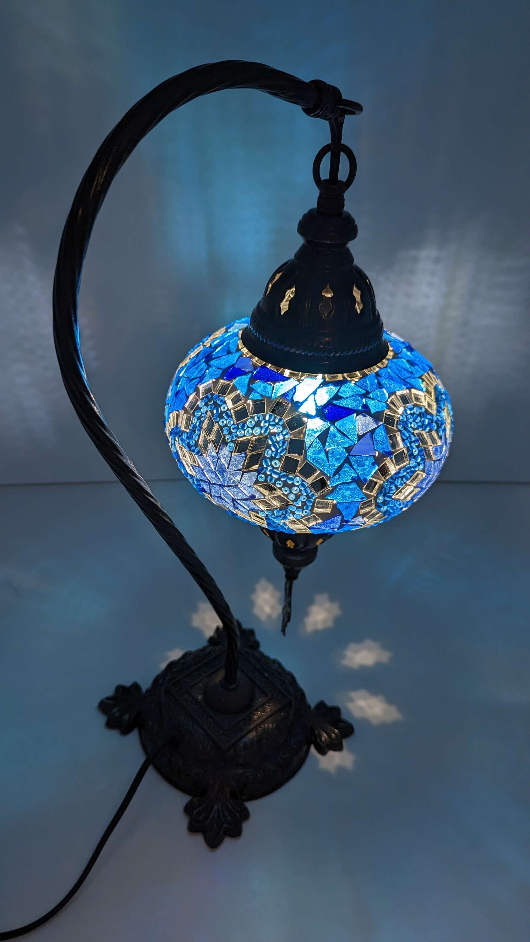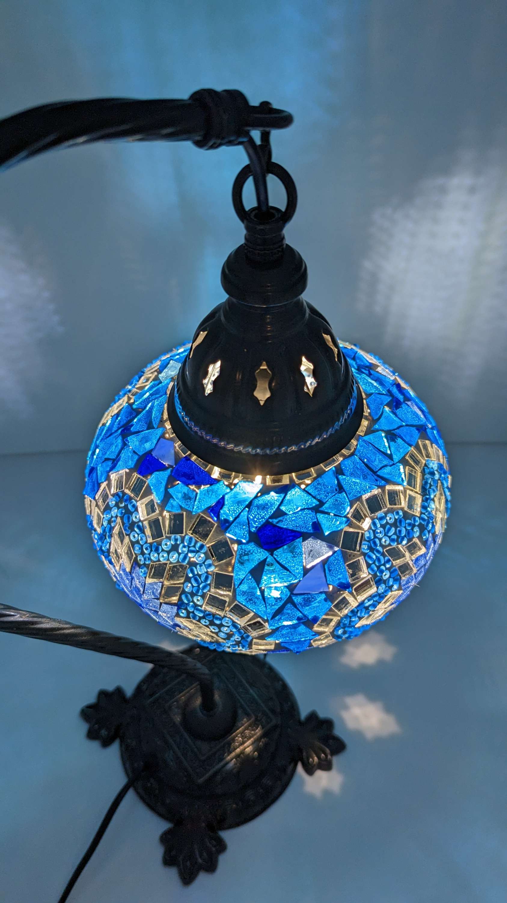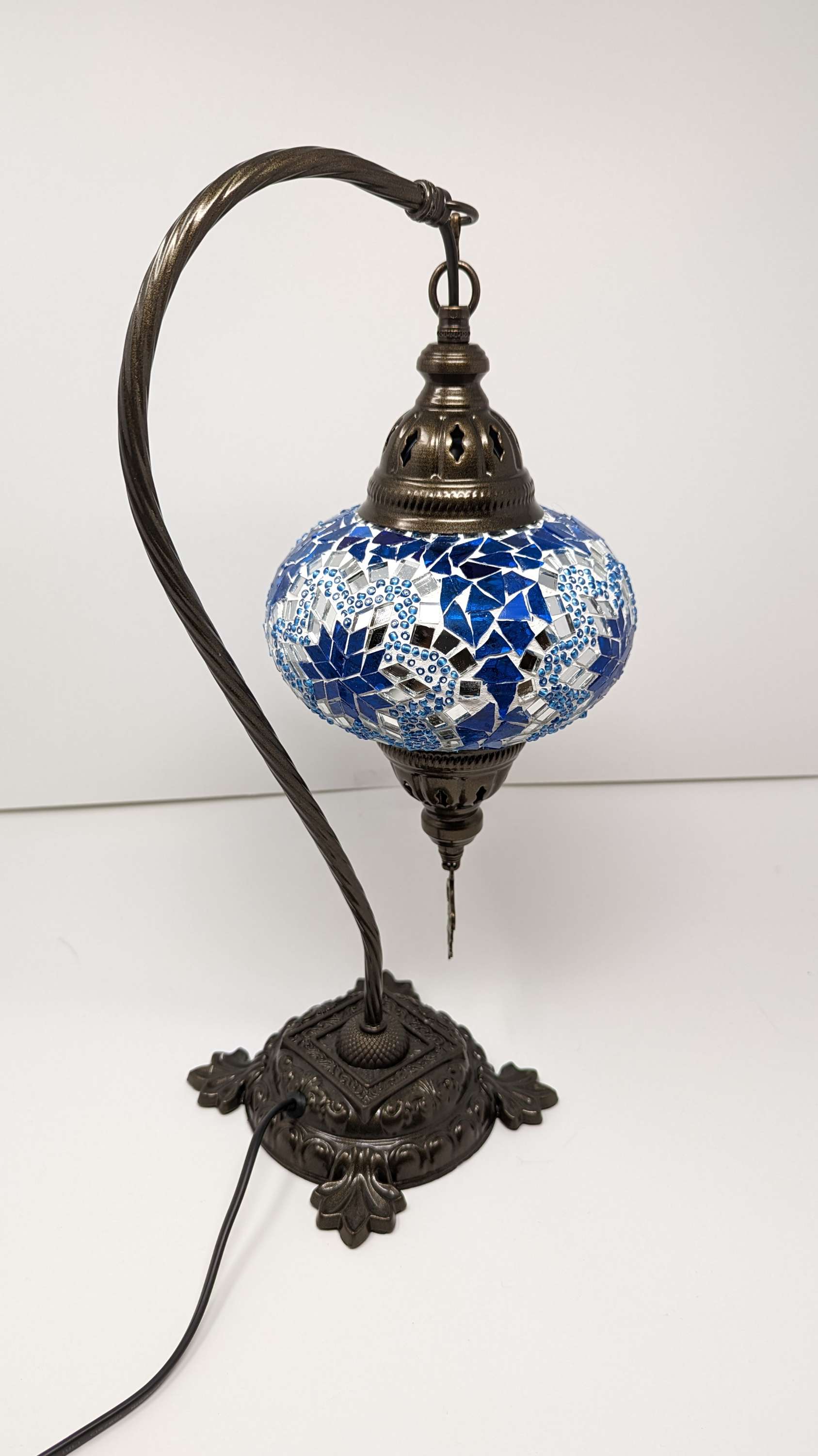 Our Turkish Mosaic Glass Table Lamps feature exquisite Bohemian glass globes decorated with meticulously hand-cut glass pieces and beads, creating detailed mosaic designs that reflect traditional craftsmanship. Each lamp is carefully handmade, ensuring every piece is unique, with no two lamps being exactly alike—even when sharing similar patterns and colors. The metal frames are individually crafted and shaped with precision, especially on larger models, enhancing durability and aesthetic appeal. Our lamps are made in Turkey only after an order is placed, guaranteeing quality and authenticity. The glass globes used are significantly heavier and more robust than standard market offerings, designed to provide lasting beauty instead of delicate fragility. In the unlikely event your lamp is damaged during shipping, please notify us immediately so we can arrange a replacement. Despite recent increases in material costs by 15% to 25%, we remain committed to offering these artisan creations at accessible prices without compromising on quality.