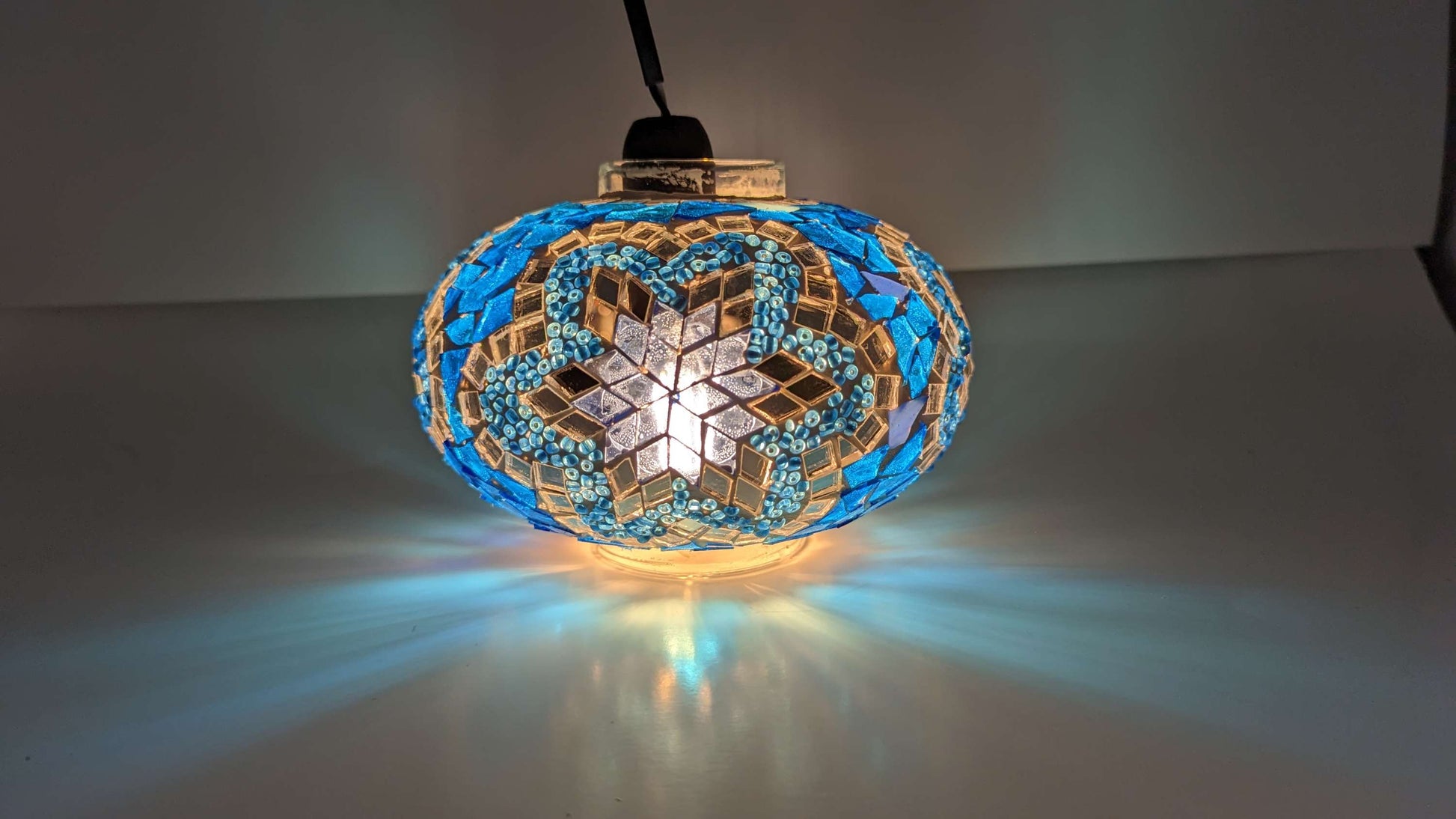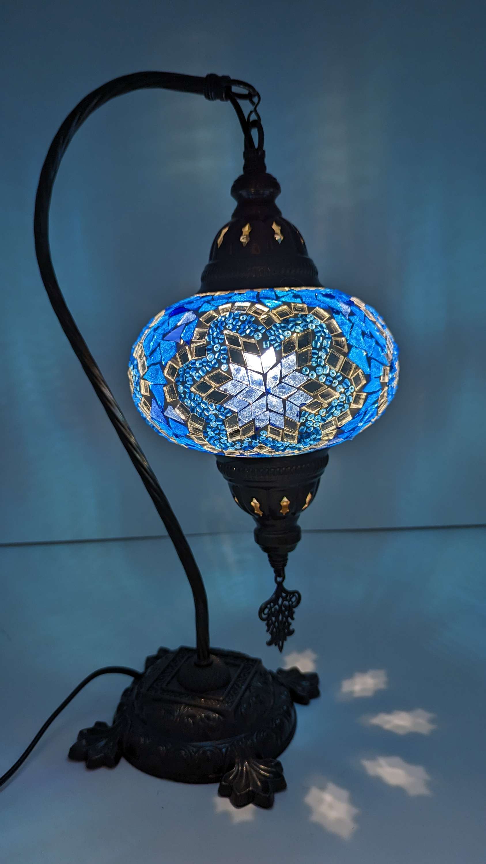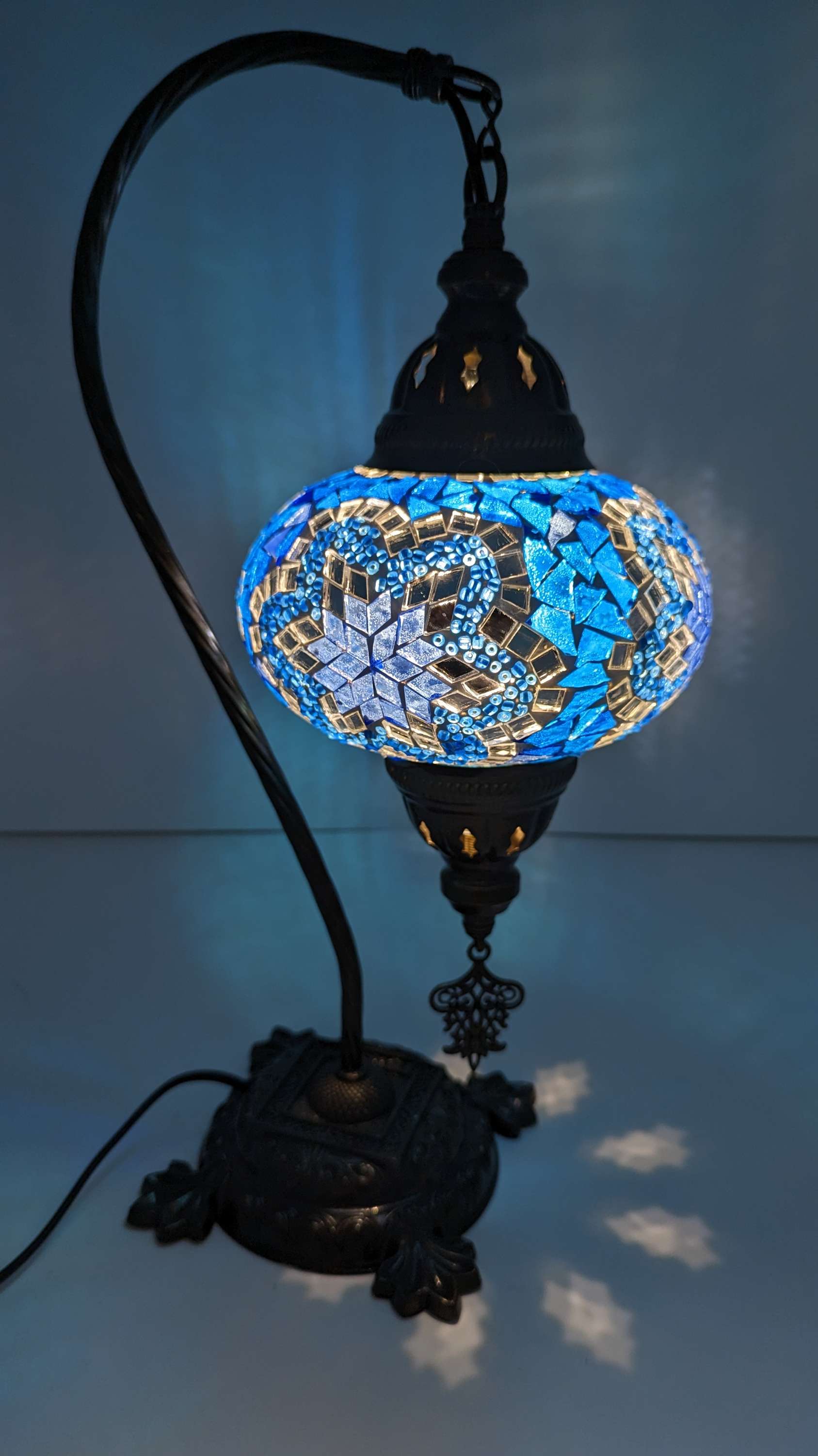 Our Turkish Mosaic Glass Table Lamps feature exquisite Bohemian glass globes decorated with meticulously hand-cut glass pieces and beads, creating detailed mosaic designs that reflect traditional craftsmanship. Each lamp is carefully handmade, ensuring every piece is unique, with no two lamps being exactly alike—even when sharing similar patterns and colors. The metal frames are individually crafted and shaped with precision, especially on larger models, enhancing durability and aesthetic appeal. Our lamps are made in Turkey only after an order is placed, guaranteeing quality and authenticity. The glass globes used are significantly heavier and more robust than standard market offerings, designed to provide lasting beauty instead of delicate fragility. In the unlikely event your lamp is damaged during shipping, please notify us immediately so we can arrange a replacement. Despite recent increases in material costs by 15% to 25%, we remain committed to offering these artisan creations at accessible prices without compromising on quality.