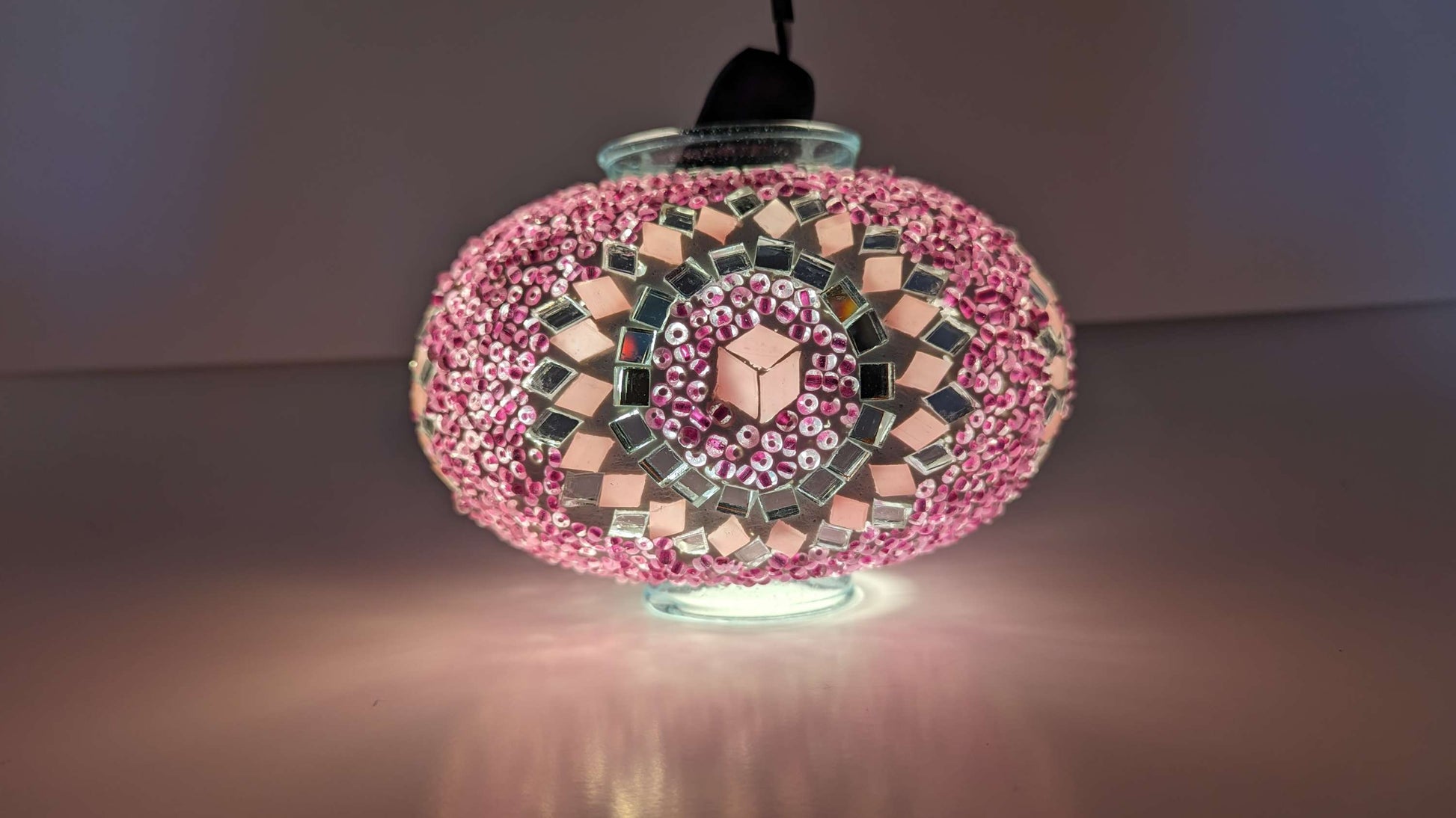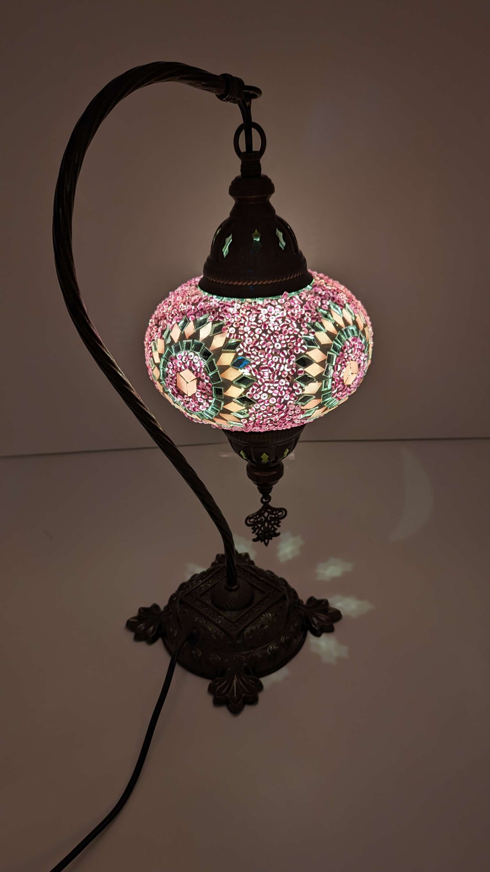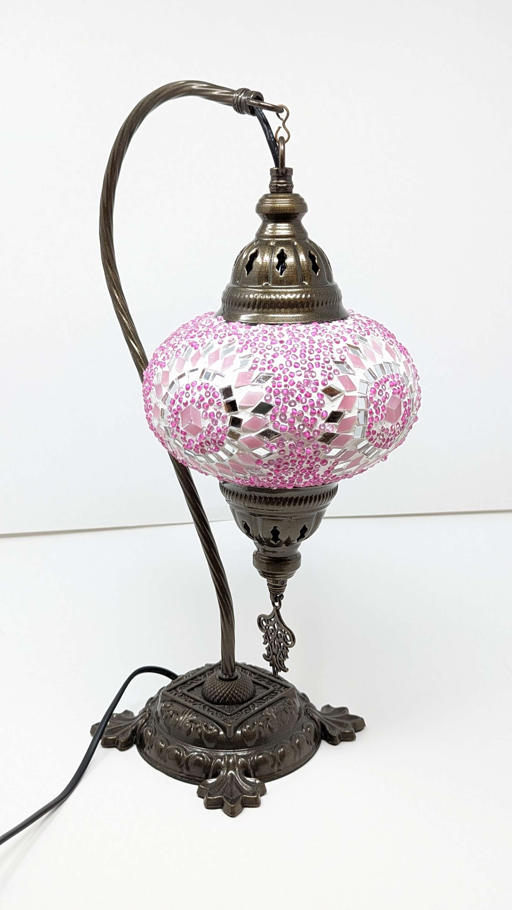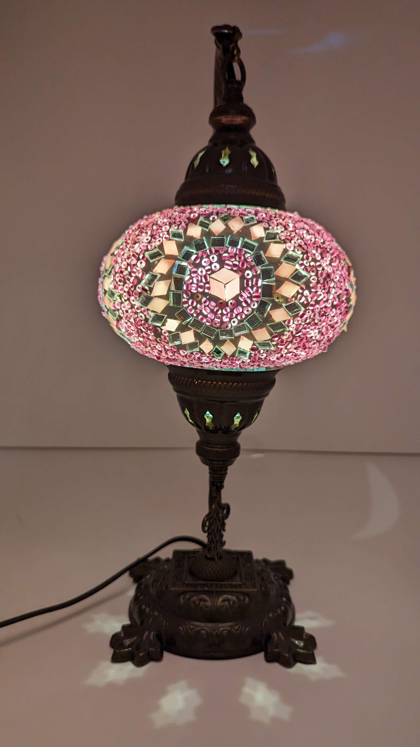 Our Turkish Mosaic Glass Table Lamps feature exquisite Bohemian glass globes decorated with meticulously hand-cut glass pieces and beads, creating detailed mosaic designs that reflect traditional craftsmanship. Each lamp is carefully handmade, ensuring every piece is unique, with no two lamps being exactly alike—even when sharing similar patterns and colors. The metal frames are individually crafted and shaped with precision, especially on larger models, enhancing durability and aesthetic appeal. Our lamps are made in Turkey only after an order is placed, guaranteeing quality and authenticity. The glass globes used are significantly heavier and more robust than standard market offerings, designed to provide lasting beauty instead of delicate fragility. In the unlikely event your lamp is damaged during shipping, please notify us immediately so we can arrange a replacement. Despite recent increases in material costs by 15% to 25%, we remain committed to offering these artisan creations at accessible prices without compromising on quality.