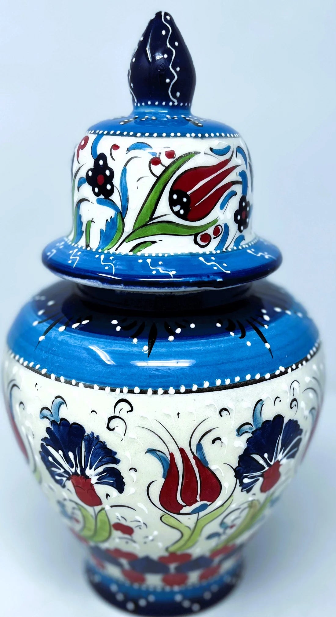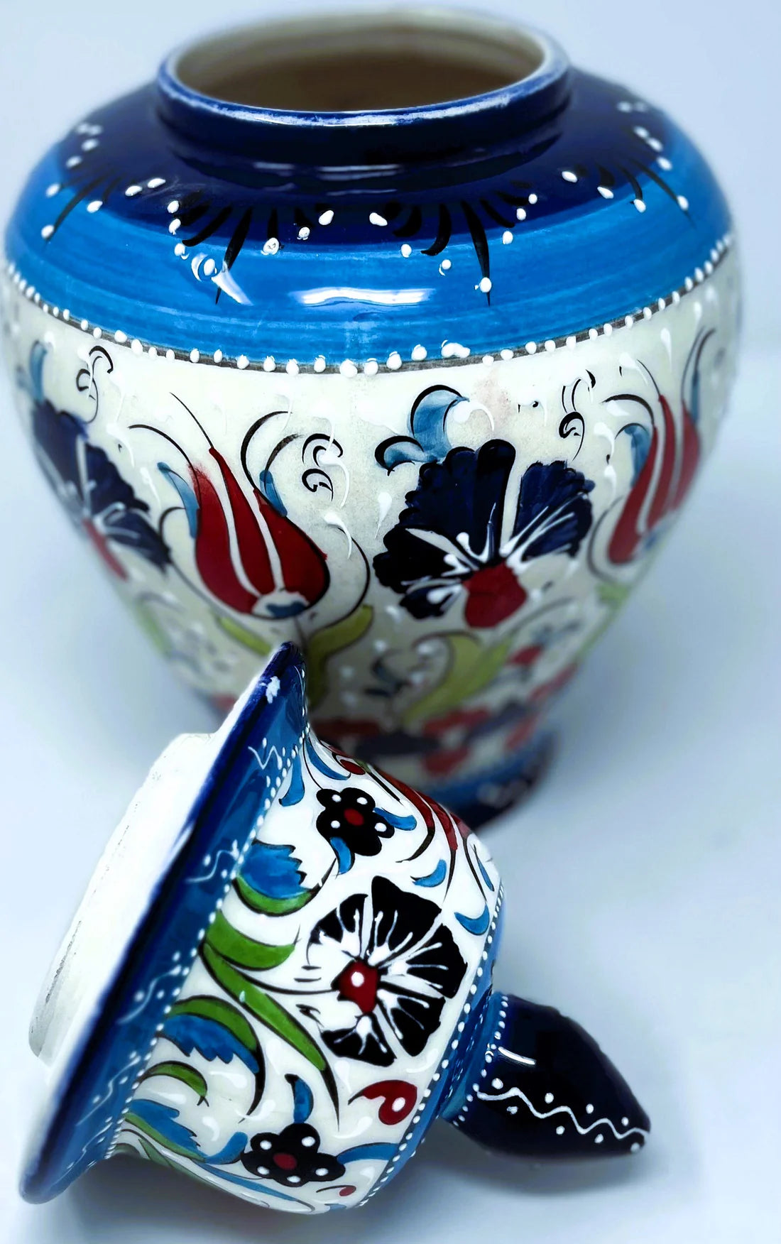 Handmade ceramic vases from Kütahya, Turkey. In medieval times, Kütahya was the most famous sanctuary for Turkish, Greek and Genovese pottery artisans. It’s a place inland, hidden away from the disturbance of time (even now). There, art took a different turn with the idea of “All come from the same source” which one can see in the arrangements of the patterns & flowers.