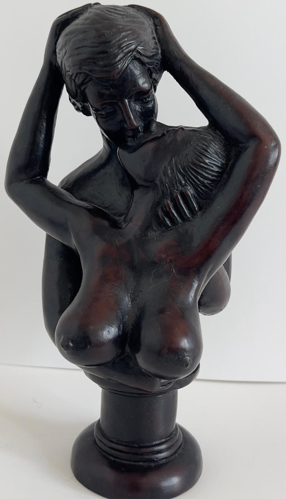 The resin sculpture titled "Lovers", also known as "Lovers Embrace" or "Loving Thoughts," captures a moment of intimate connection through finely crafted design and smooth contours. This piece artistically conveys deep affection and unity, making it a meaningful addition to any collection. Its durable resin material ensures lasting beauty while the elegant form invites reflection on the emotions shared between loved ones. Ideal for those who appreciate symbolic art, this sculpture enhances spaces with a sophisticated representation of love and togetherness.