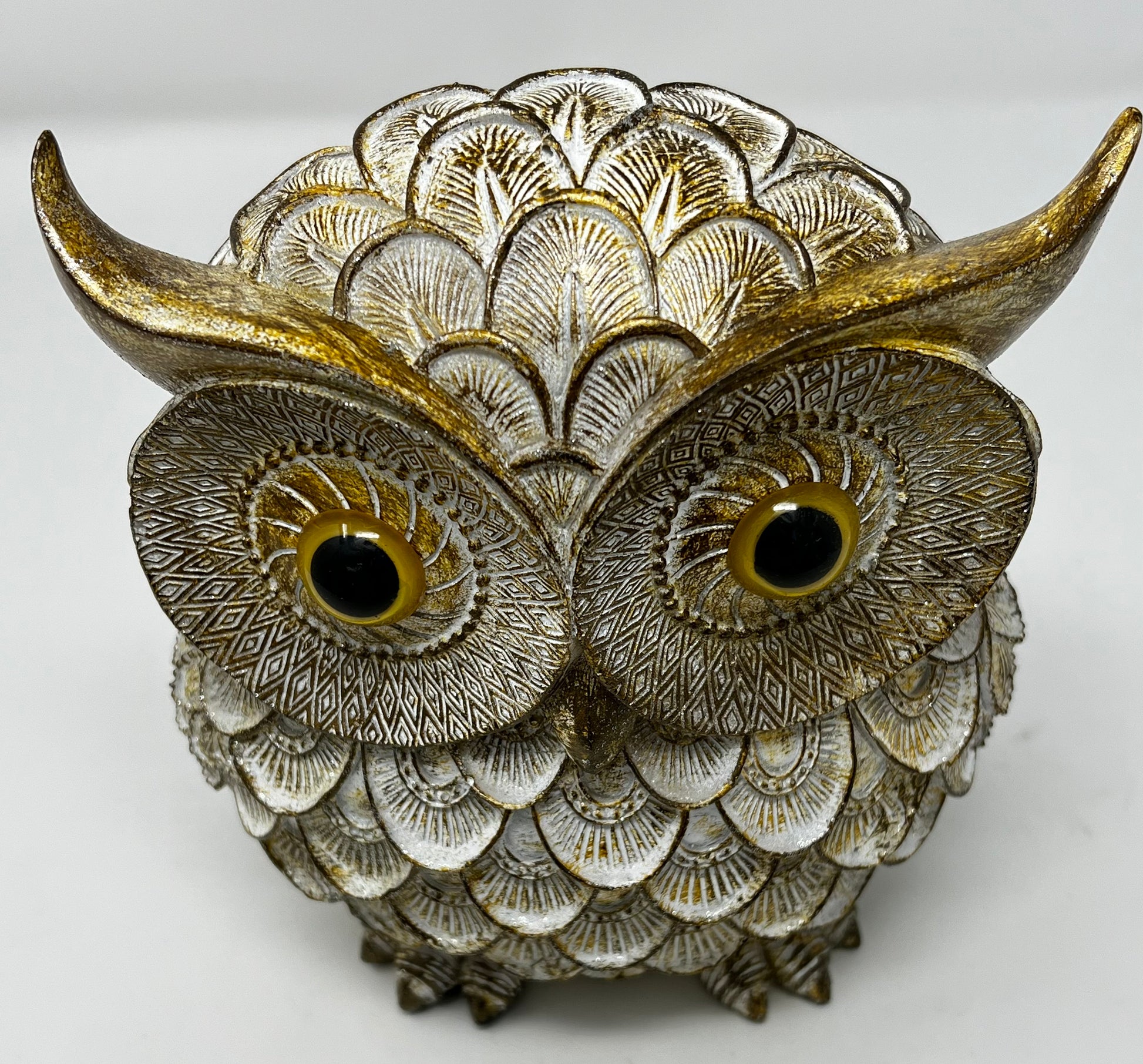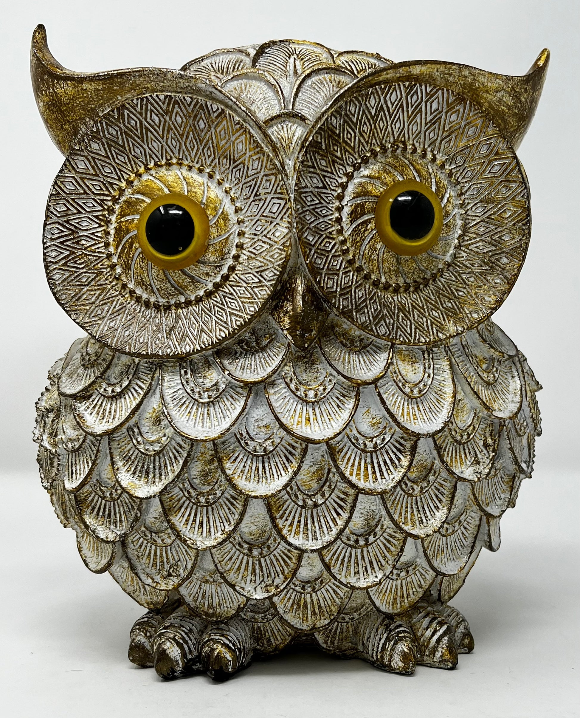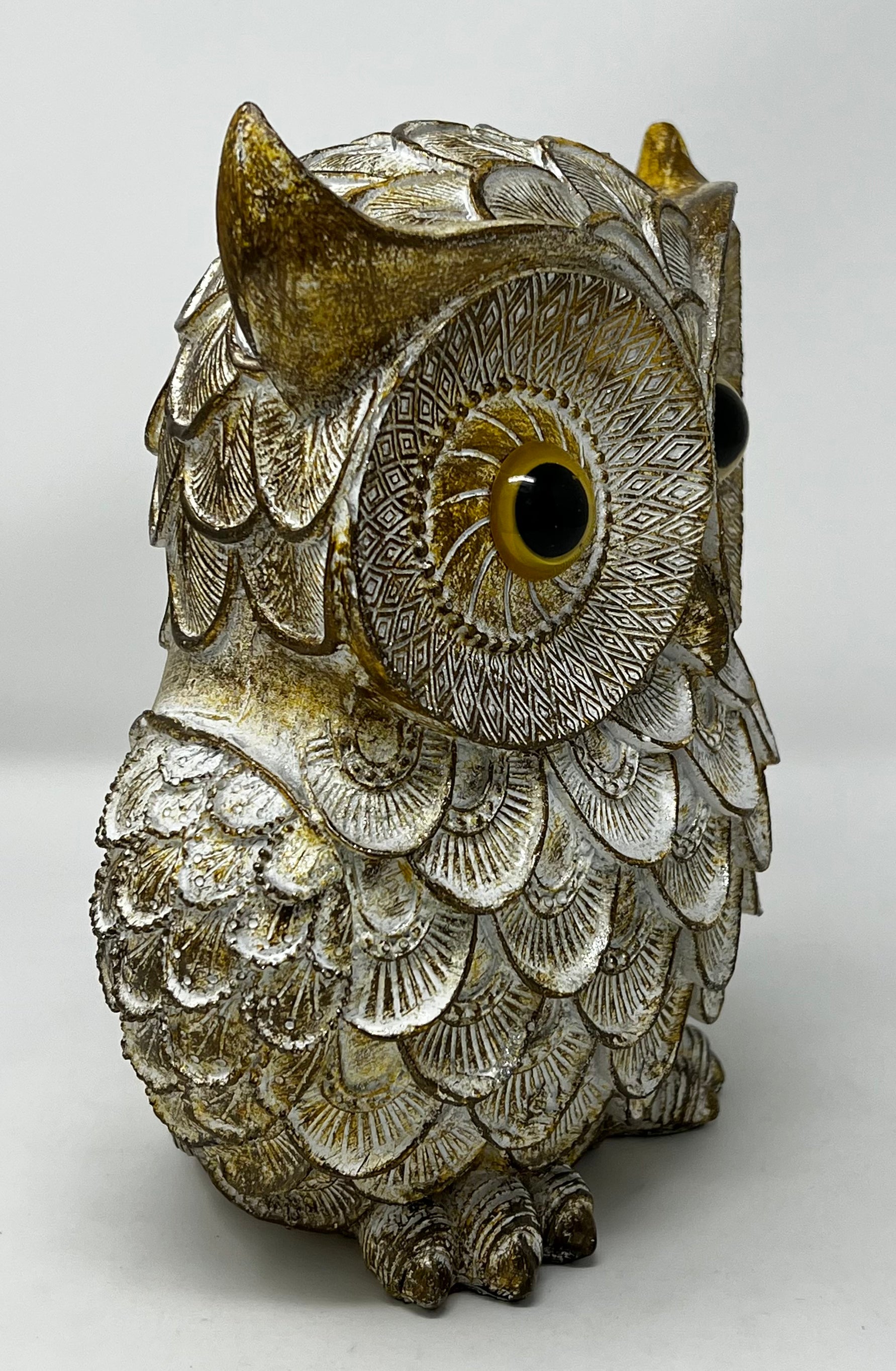 The OWL WITH GOLDISH COLOR is a finely crafted decorative piece symbolizing curiosity and wisdom. Expertly made from durable poly materials, it combines vibrant gold and turquoise hues that enhance its aesthetic appeal. This carefully designed owl serves not only as an elegant accent for your home or office but also as a meaningful emblem of insight and inquisitiveness. Its resilient construction ensures longevity, making it a valuable addition to any collection of thoughtful decor.