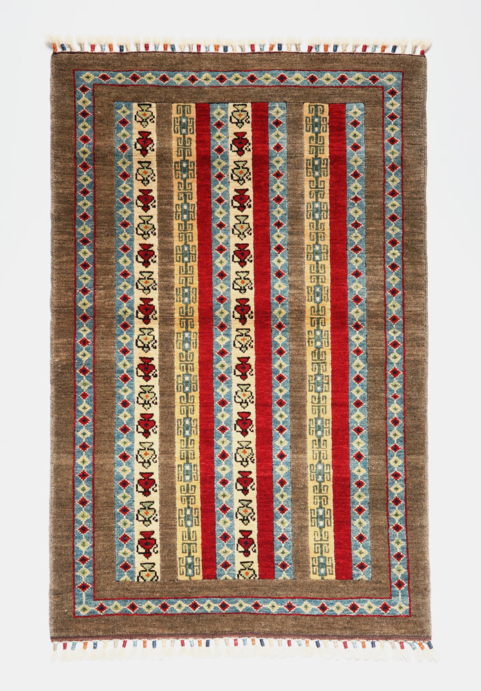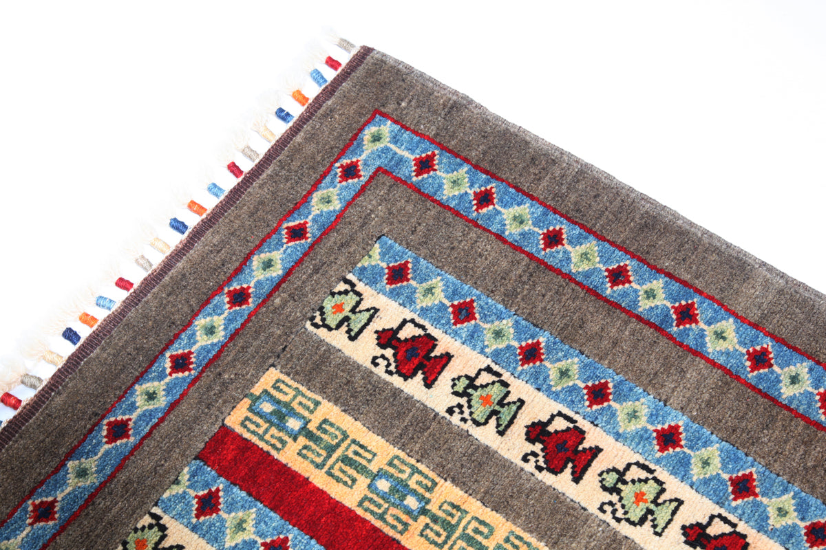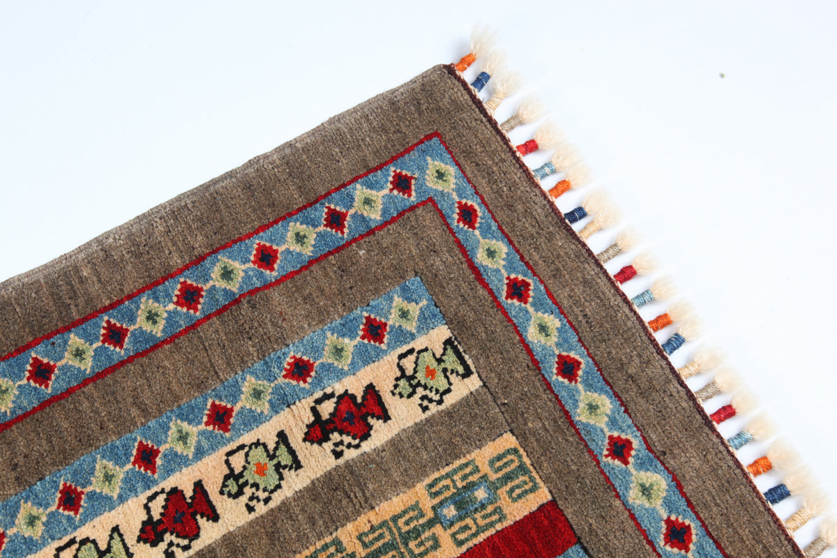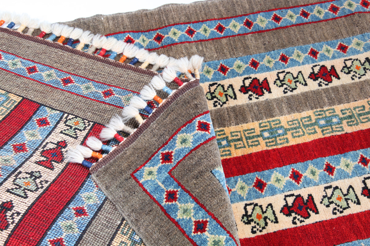All our carpets and kilims are one-of-a-kind, hand-knotted or hand-woven with 100% hand spun wool pile. Color variation is called "Abrash" which is due to none-bleached wool's absorption of the dyes used or the carpet or kilim maybe woven with 2 different batches of dyed wool, which was available at the time.