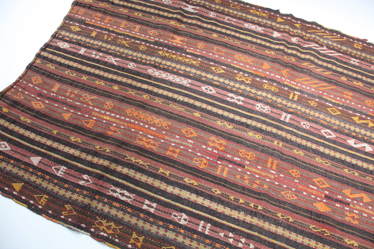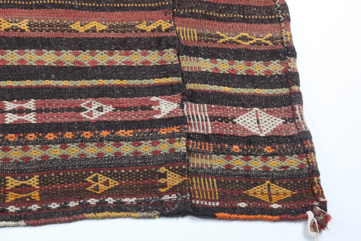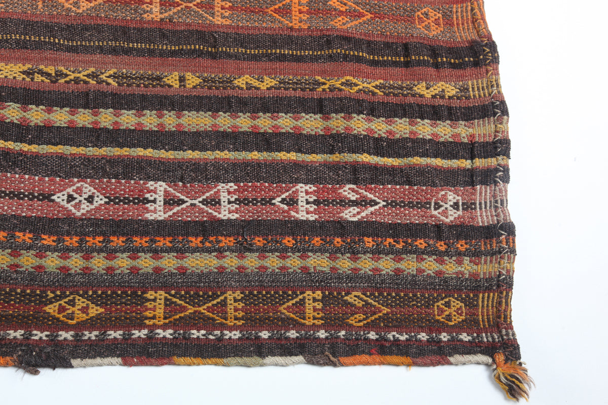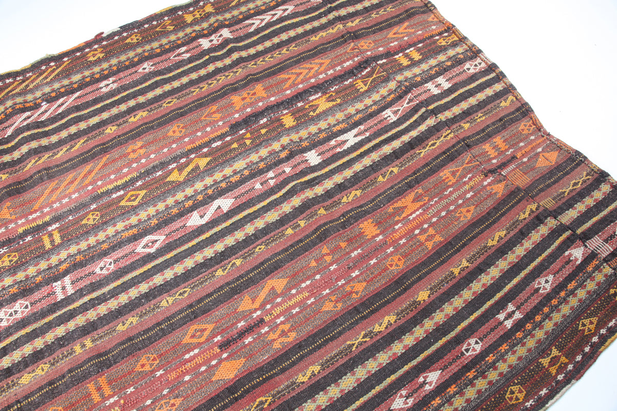 The Urfa jijim kilim is crafted from rugged, all-natural mountain sheep wool, designed for versatile purposes including use as a durable cover.