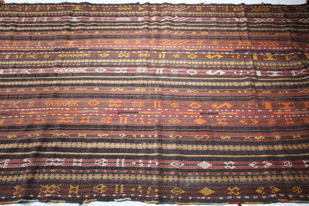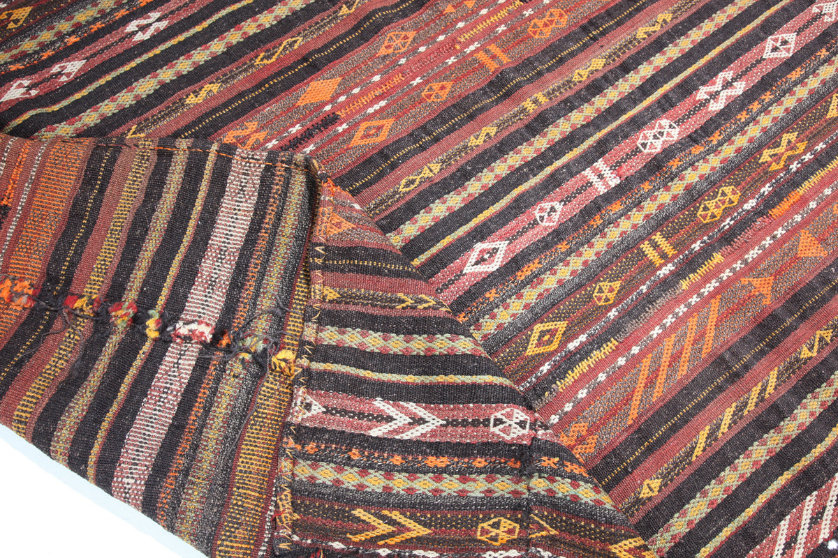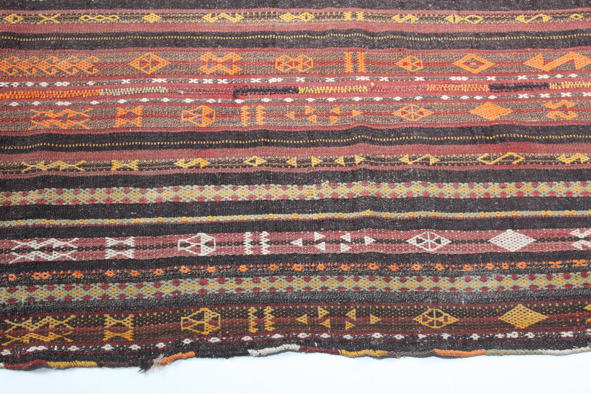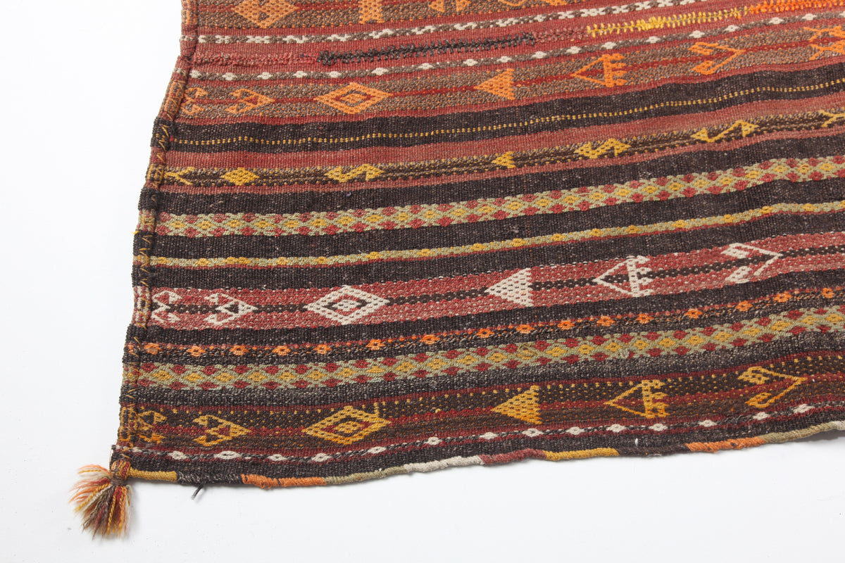 The Urfa jijim kilim is crafted from rugged, all-natural mountain sheep wool, designed for versatile purposes including use as a durable cover.