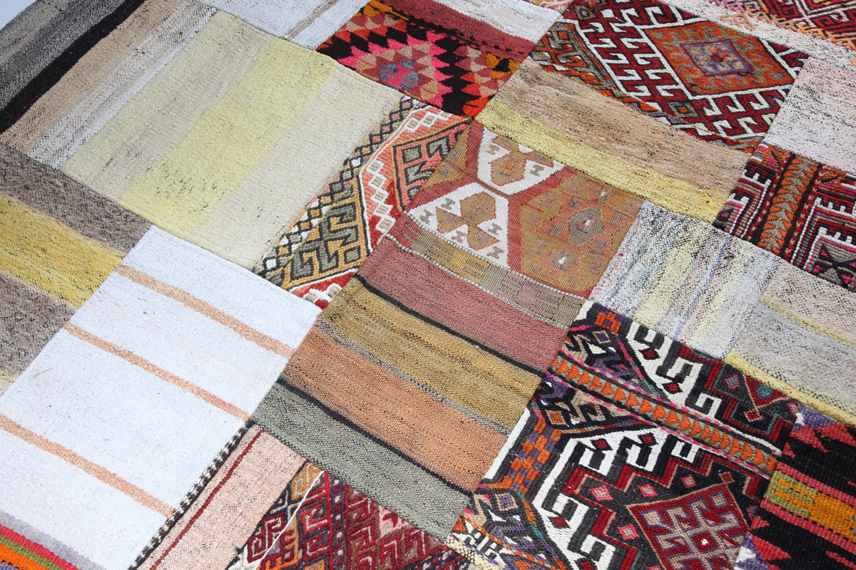 These patchwork carpets are meticulously crafted from carefully selected fragments of vintage hand-woven Turkish carpets and kilims, each piece telling its own story. Their unique composition makes every carpet a one-of-a-kind creation, blending traditional craftsmanship with contemporary design. Ideal for enhancing modern interiors, these patchworks introduce vibrant color and texture, while their roots in heritage weaving techniques ensure authenticity and quality. In certain settings, they also harmonize beautifully with antique furniture, offering a versatile and timeless addition to any living space. Durable and artfully made, these carpets are perfect for collectors and decorators seeking originality and cultural depth.
