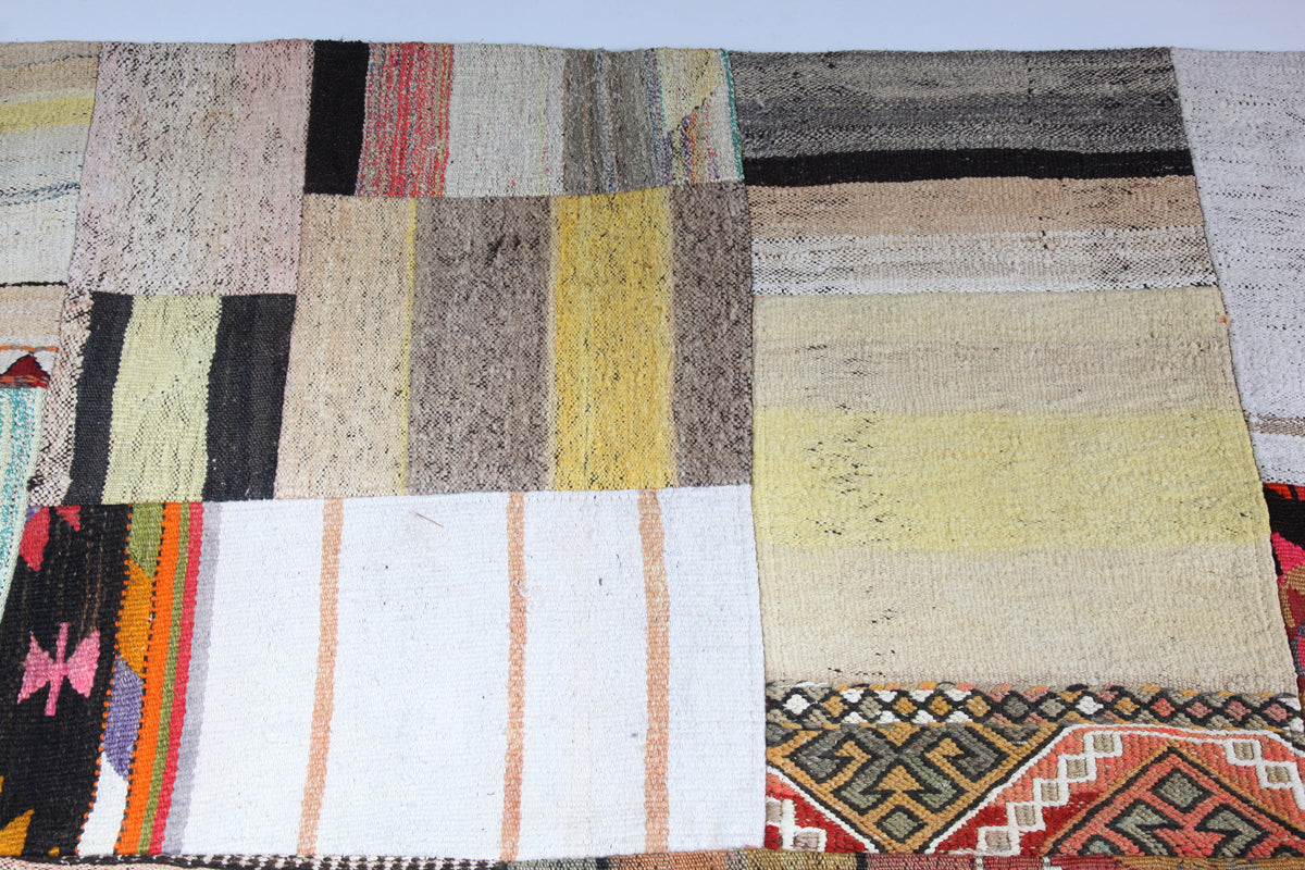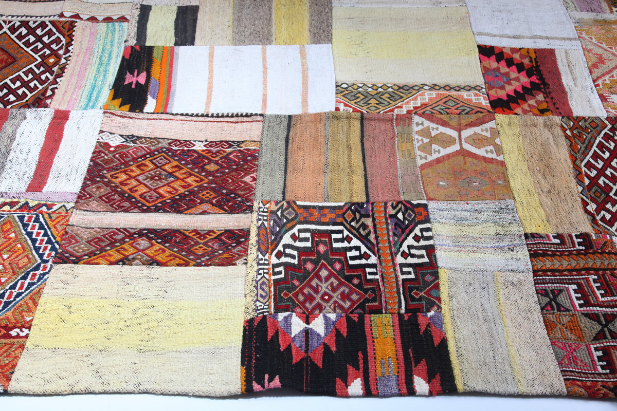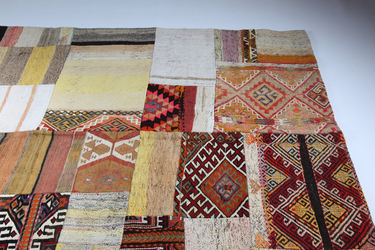 These patchwork carpets are meticulously crafted from carefully selected fragments of vintage hand-woven Turkish carpets and kilims, each piece telling its own story. Their unique composition makes every carpet a one-of-a-kind creation, blending traditional craftsmanship with contemporary design. Ideal for enhancing modern interiors, these patchworks introduce vibrant color and texture, while their roots in heritage weaving techniques ensure authenticity and quality. In certain settings, they also harmonize beautifully with antique furniture, offering a versatile and timeless addition to any living space. Durable and artfully made, these carpets are perfect for collectors and decorators seeking originality and cultural depth.
