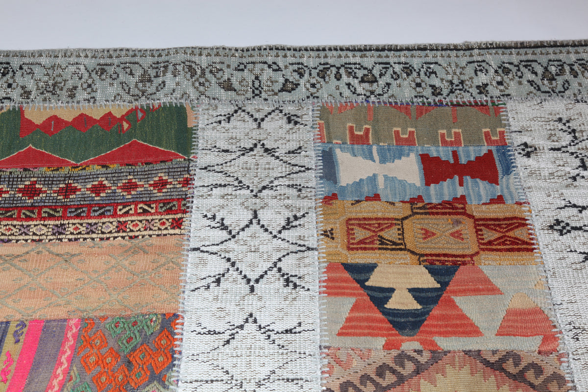 These patchwork carpets are meticulously crafted from carefully selected fragments of vintage hand-woven Turkish carpets and kilims, each piece telling its own story. Their unique composition makes every carpet a one-of-a-kind creation, blending traditional craftsmanship with contemporary design. Ideal for enhancing modern interiors, these patchworks introduce vibrant color and texture, while their roots in heritage weaving techniques ensure authenticity and quality. In certain settings, they also harmonize beautifully with antique furniture, offering a versatile and timeless addition to any living space. Durable and artfully made, these carpets are perfect for collectors and decorators seeking originality and cultural depth.