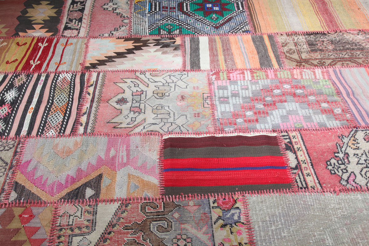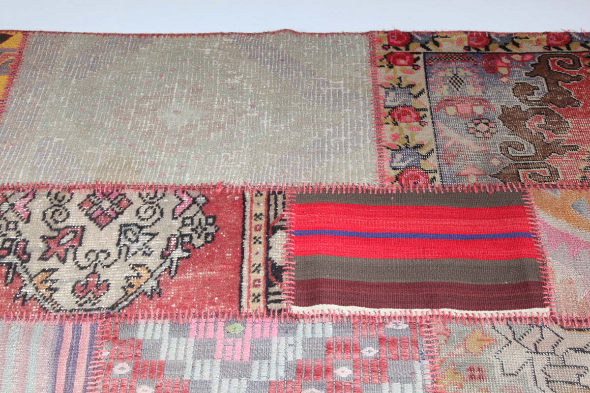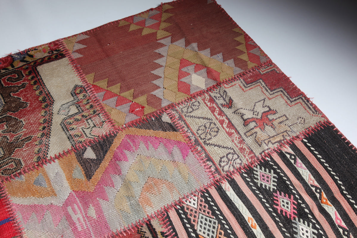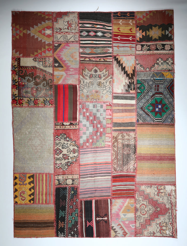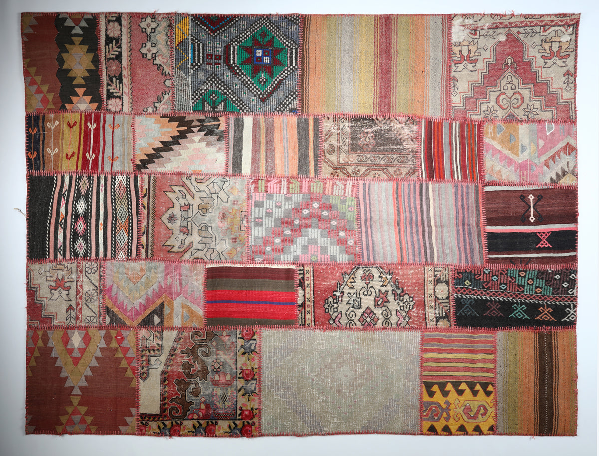 These patchwork carpets are meticulously crafted from carefully selected fragments of vintage hand-woven Turkish carpets and kilims, each piece telling its own story. Their unique composition makes every carpet a one-of-a-kind creation, blending traditional craftsmanship with contemporary design. Ideal for enhancing modern interiors, these patchworks introduce vibrant color and texture, while their roots in heritage weaving techniques ensure authenticity and quality. In certain settings, they also harmonize beautifully with antique furniture, offering a versatile and timeless addition to any living space. Durable and artfully made, these carpets are perfect for collectors and decorators seeking originality and cultural depth.