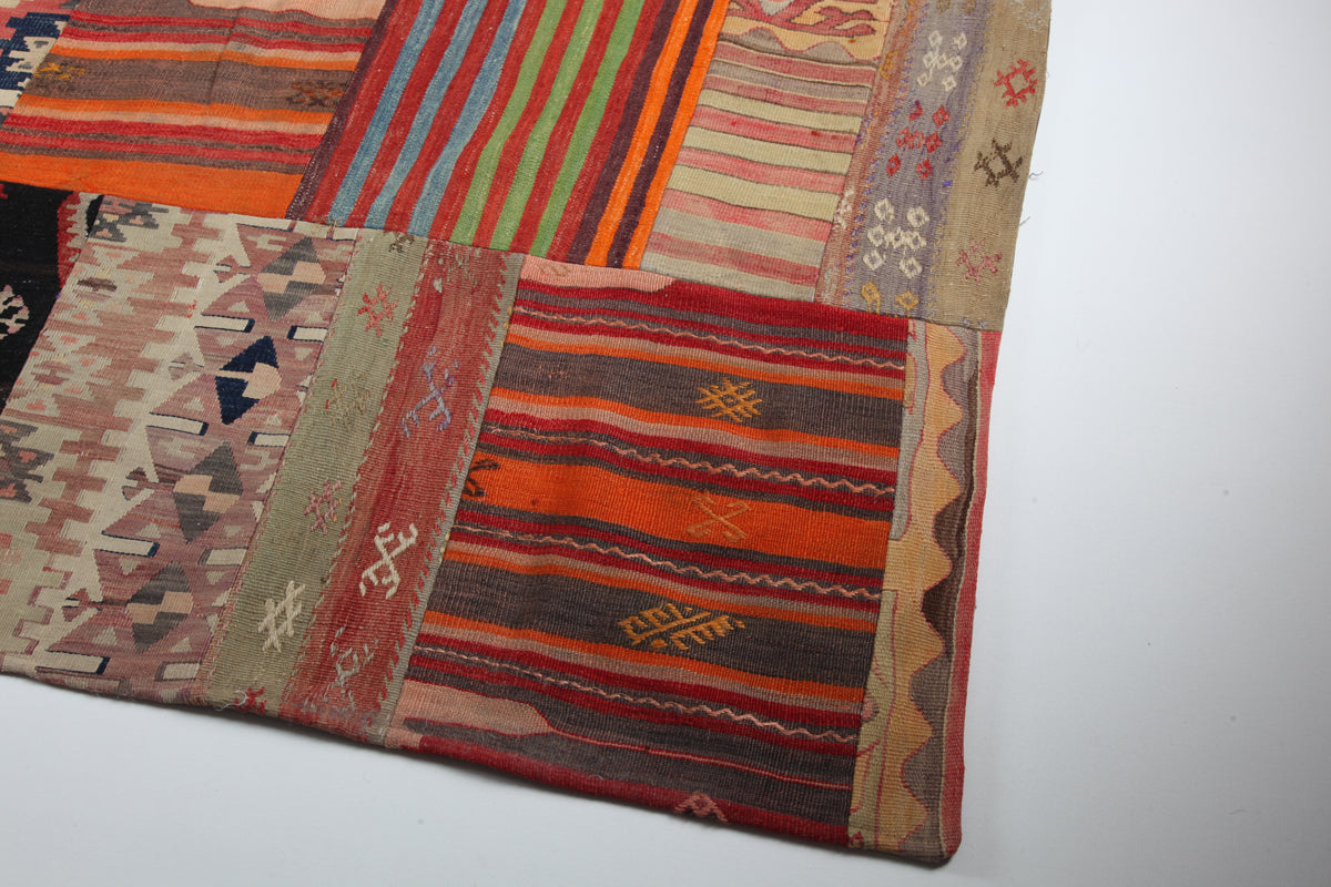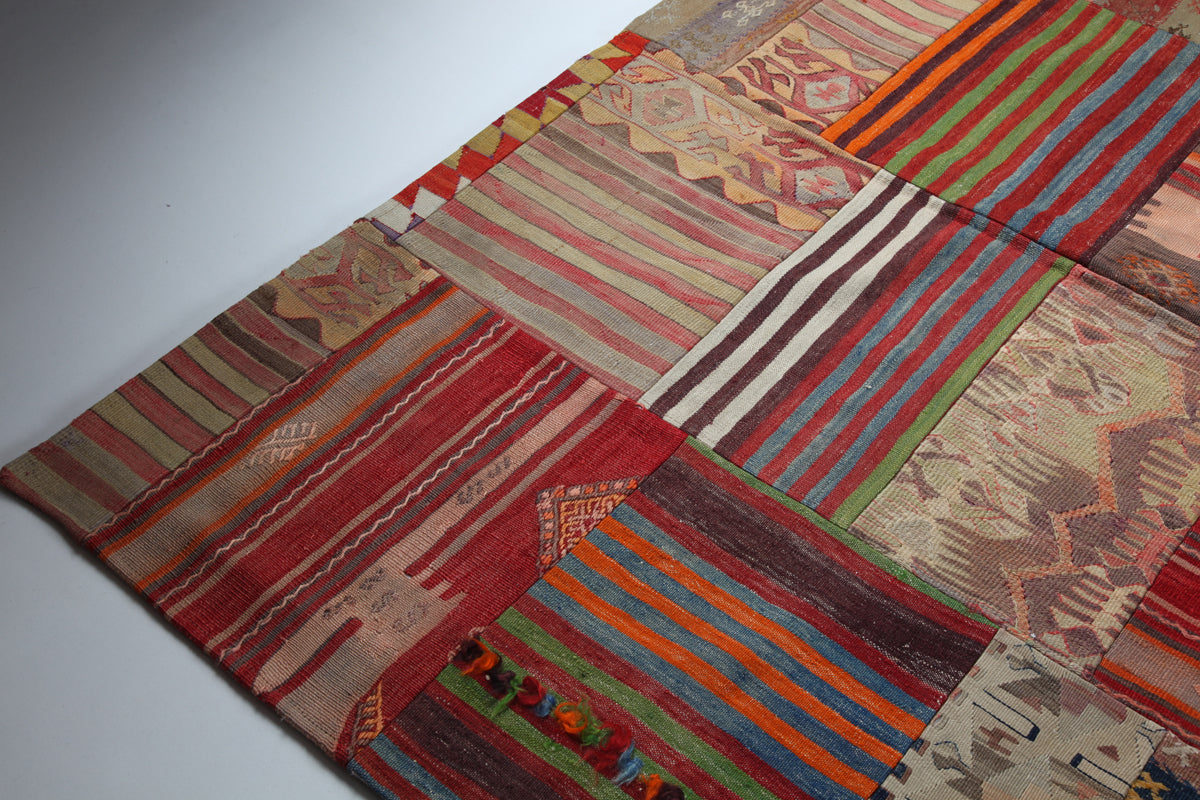 These patchwork carpets are meticulously crafted from carefully selected fragments of vintage hand-woven Turkish carpets and kilims, each piece telling its own story. Their unique composition makes every carpet a one-of-a-kind creation, blending traditional craftsmanship with contemporary design. Ideal for enhancing modern interiors, these patchworks introduce vibrant color and texture, while their roots in heritage weaving techniques ensure authenticity and quality. In certain settings, they also harmonize beautifully with antique furniture, offering a versatile and timeless addition to any living space. Durable and artfully made, these carpets are perfect for collectors and decorators seeking originality and cultural depth.