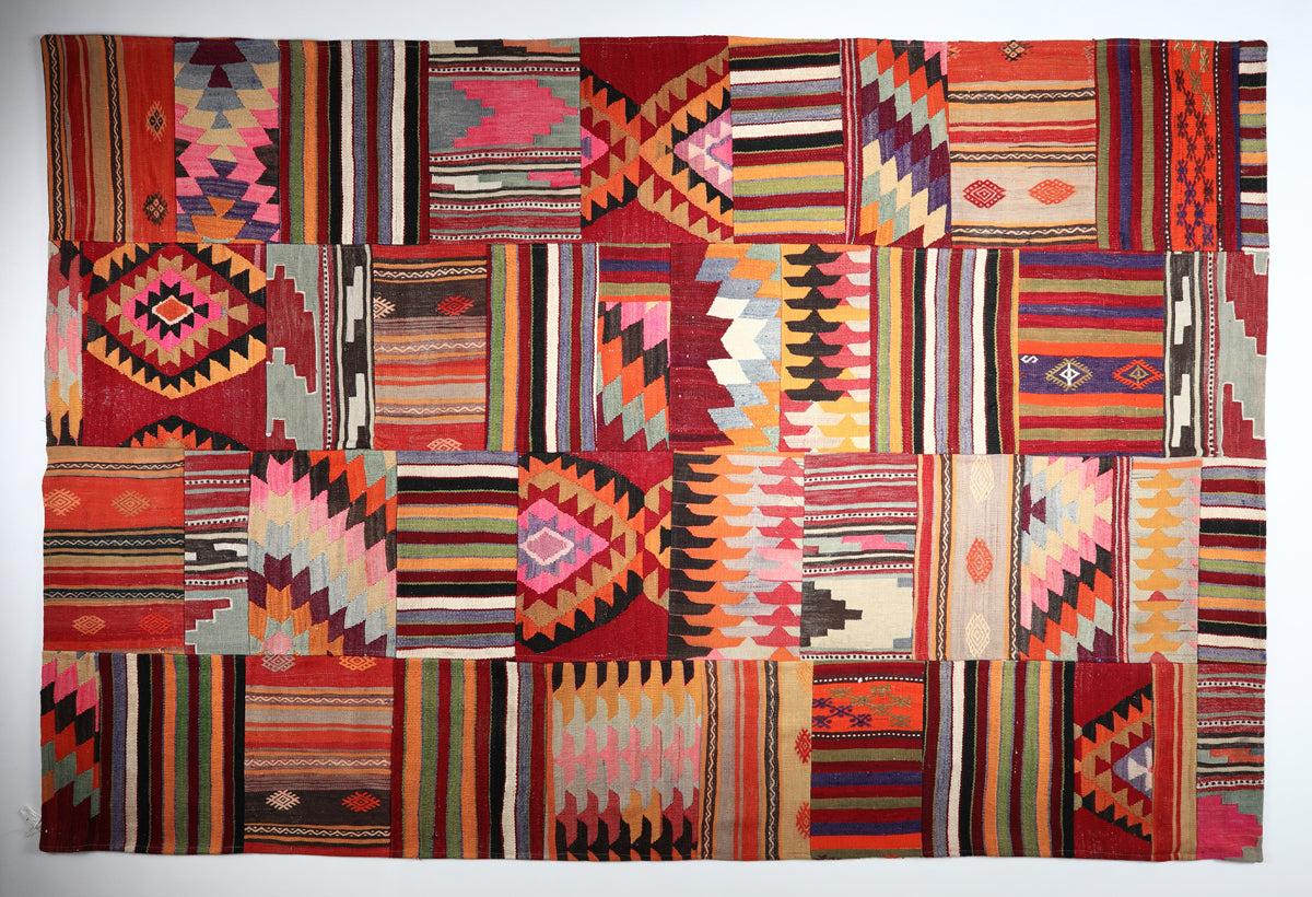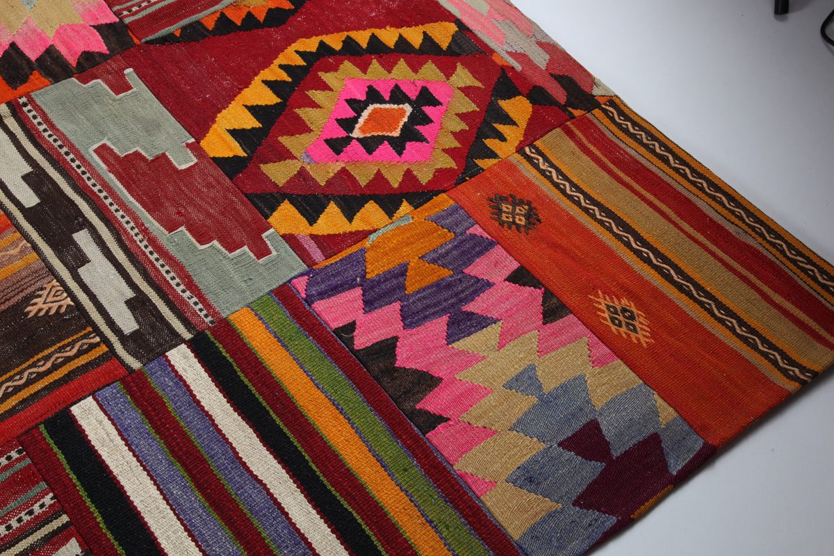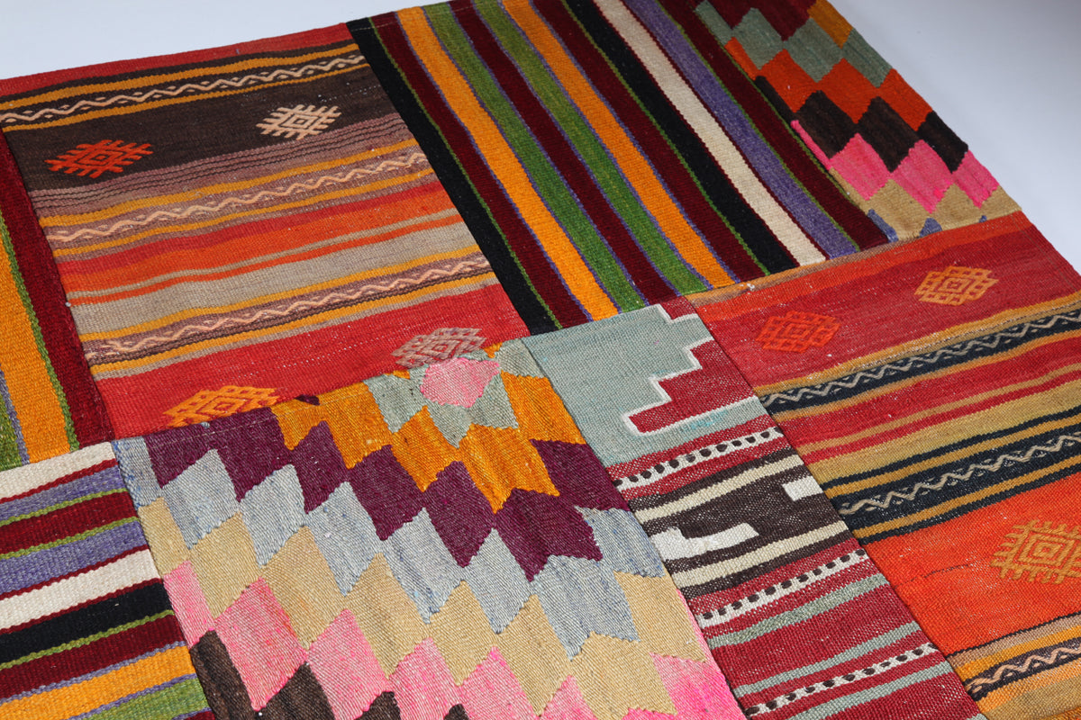 These patchwork carpets are meticulously crafted from carefully selected fragments of vintage hand-woven Turkish carpets and kilims, each piece telling its own story. Their unique composition makes every carpet a one-of-a-kind creation, blending traditional craftsmanship with contemporary design. Ideal for enhancing modern interiors, these patchworks introduce vibrant color and texture, while their roots in heritage weaving techniques ensure authenticity and quality. In certain settings, they also harmonize beautifully with antique furniture, offering a versatile and timeless addition to any living space. Durable and artfully made, these carpets are perfect for collectors and decorators seeking originality and cultural depth.