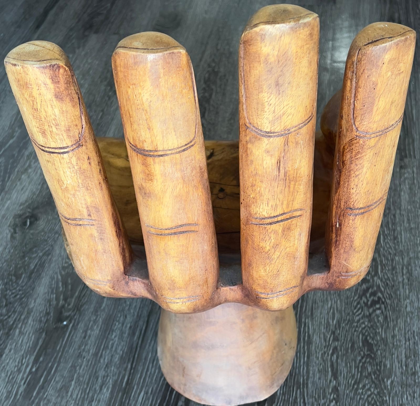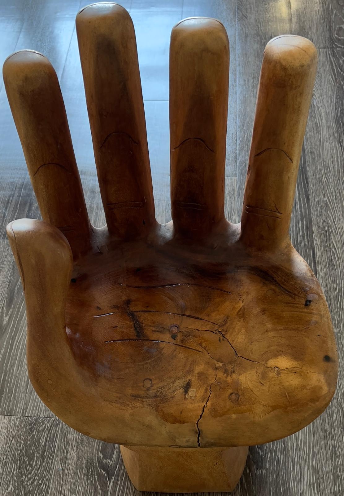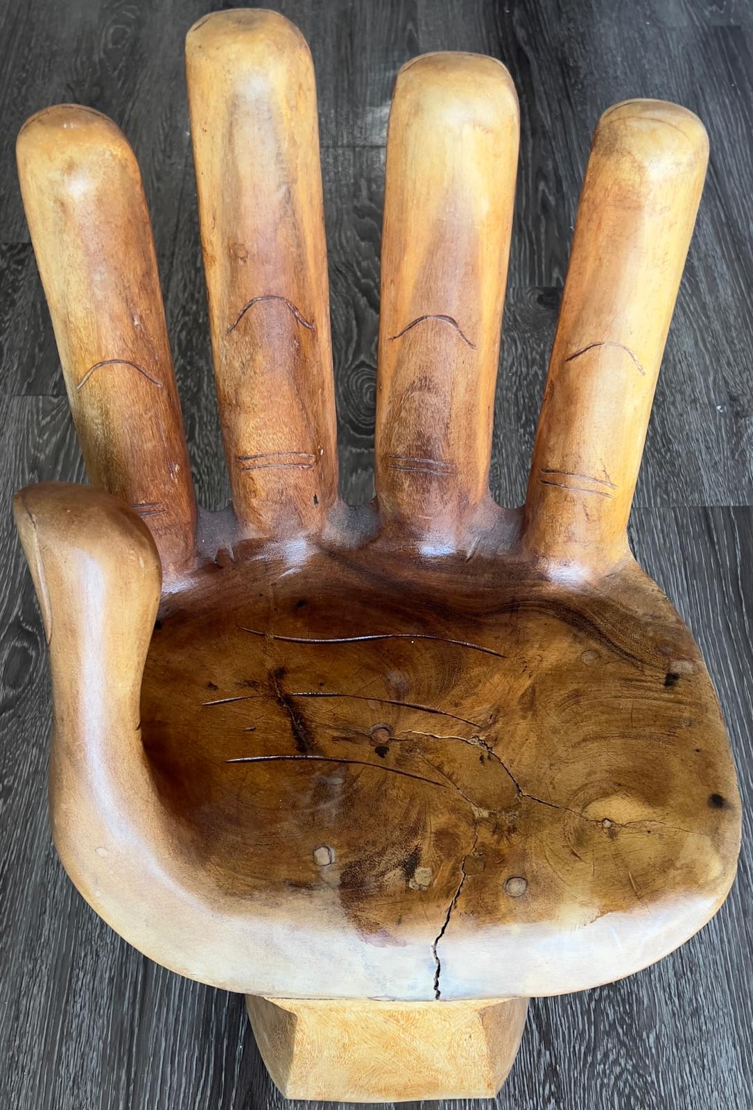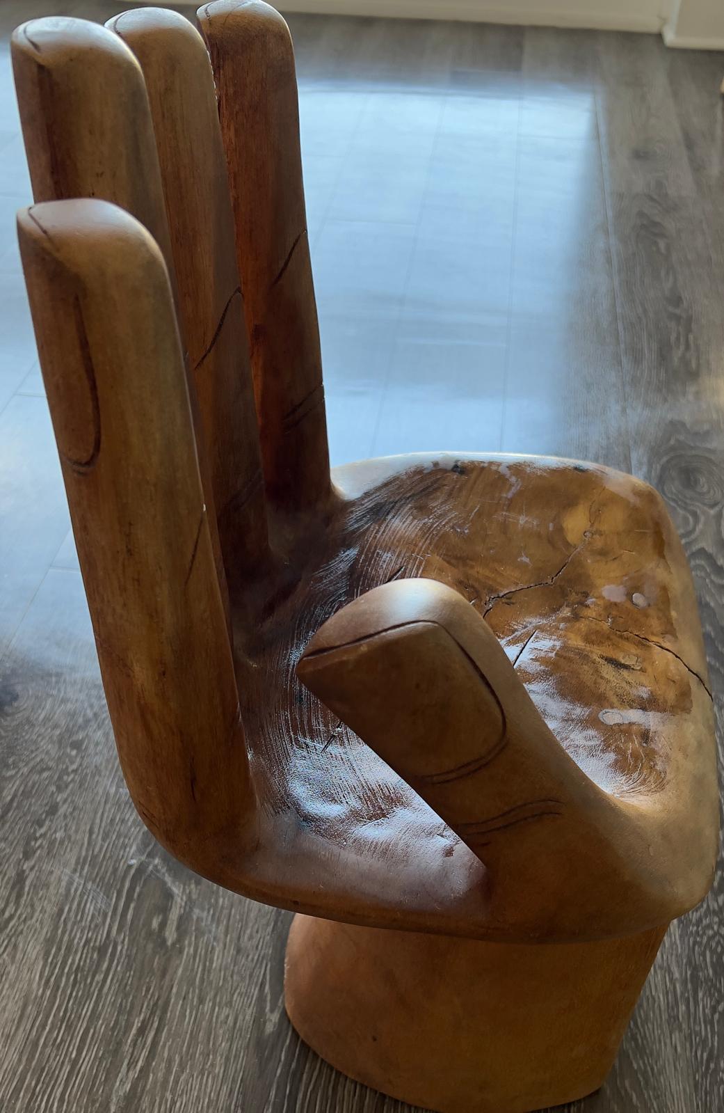 The concept of hand-shaped chairs has historical roots across various cultures, but the modern interpretation is credited to Mexican surrealist artist Pedro Friedeberg, born in 1936. His family's migration from Italy to Mexico during World War II influenced his distinctive artistic vision. This particular small hand-shaped chair, crafted and assembled in the mid-20th century, traveled from Southeast Asia to Turkey, where two expertly joined pieces form its unique structure. Traditionally used for meditation, it is also referred to as the "Buddha's hand" in its region of origin, symbolizing spiritual serenity. Combining artistic innovation with cultural resonance, this chair’s timeless design makes it a singular piece that stands out as both a functional object and a collector’s treasure.