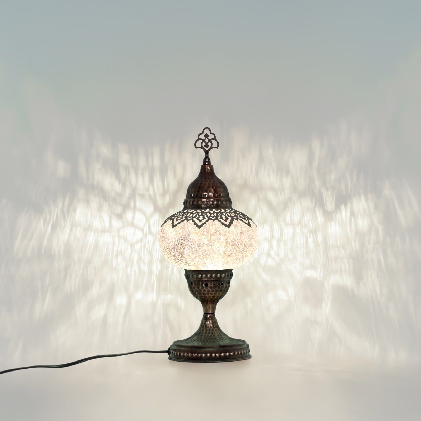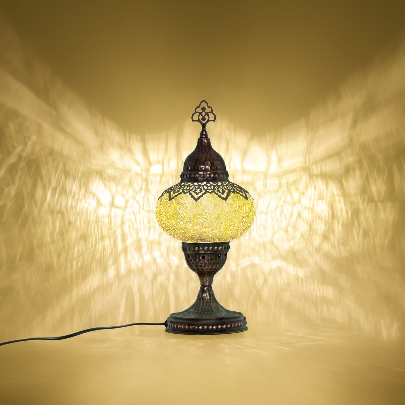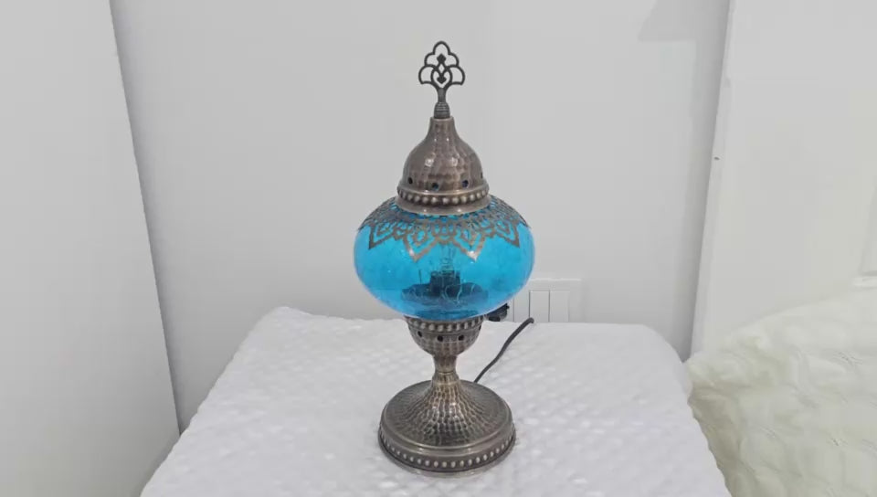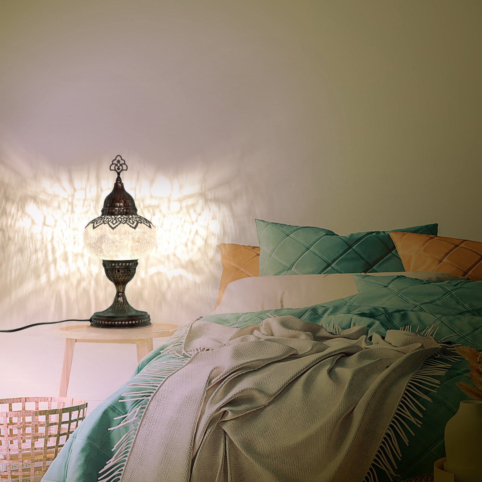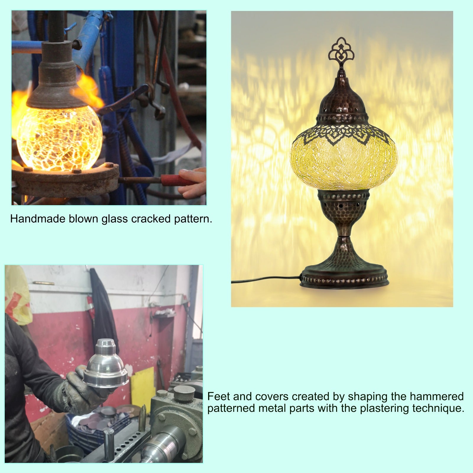 Our Turkish Mosaic Glass Table Lamps feature exquisite Bohemian glass globes decorated with meticulously hand-cut glass pieces and beads, creating detailed mosaic designs that reflect traditional craftsmanship. Each lamp is carefully handmade, ensuring every piece is unique, with no two lamps being exactly alike—even when sharing similar patterns and colors. The metal frames are individually crafted and shaped with precision, especially on larger models, enhancing durability and aesthetic appeal. Our lamps are made in Turkey only after an order is placed, guaranteeing quality and authenticity. The glass globes used are significantly heavier and more robust than standard market offerings, designed to provide lasting beauty instead of delicate fragility. In the unlikely event your lamp is damaged during shipping, please notify us immediately so we can arrange a replacement. Despite recent increases in material costs by 15% to 25%, we remain committed to offering these artisan creations at accessible prices without compromising on quality.