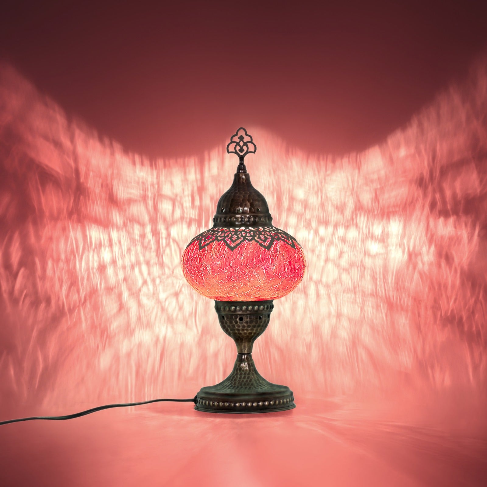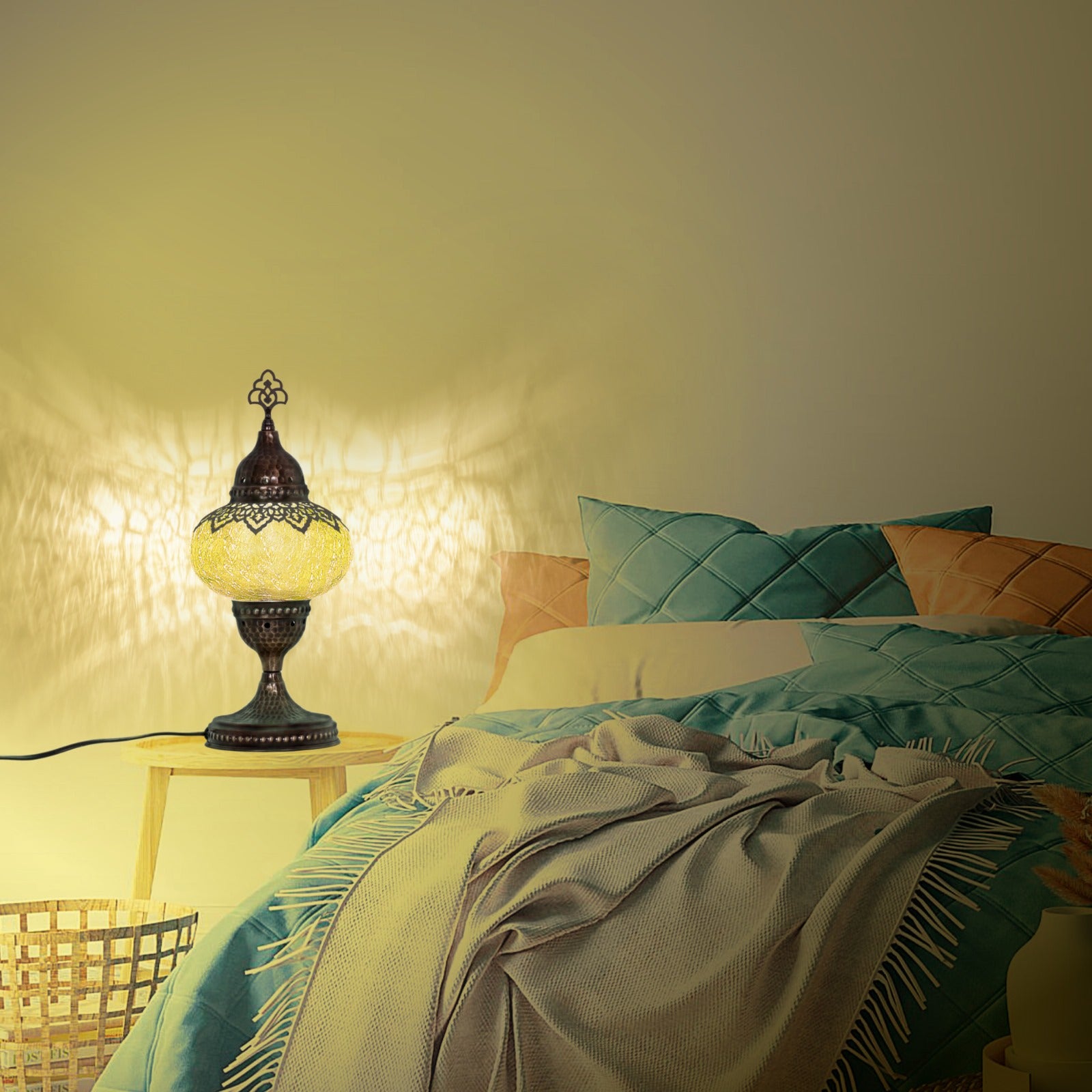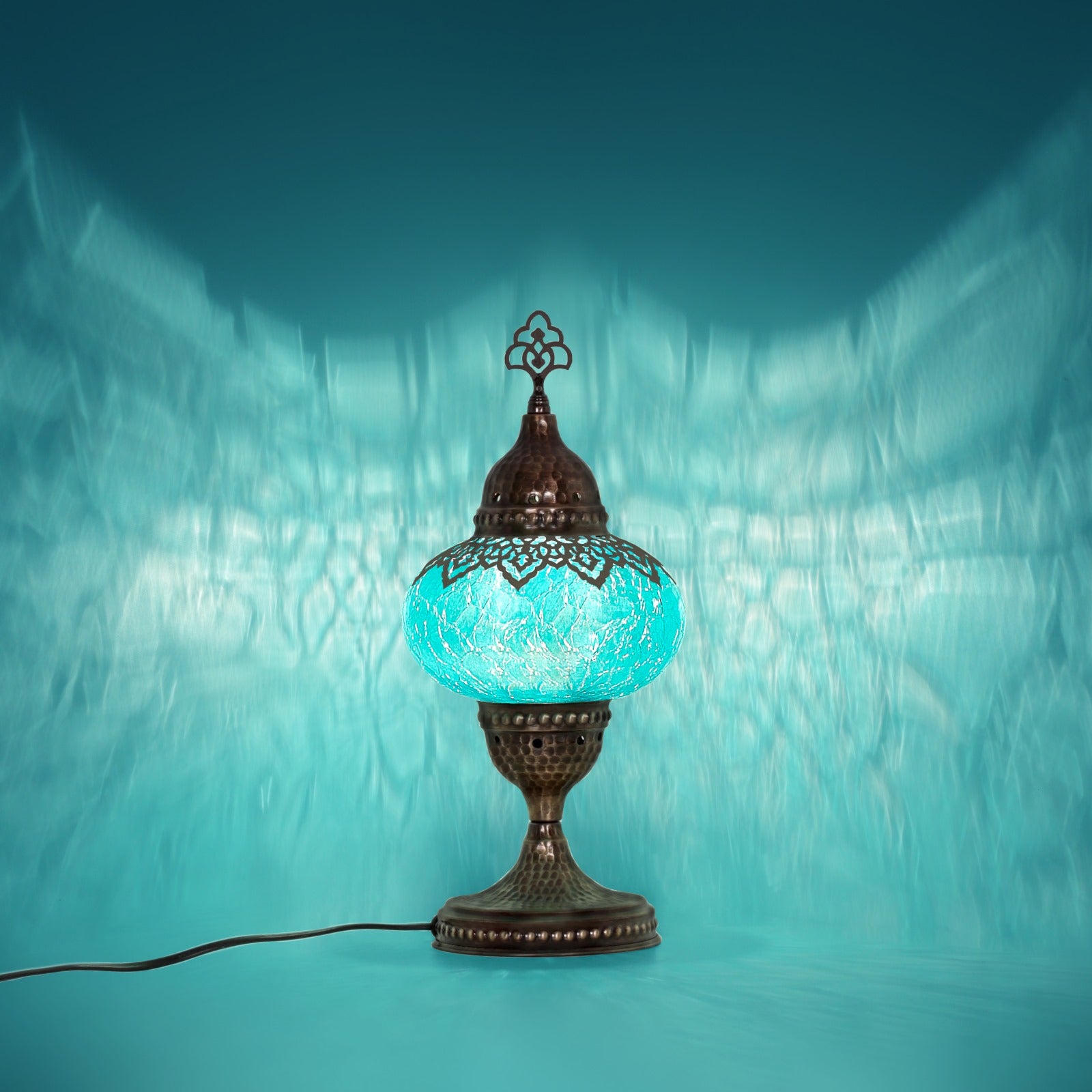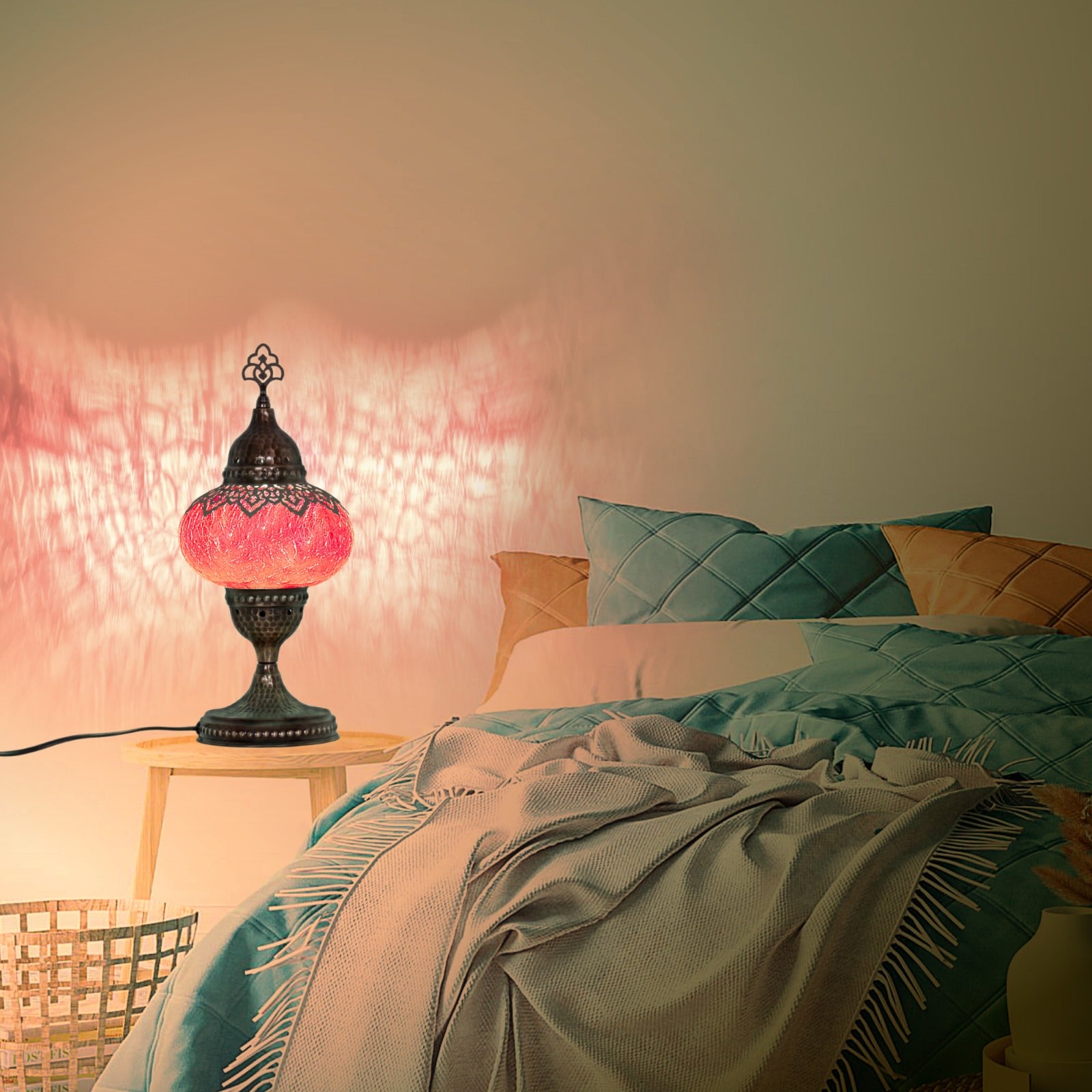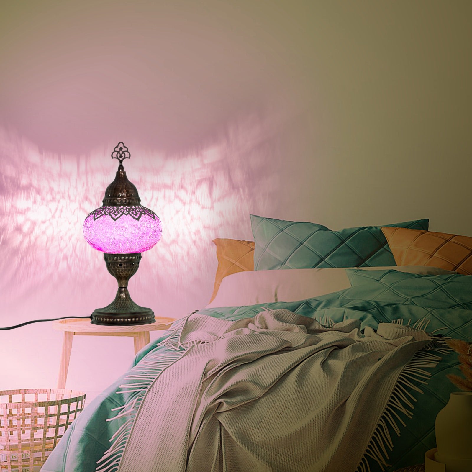Our Turkish Mosaic Glass Table Lamps feature exquisite Bohemian glass globes decorated with meticulously hand-cut glass pieces and beads, creating detailed mosaic designs that reflect traditional craftsmanship. Each lamp is carefully handmade, ensuring every piece is unique, with no two lamps being exactly alike—even when sharing similar patterns and colors. The metal frames are individually crafted and shaped with precision, especially on larger models, enhancing durability and aesthetic appeal. Our lamps are made in Turkey only after an order is placed, guaranteeing quality and authenticity. The glass globes used are significantly heavier and more robust than standard market offerings, designed to provide lasting beauty instead of delicate fragility. In the unlikely event your lamp is damaged during shipping, please notify us immediately so we can arrange a replacement. Despite recent increases in material costs by 15% to 25%, we remain committed to offering these artisan creations at accessible prices without compromising on quality.