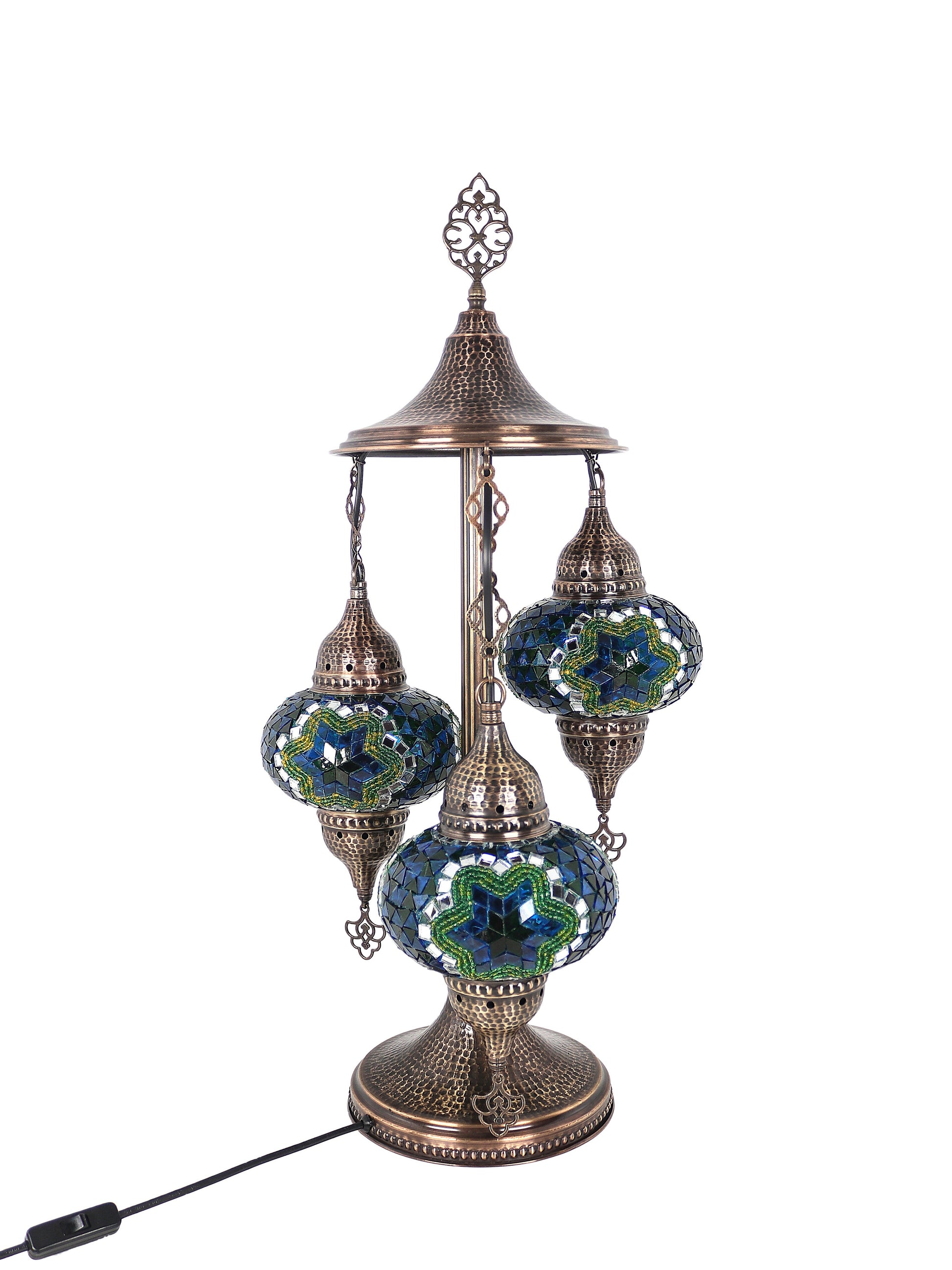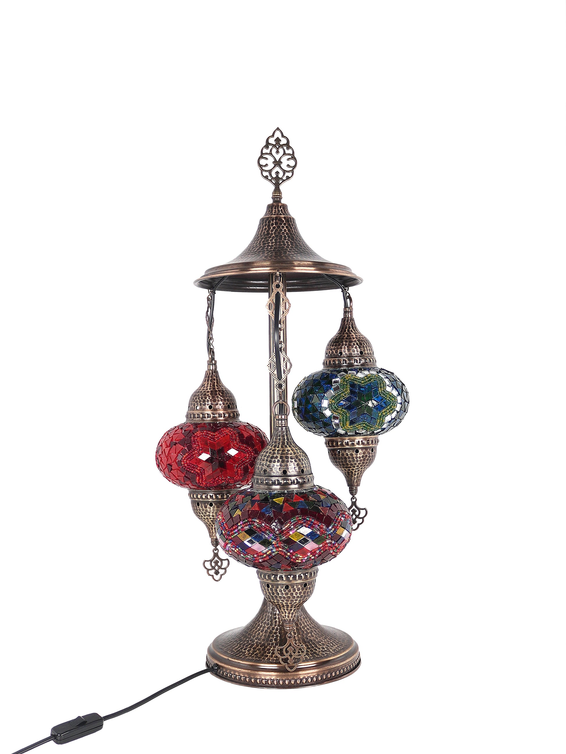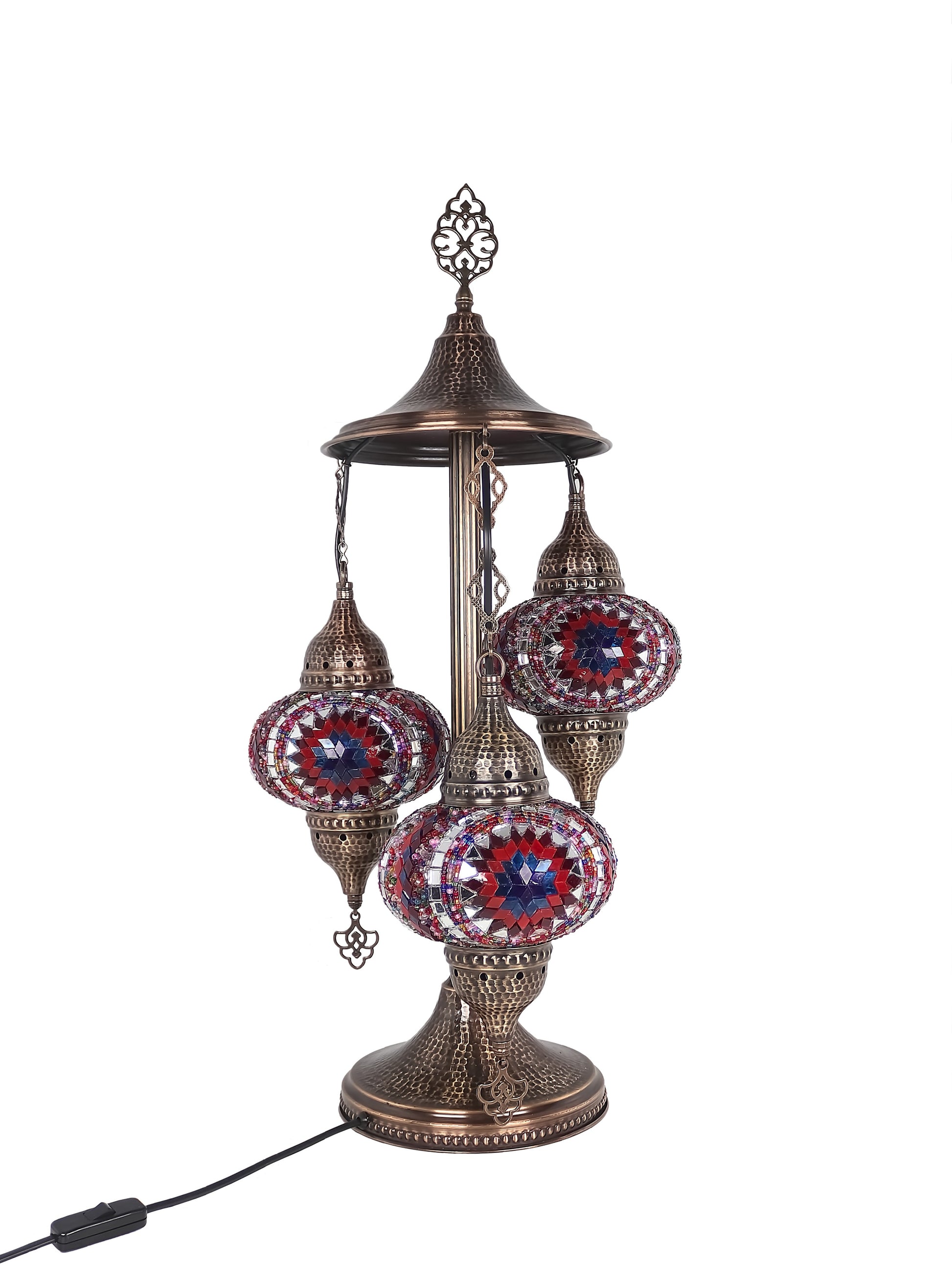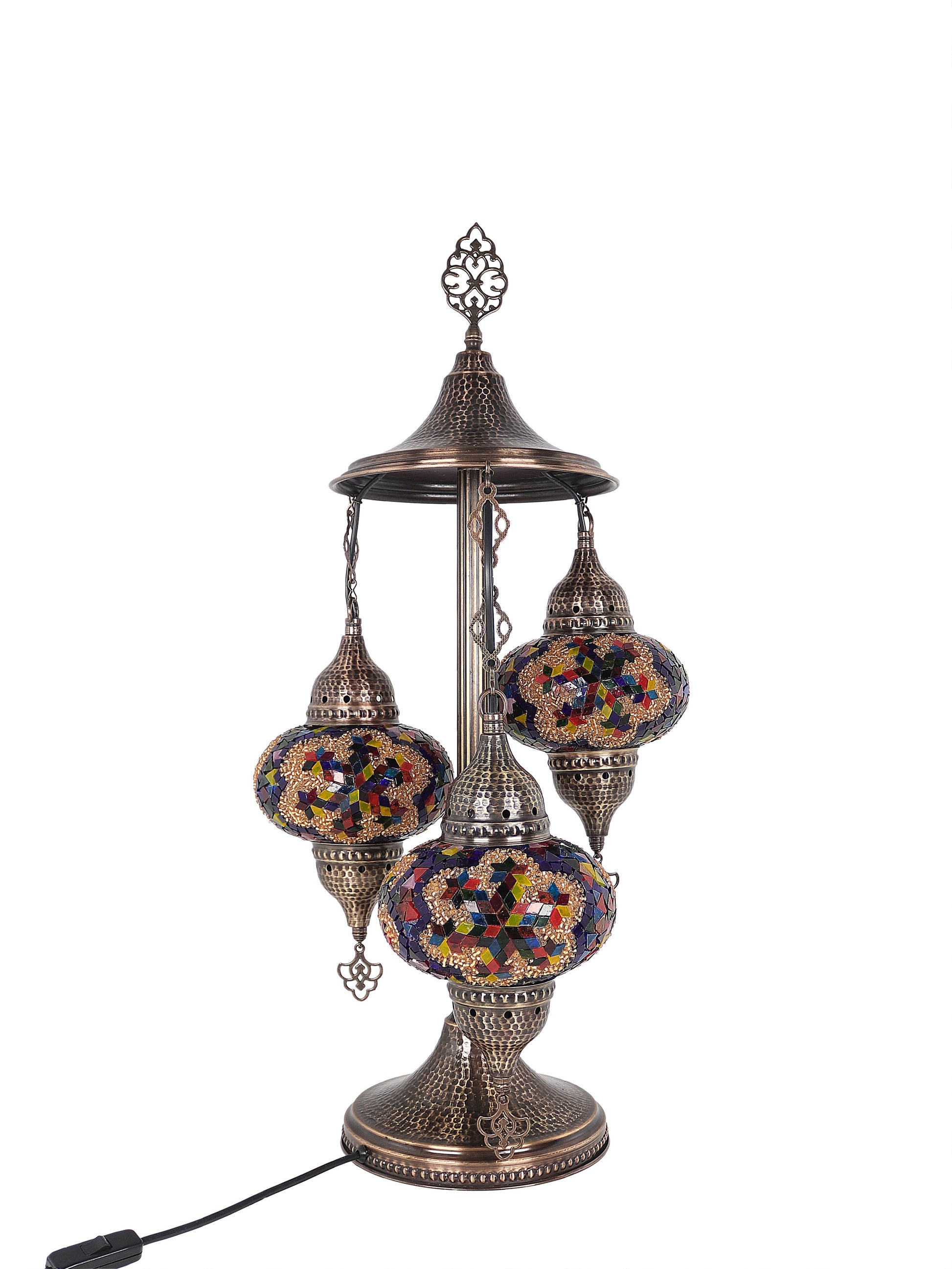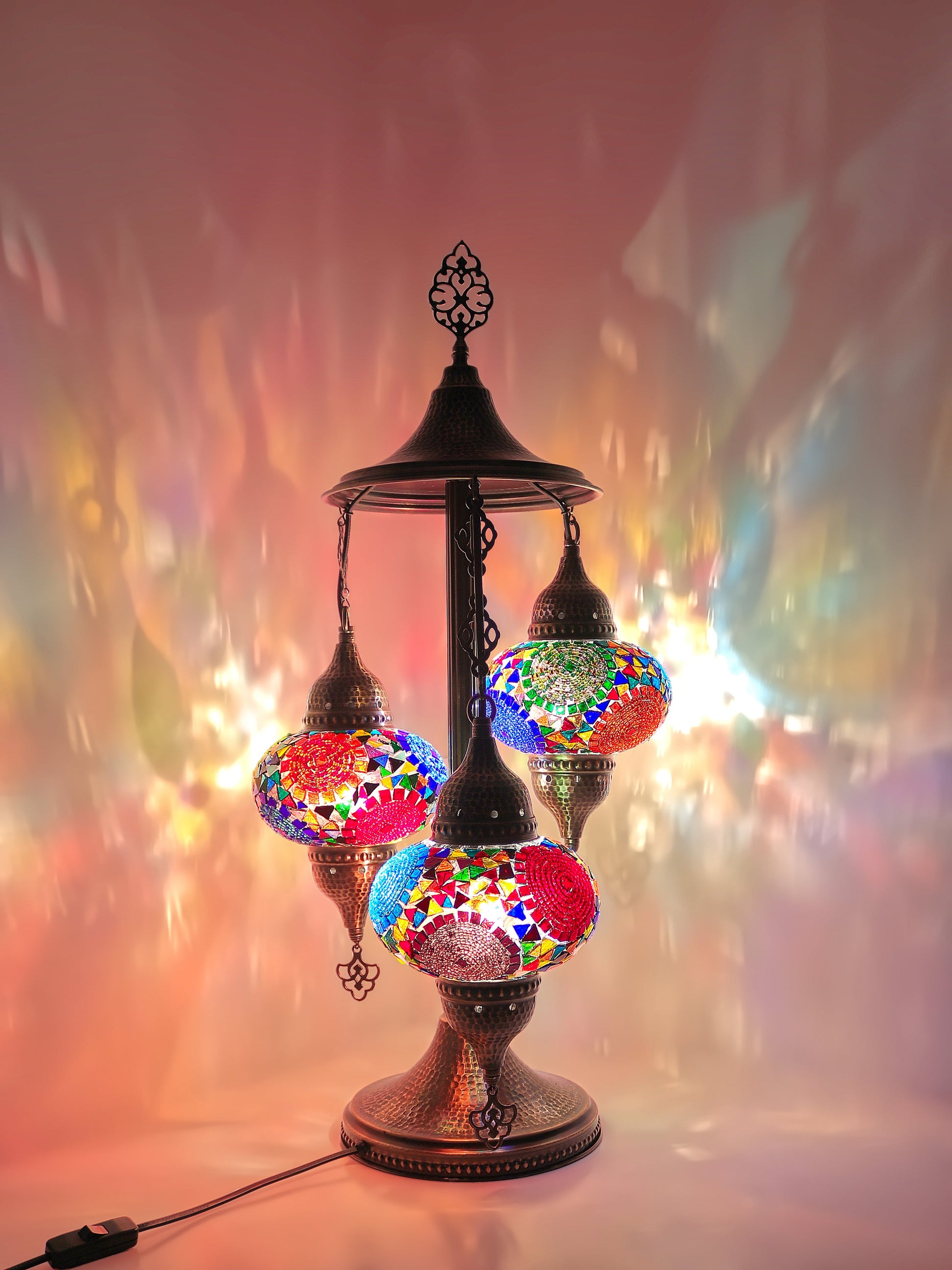 Our Mosaic Glass Lamps feature exquisite Bohemian handblown & hand decorated glass globes that reflect traditional craftsmanship. The metal frames are individually crafted and shaped with precision, especially on larger models, enhancing durability and aesthetic appeal. Our lamps are made in Turkey only after an order is placed, guaranteeing quality and authenticity. The glass globes used are significantly heavier and more robust than standard market offerings, designed to provide lasting beauty instead of delicate fragility. In the unlikely event your lamp is damaged during shipping, please notify us immediately so we can arrange a replacement. Despite recent increases in material costs by 15% to 25%, we remain committed to offering these artisan creations at accessible prices without compromising on quality.