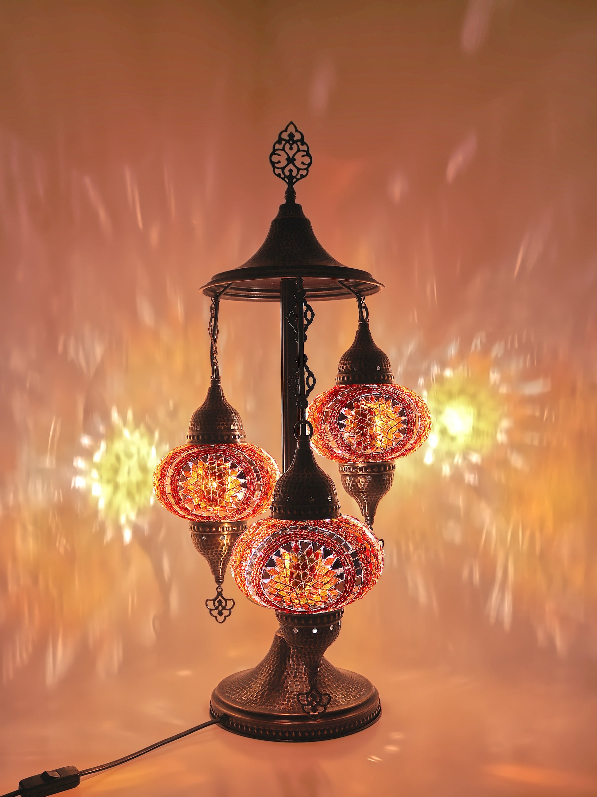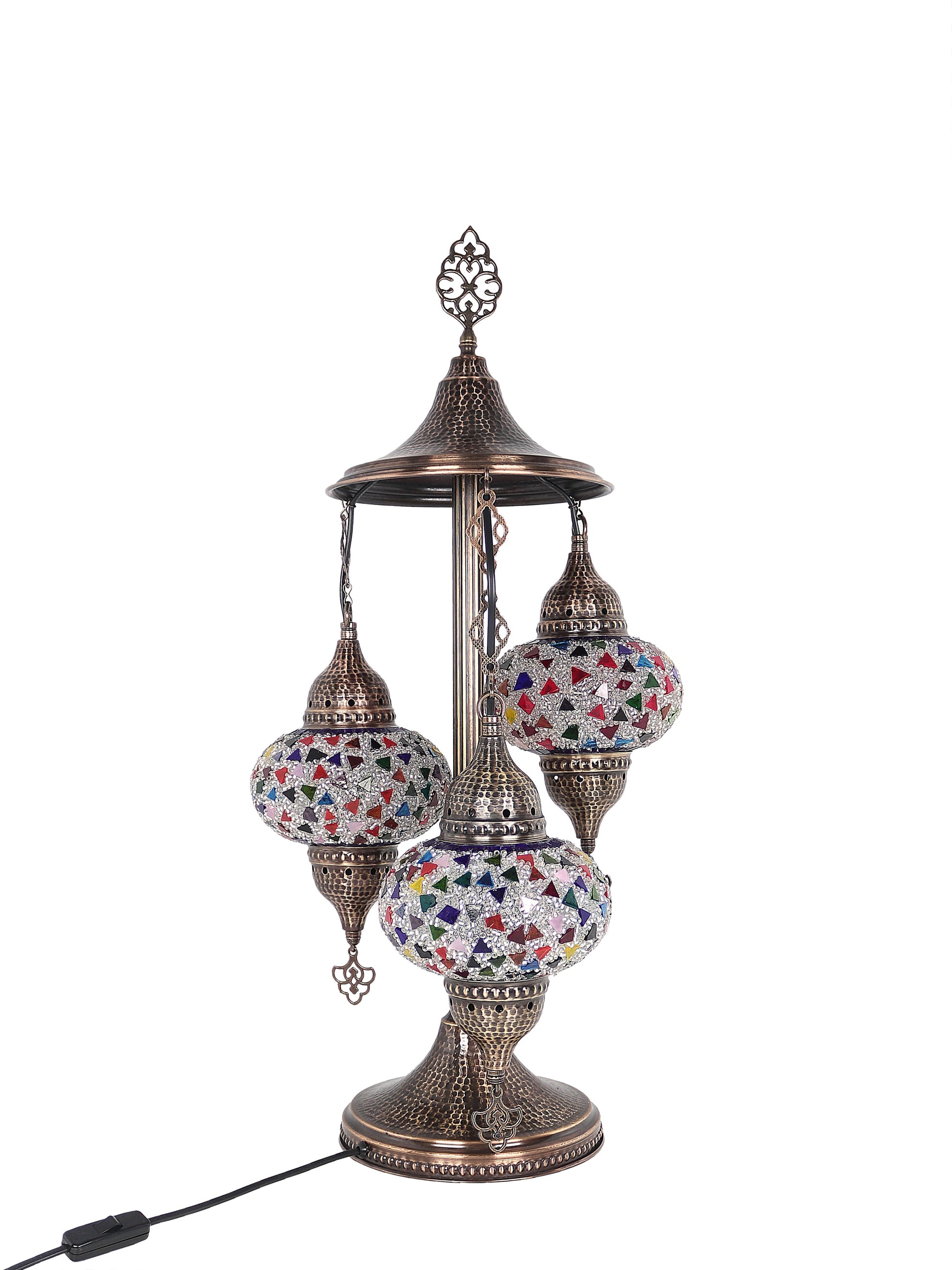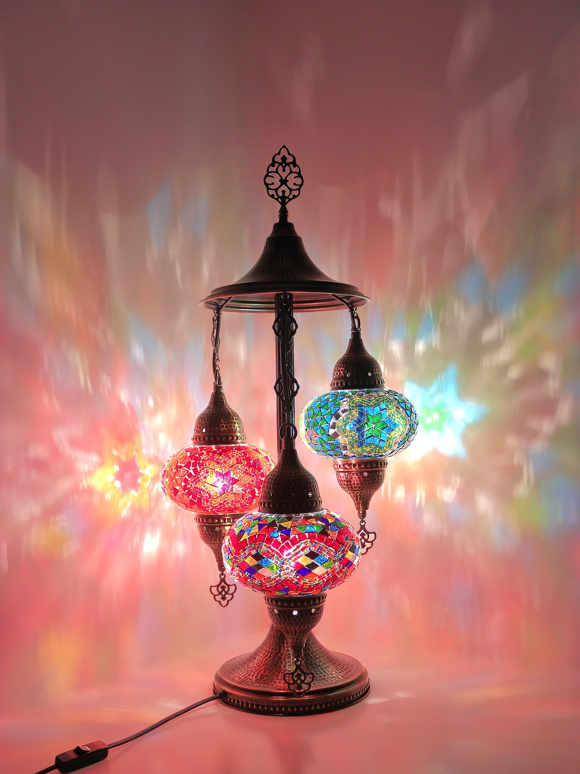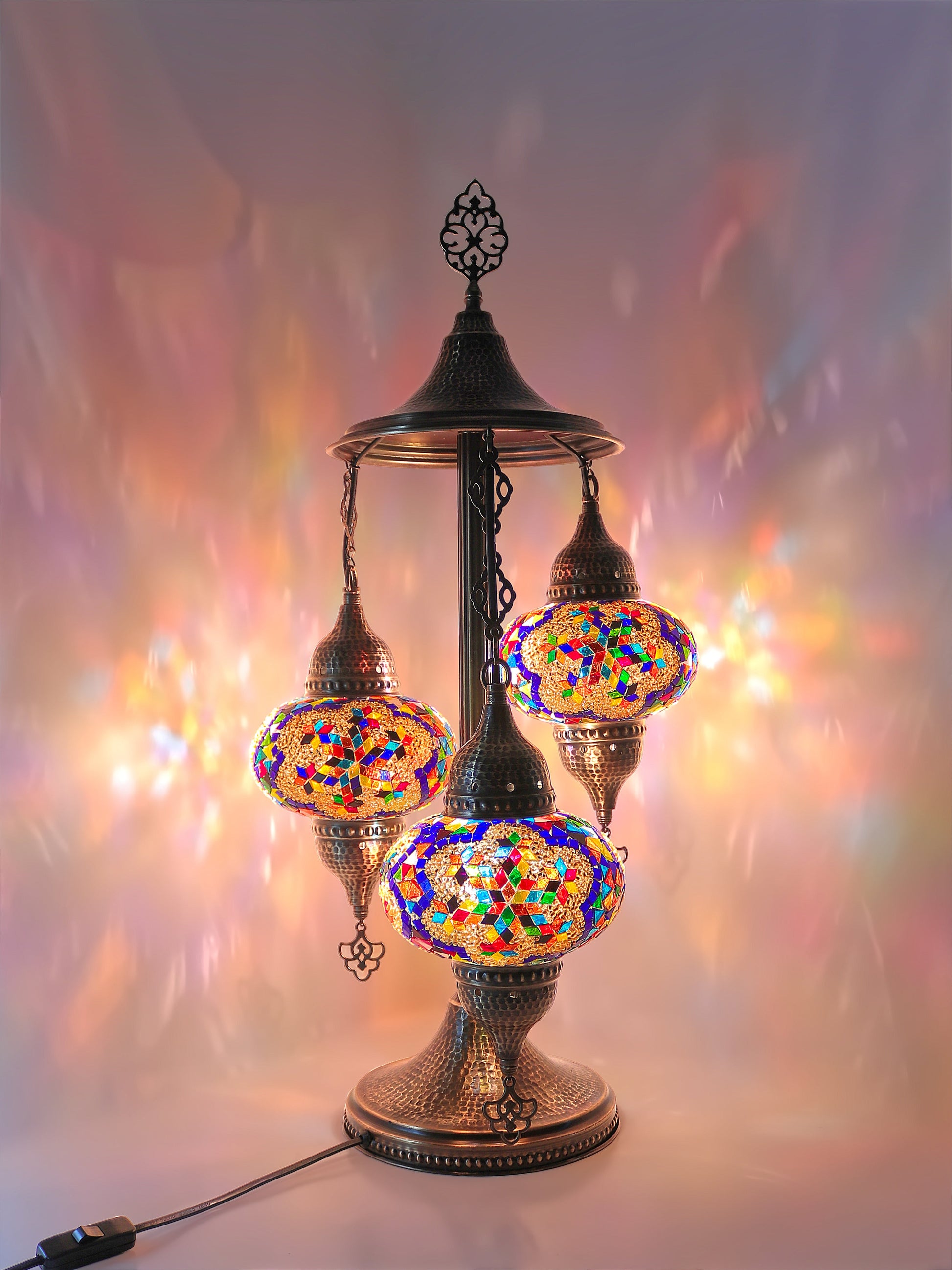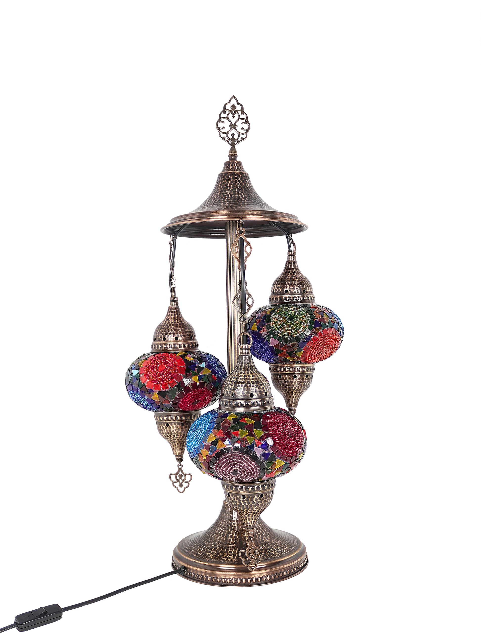 Our Mosaic Glass Lamps feature exquisite Bohemian handblown & hand decorated glass globes that reflect traditional craftsmanship. The metal frames are individually crafted and shaped with precision, especially on larger models, enhancing durability and aesthetic appeal. Our lamps are made in Turkey only after an order is placed, guaranteeing quality and authenticity. The glass globes used are significantly heavier and more robust than standard market offerings, designed to provide lasting beauty instead of delicate fragility. In the unlikely event your lamp is damaged during shipping, please notify us immediately so we can arrange a replacement. Despite recent increases in material costs by 15% to 25%, we remain committed to offering these artisan creations at accessible prices without compromising on quality.