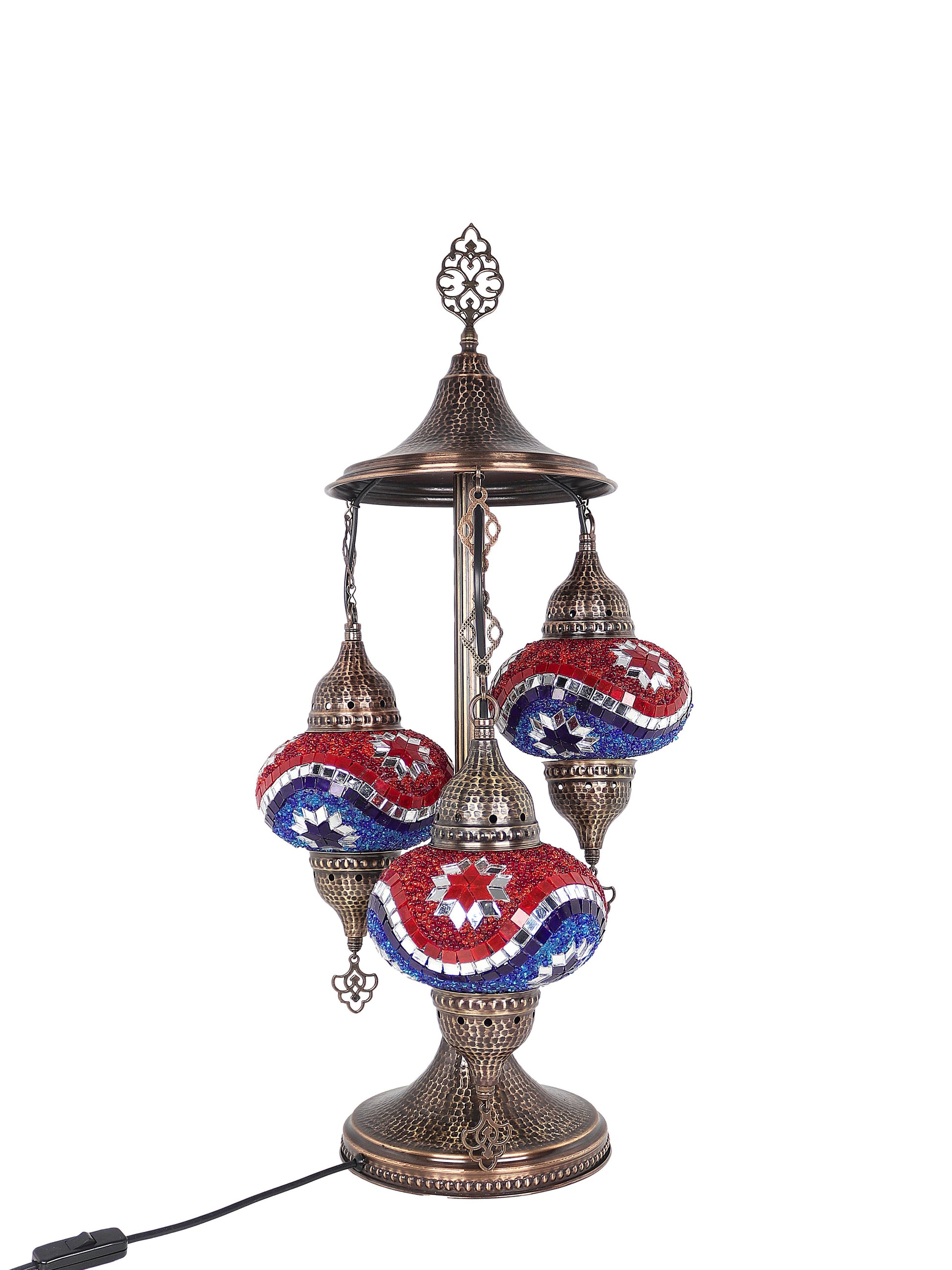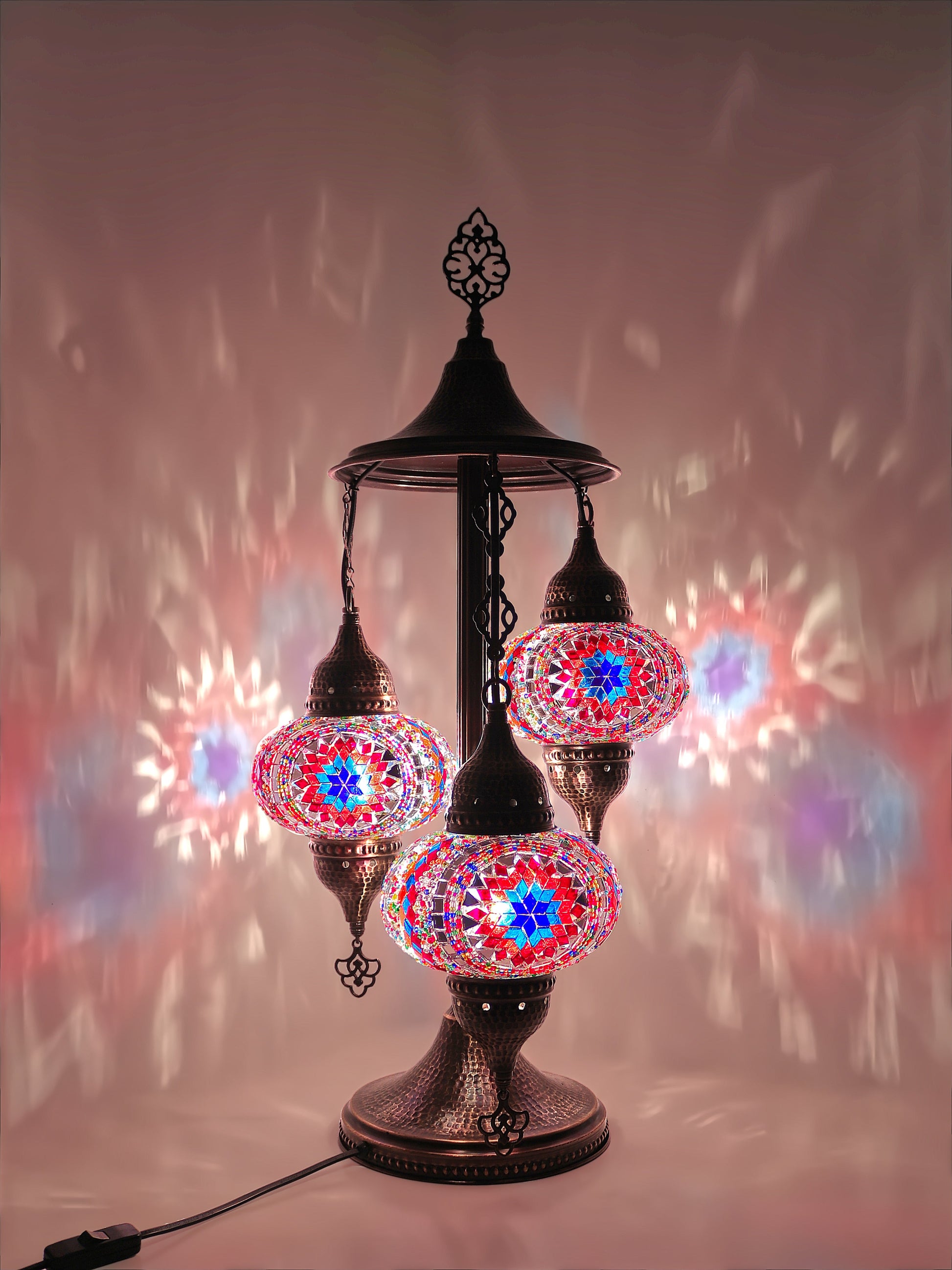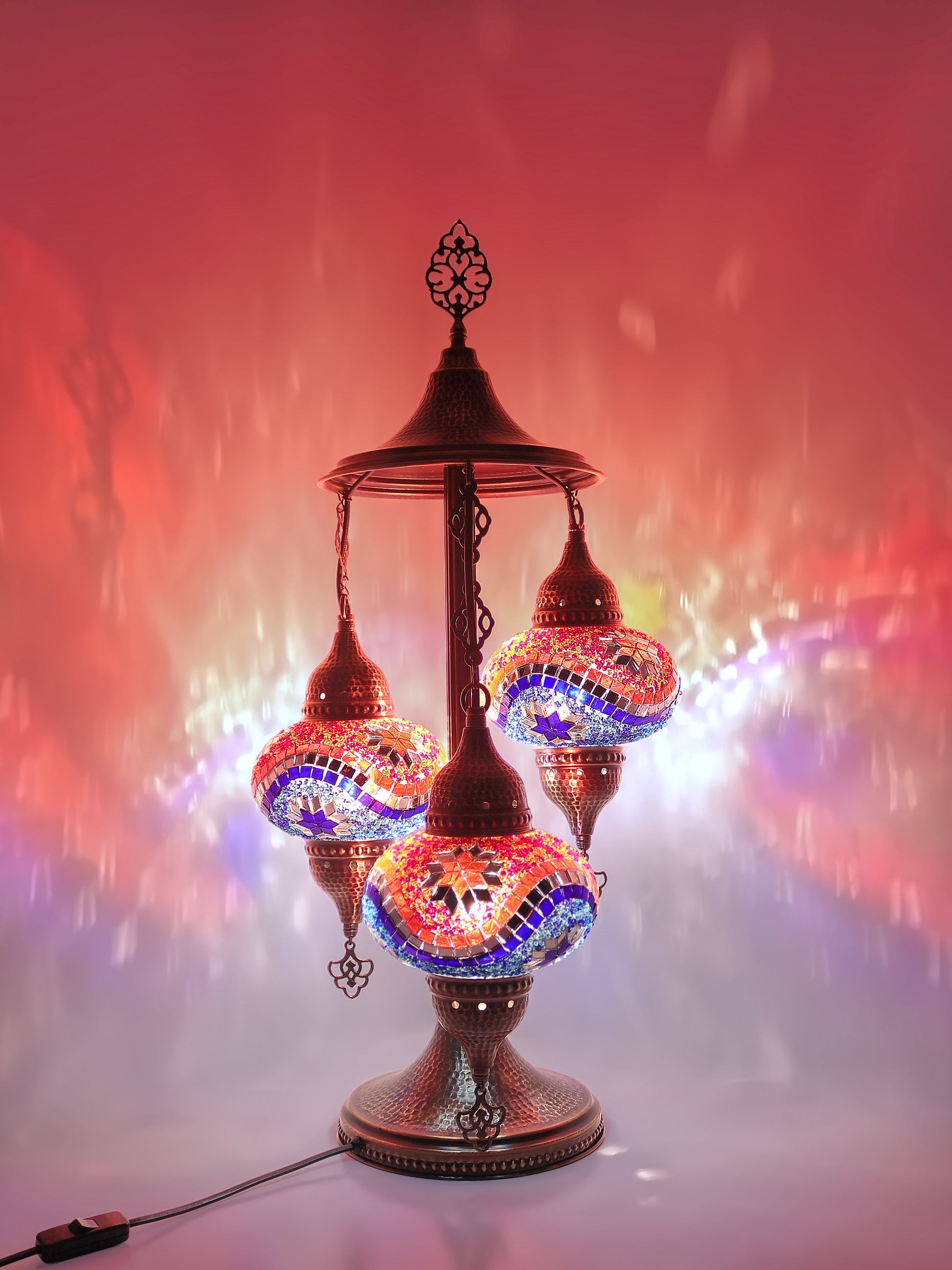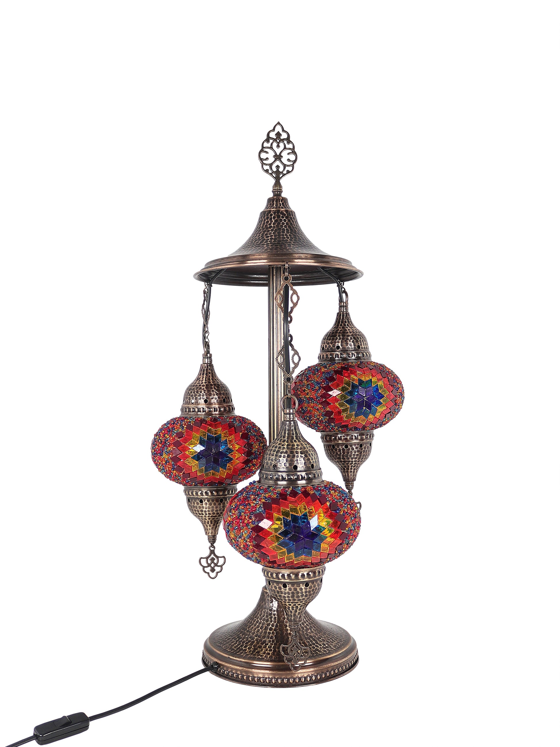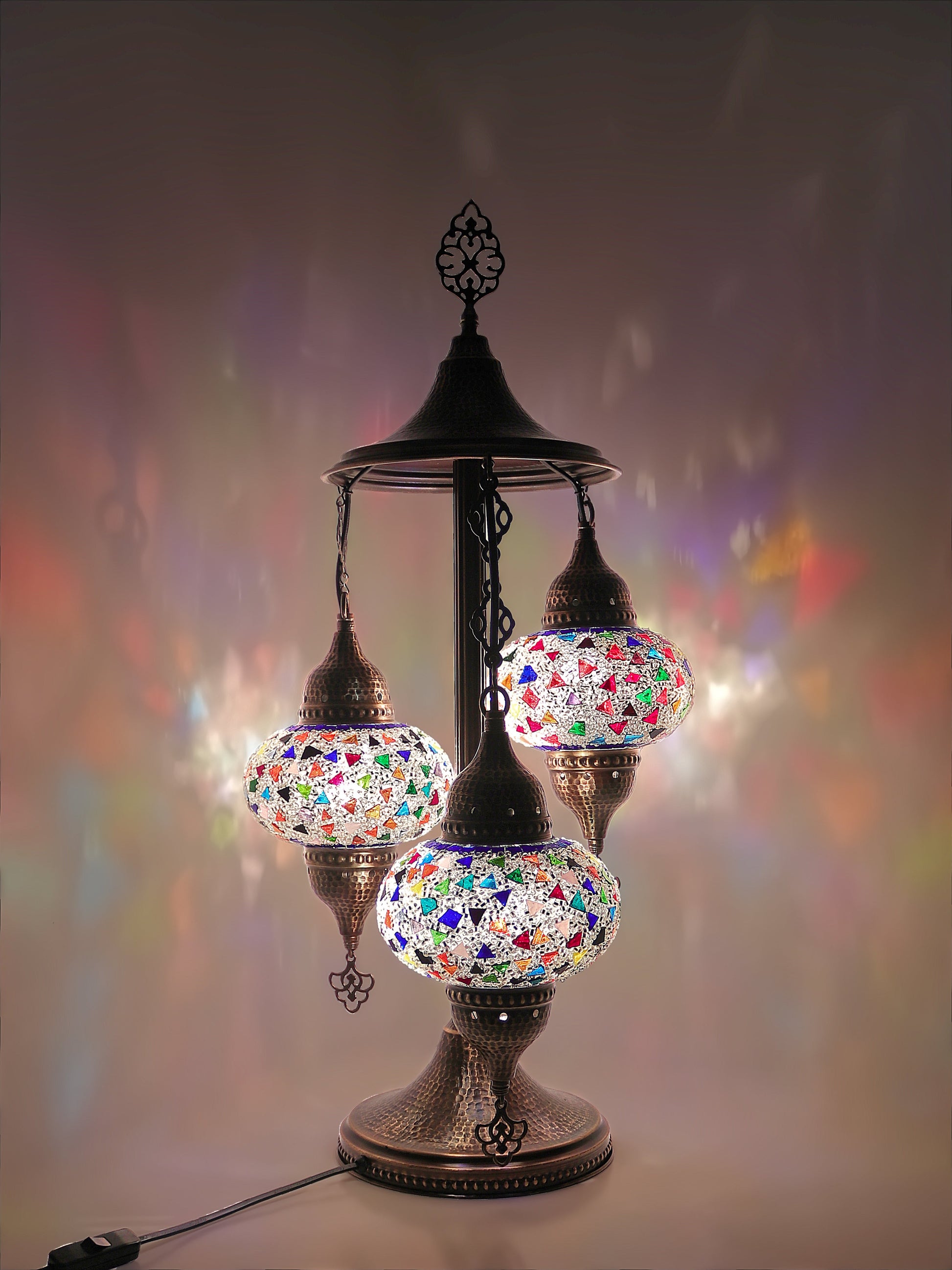 Our Mosaic Glass Lamps feature exquisite Bohemian handblown & hand decorated glass globes that reflect traditional craftsmanship. The metal frames are individually crafted and shaped with precision, especially on larger models, enhancing durability and aesthetic appeal. Our lamps are made in Turkey only after an order is placed, guaranteeing quality and authenticity. The glass globes used are significantly heavier and more robust than standard market offerings, designed to provide lasting beauty instead of delicate fragility. In the unlikely event your lamp is damaged during shipping, please notify us immediately so we can arrange a replacement. Despite recent increases in material costs by 15% to 25%, we remain committed to offering these artisan creations at accessible prices without compromising on quality.