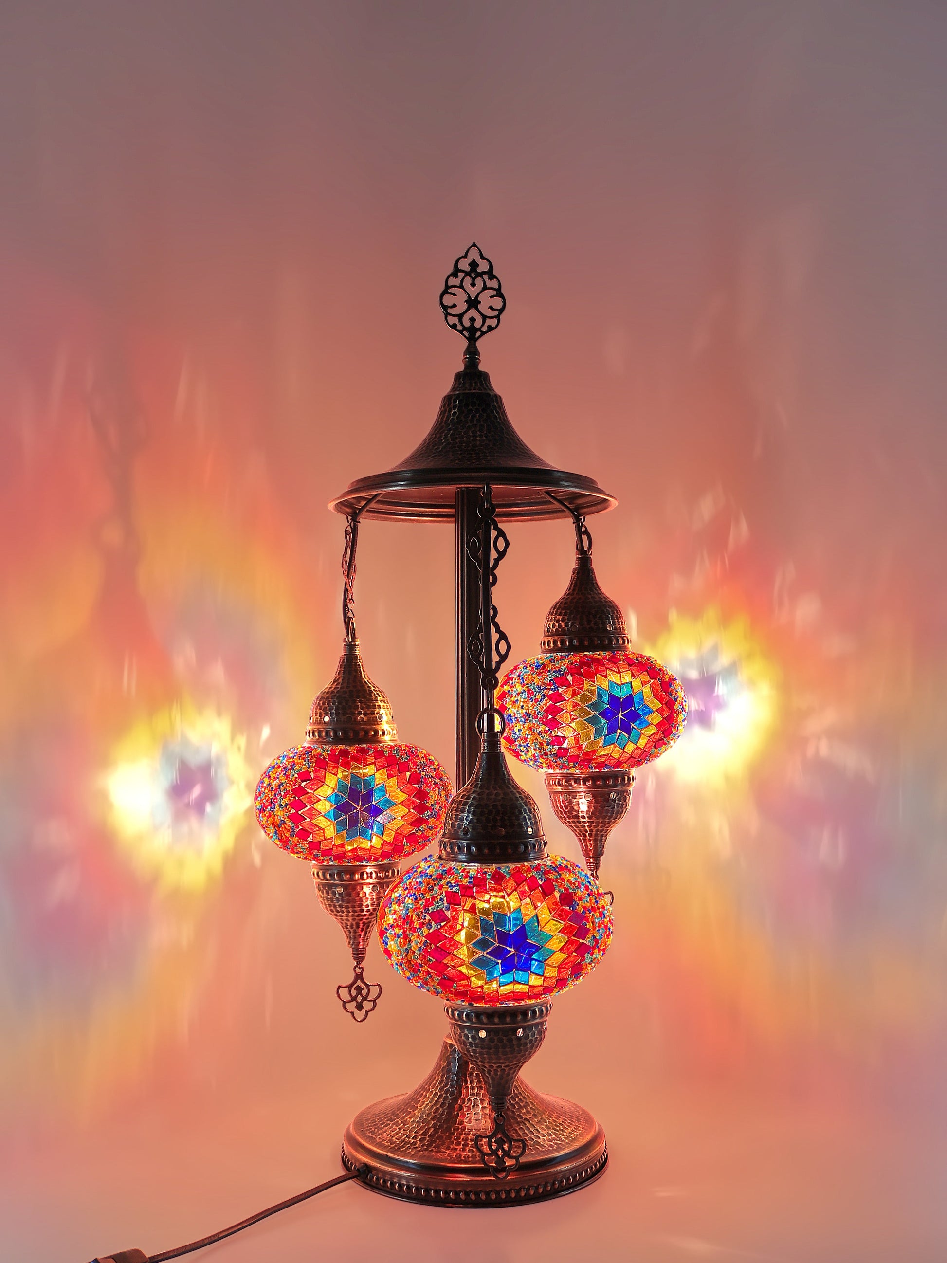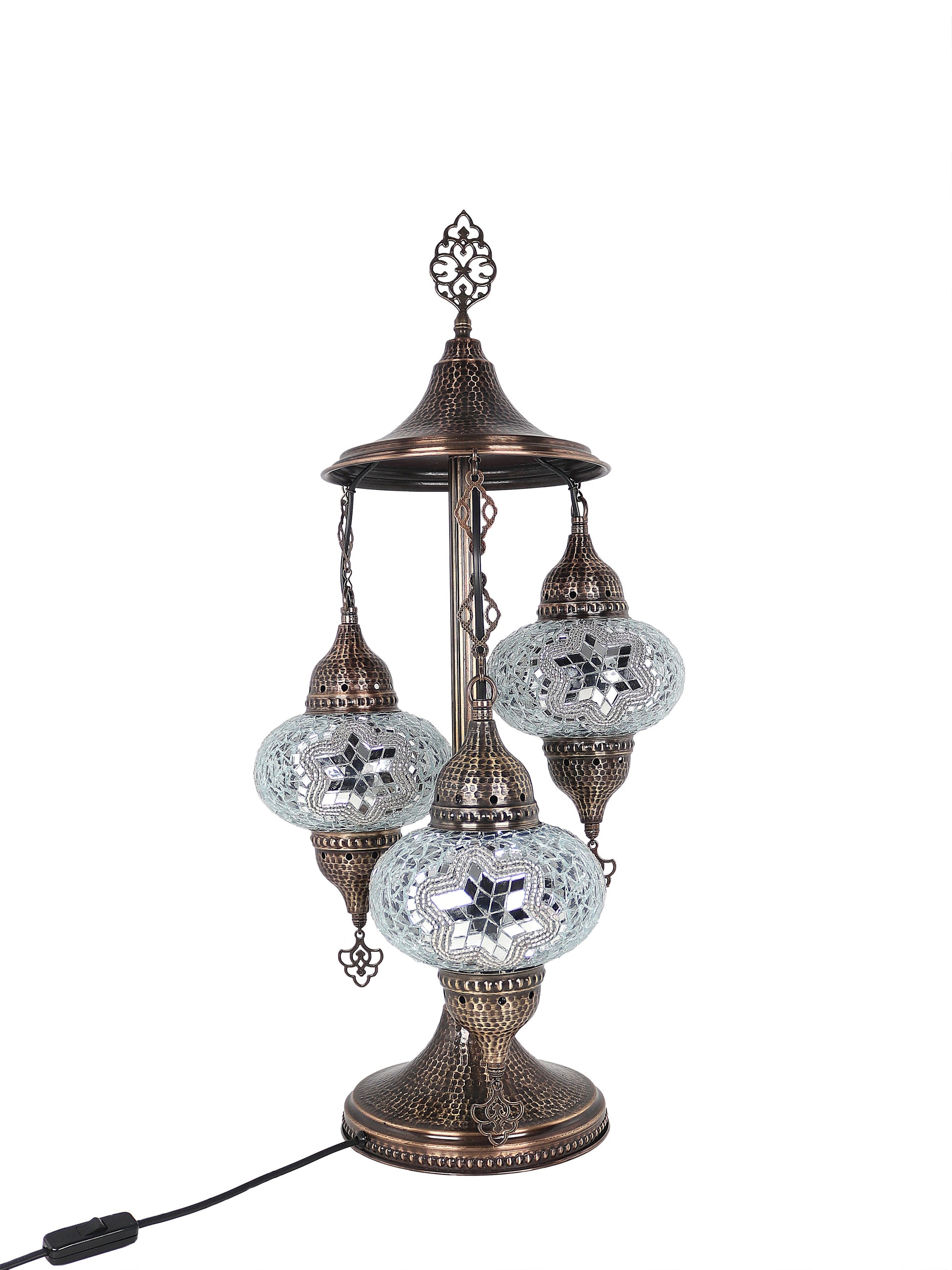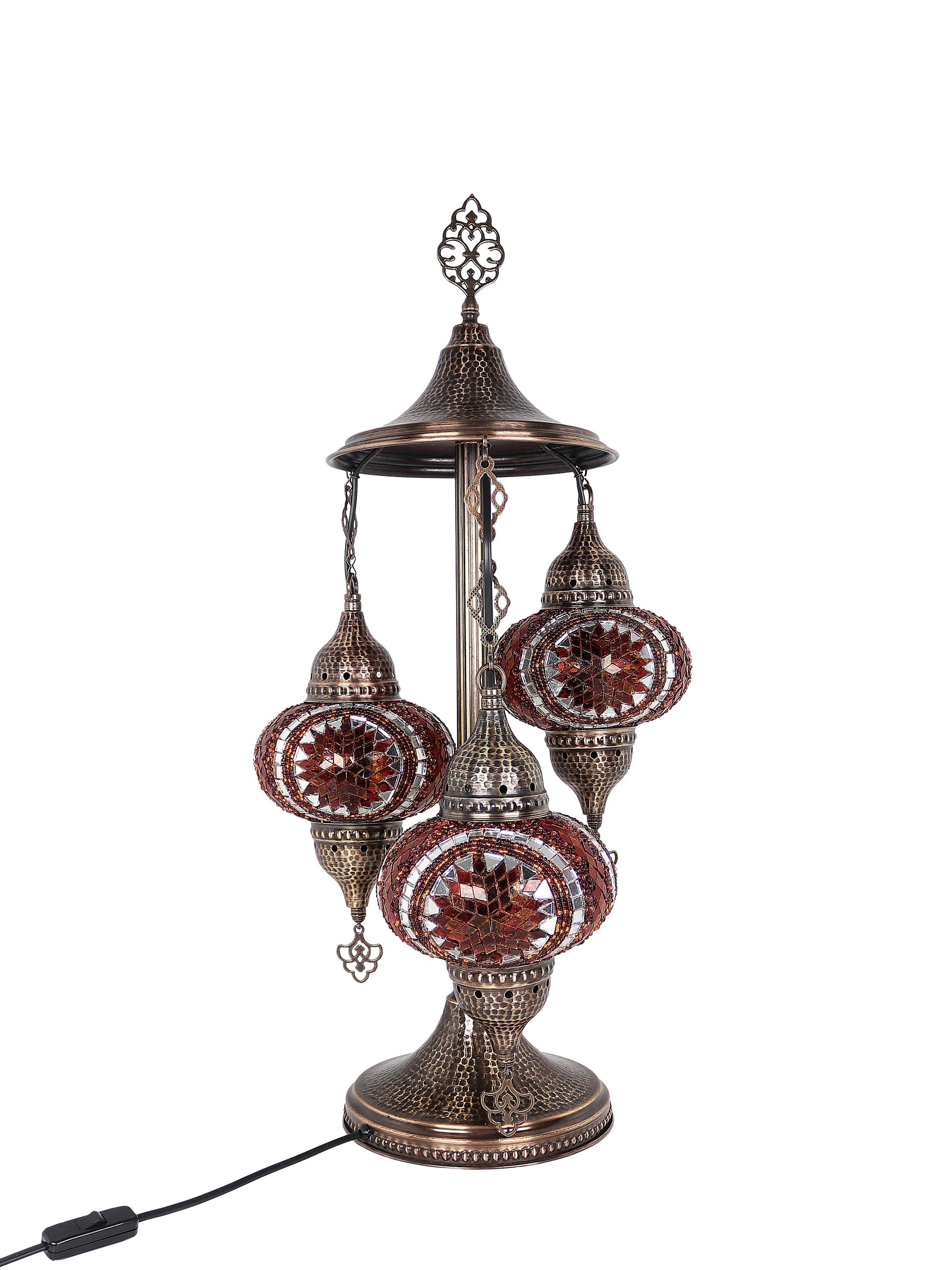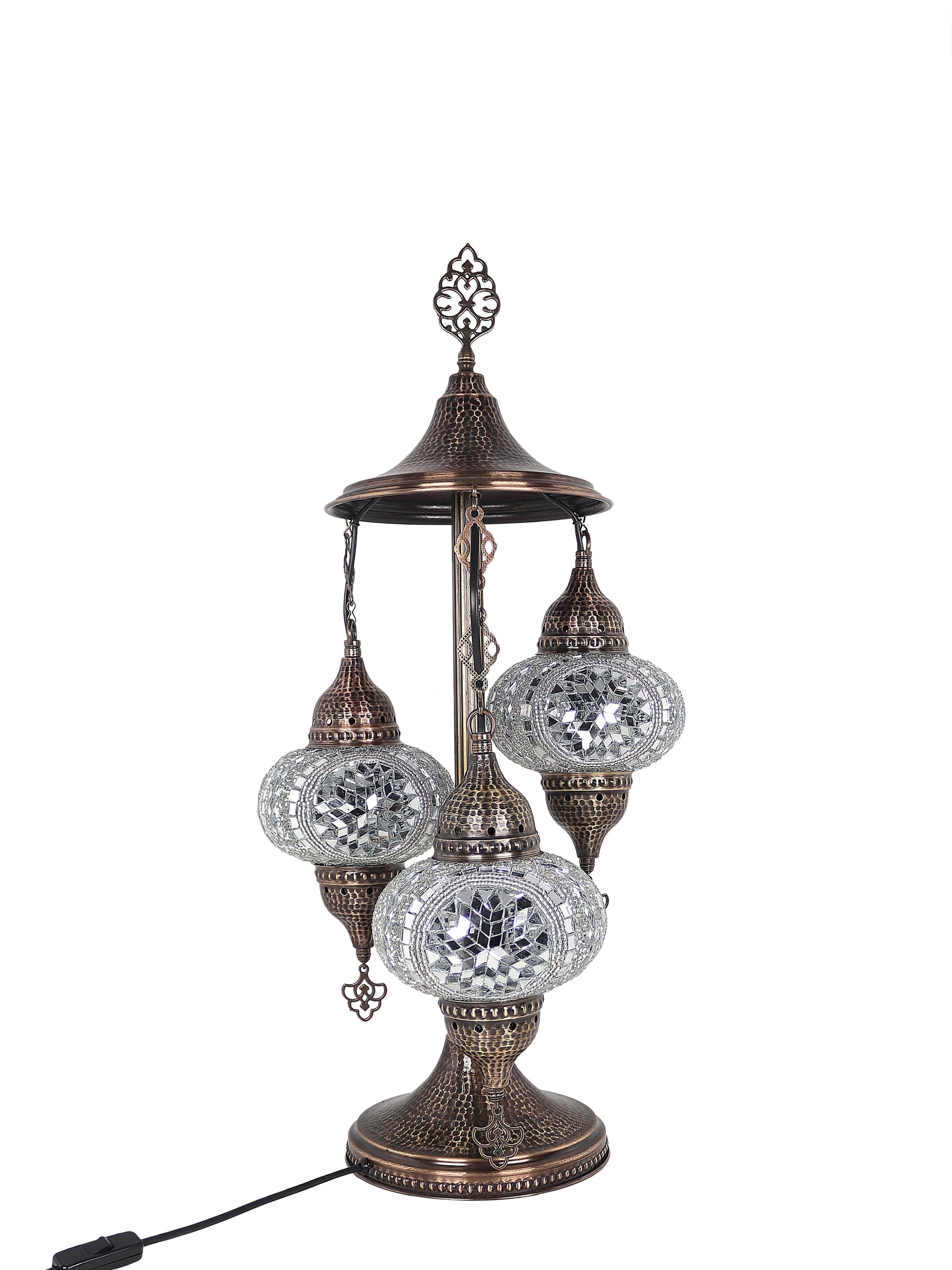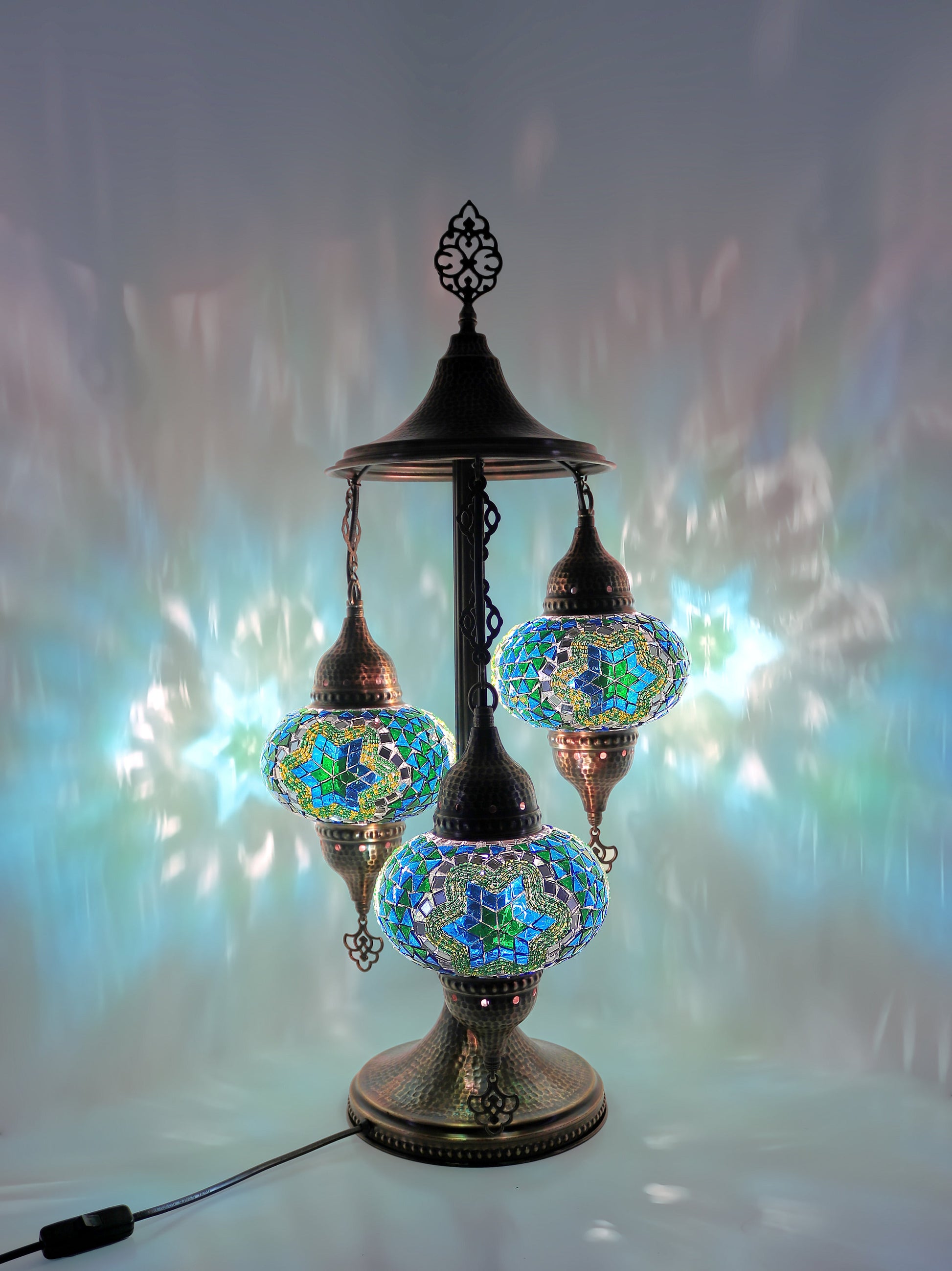 Our Mosaic Glass Lamps feature exquisite Bohemian handblown & hand decorated glass globes that reflect traditional craftsmanship. The metal frames are individually crafted and shaped with precision, especially on larger models, enhancing durability and aesthetic appeal. Our lamps are made in Turkey only after an order is placed, guaranteeing quality and authenticity. The glass globes used are significantly heavier and more robust than standard market offerings, designed to provide lasting beauty instead of delicate fragility. In the unlikely event your lamp is damaged during shipping, please notify us immediately so we can arrange a replacement. Despite recent increases in material costs by 15% to 25%, we remain committed to offering these artisan creations at accessible prices without compromising on quality.