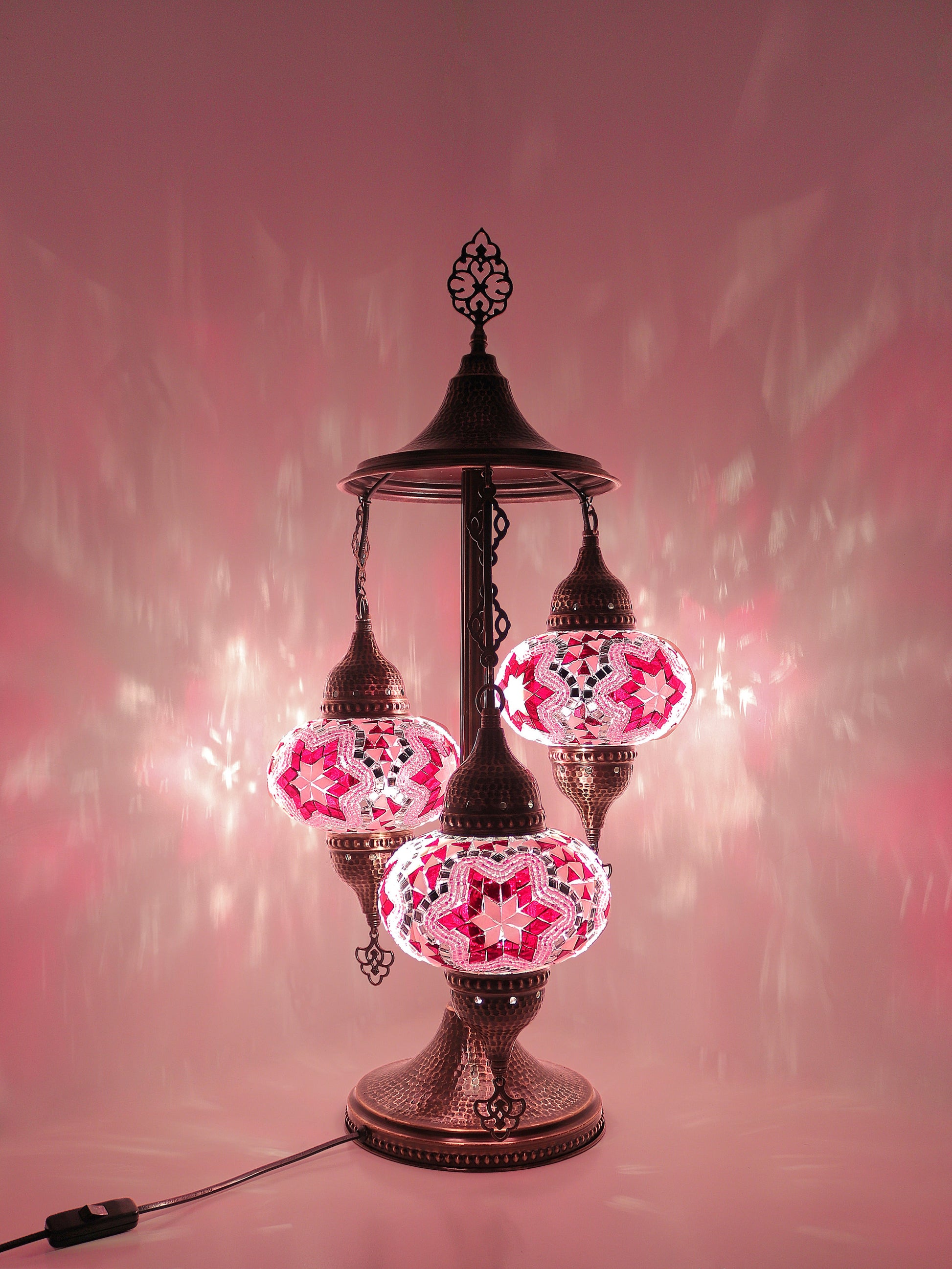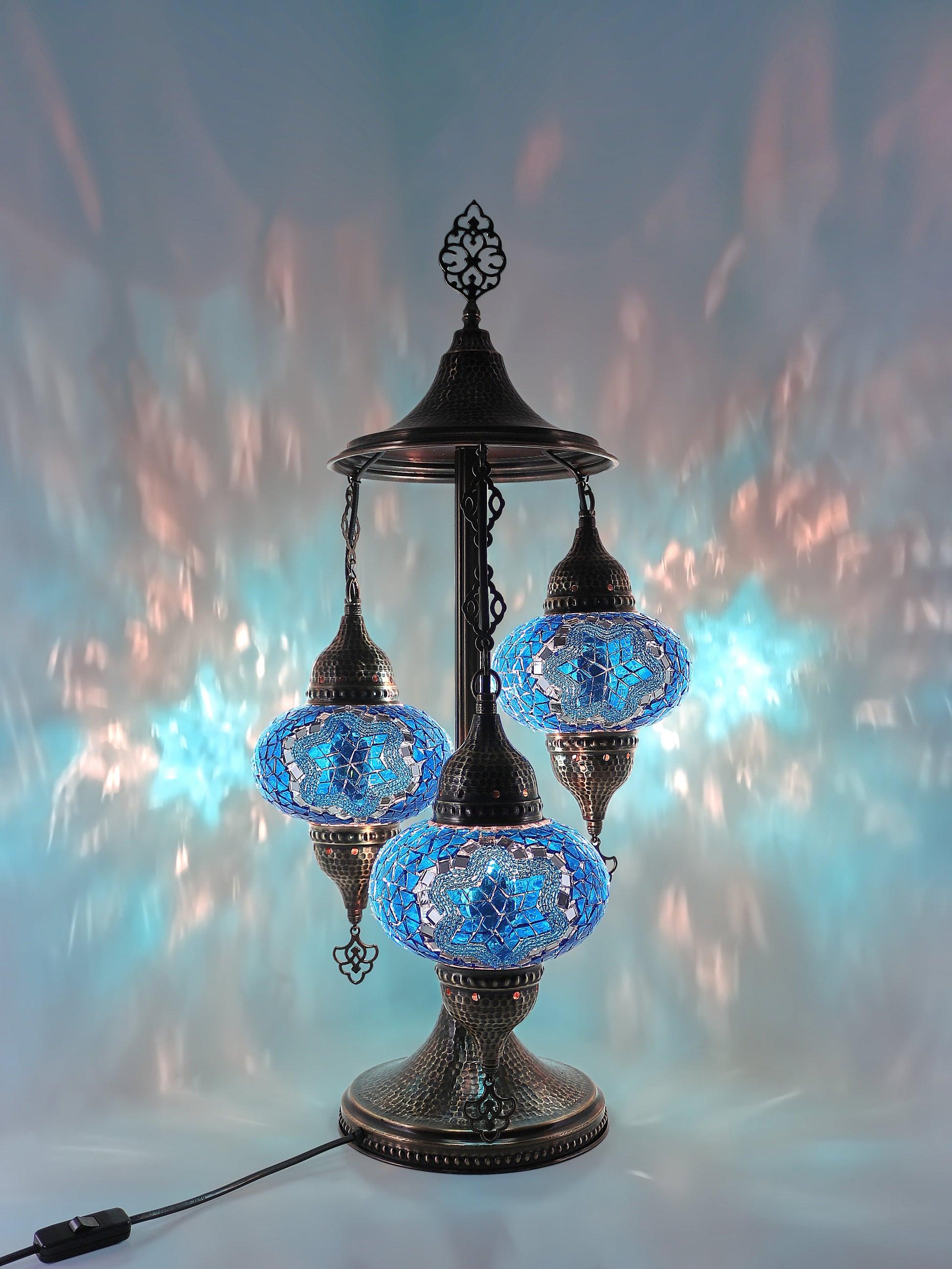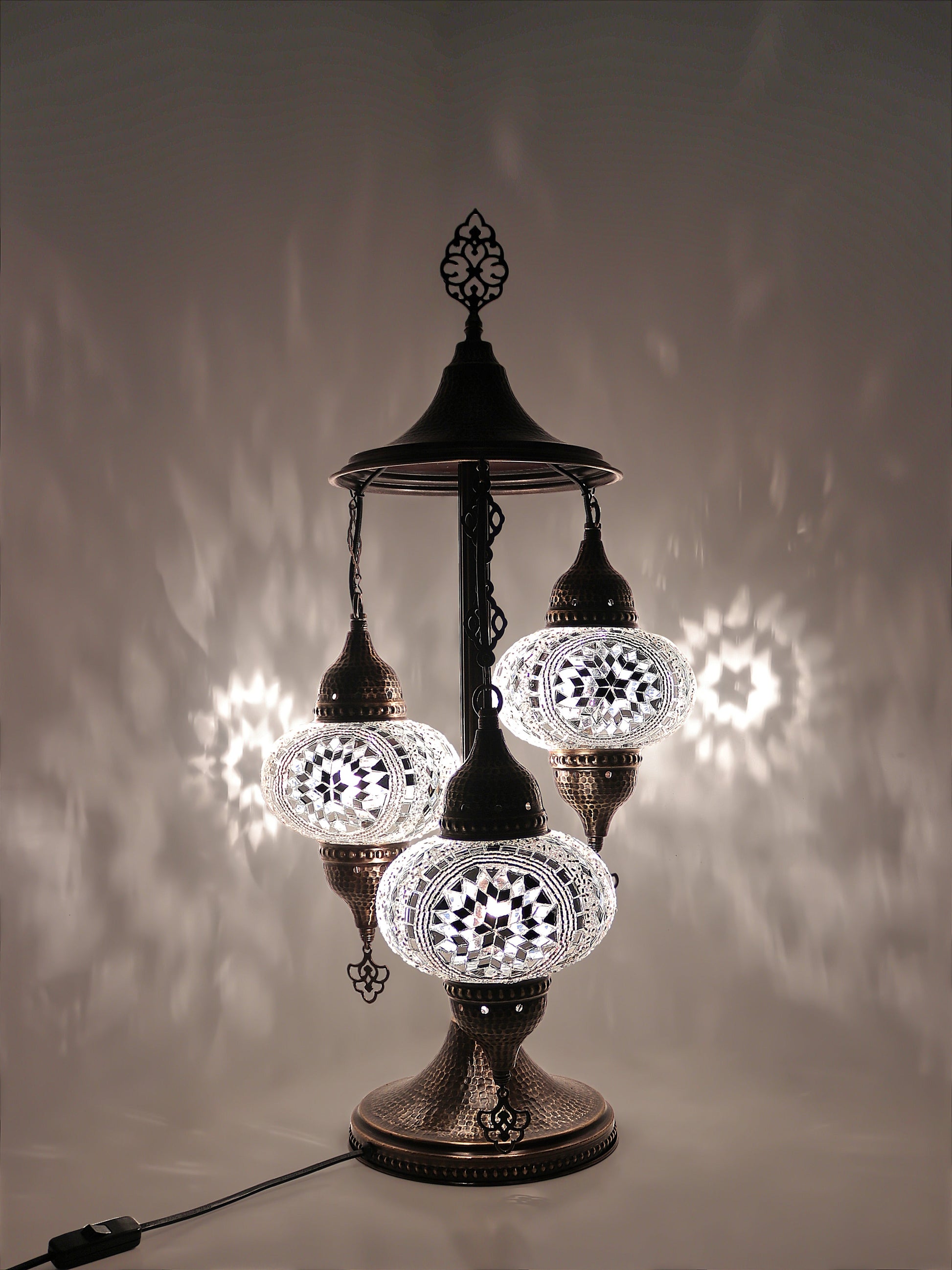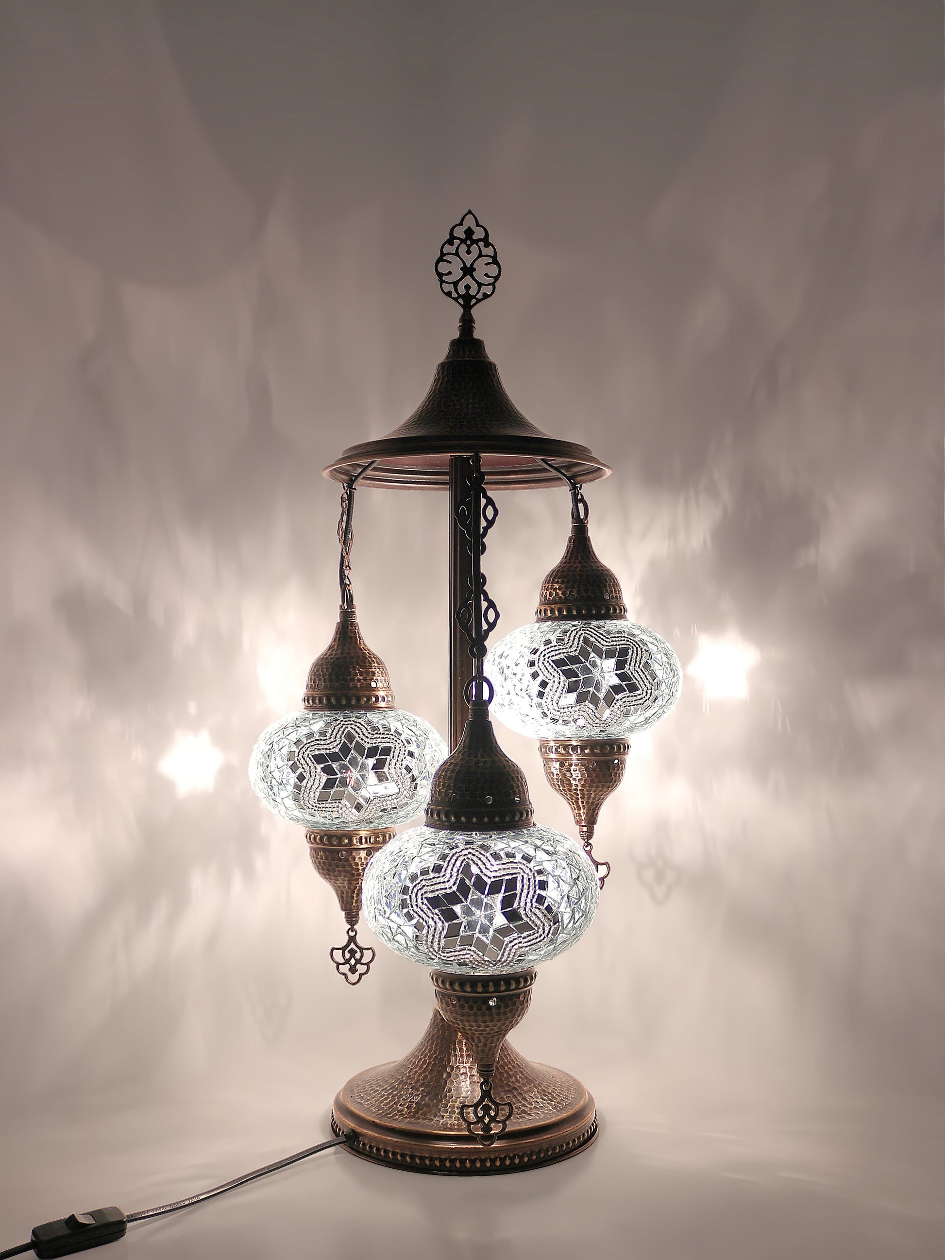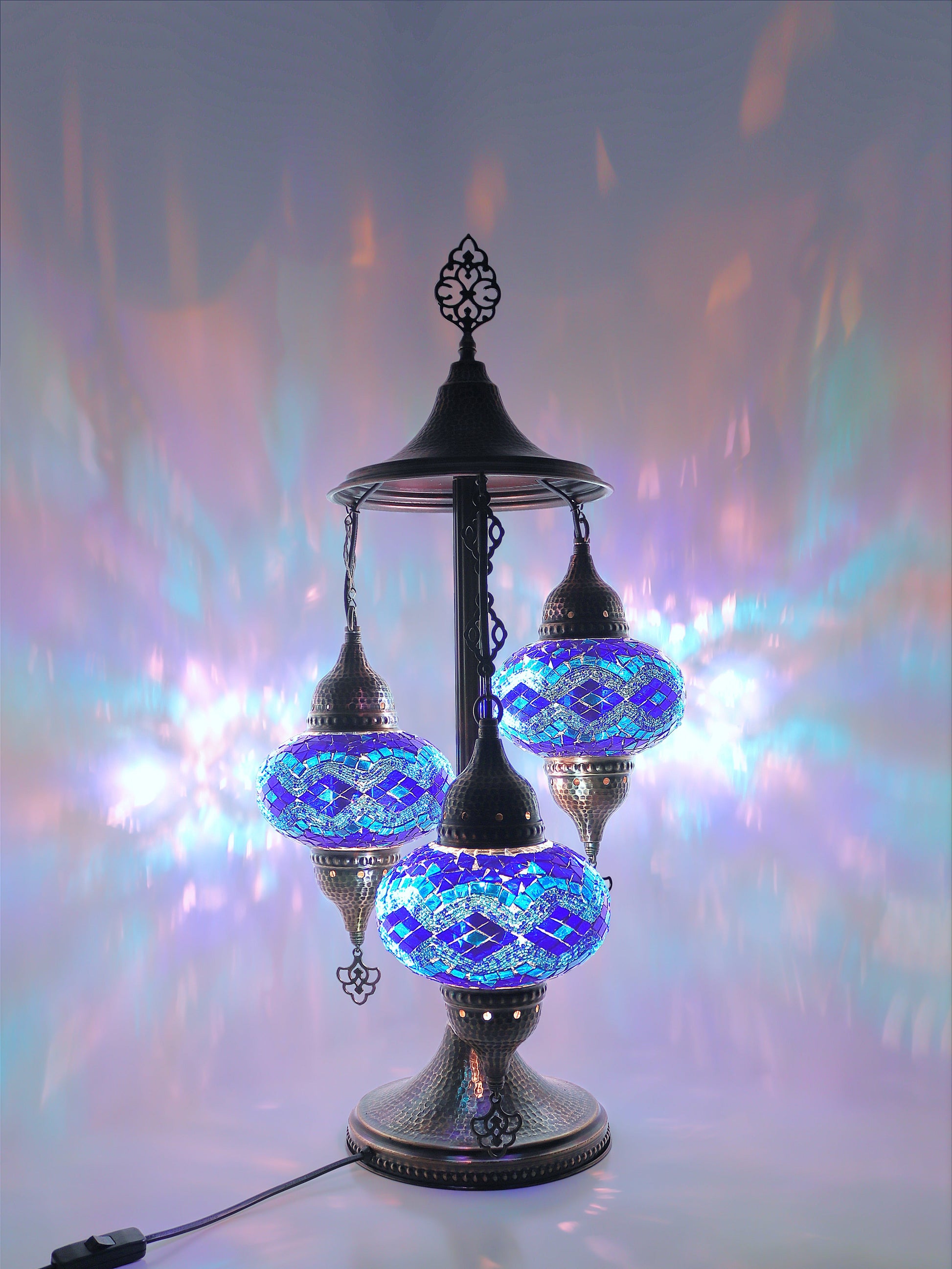 Our Mosaic Glass Lamps feature exquisite Bohemian handblown & hand decorated glass globes that reflect traditional craftsmanship. The metal frames are individually crafted and shaped with precision, especially on larger models, enhancing durability and aesthetic appeal. Our lamps are made in Turkey only after an order is placed, guaranteeing quality and authenticity. The glass globes used are significantly heavier and more robust than standard market offerings, designed to provide lasting beauty instead of delicate fragility. In the unlikely event your lamp is damaged during shipping, please notify us immediately so we can arrange a replacement. Despite recent increases in material costs by 15% to 25%, we remain committed to offering these artisan creations at accessible prices without compromising on quality.