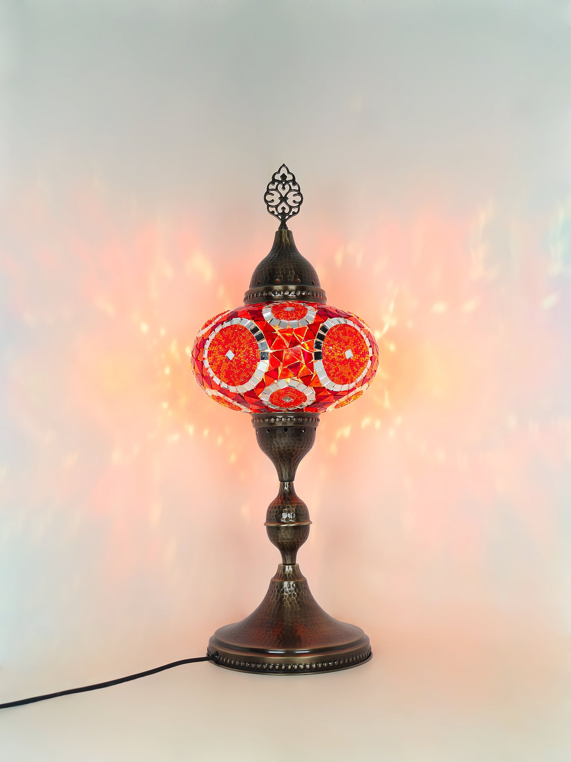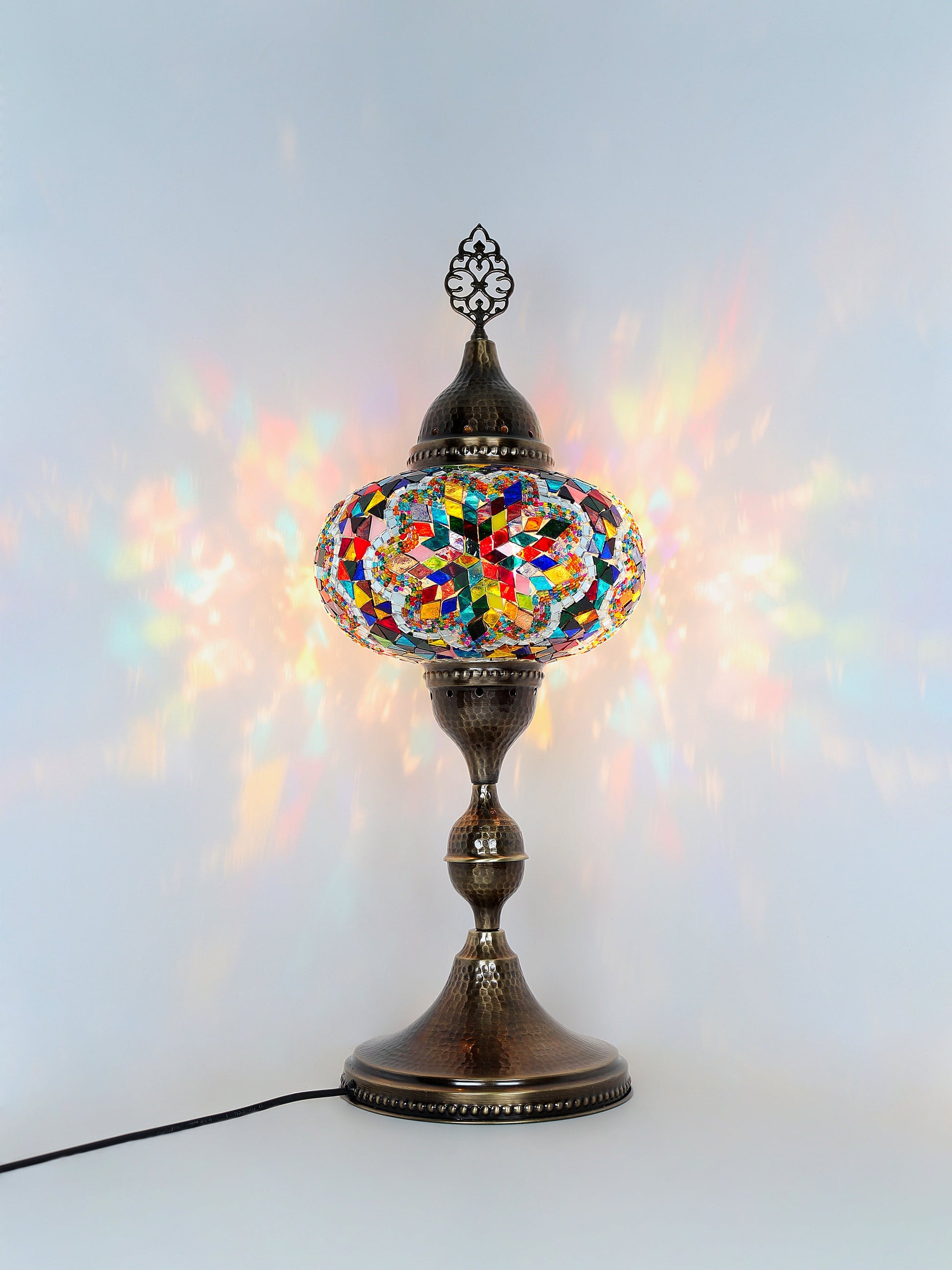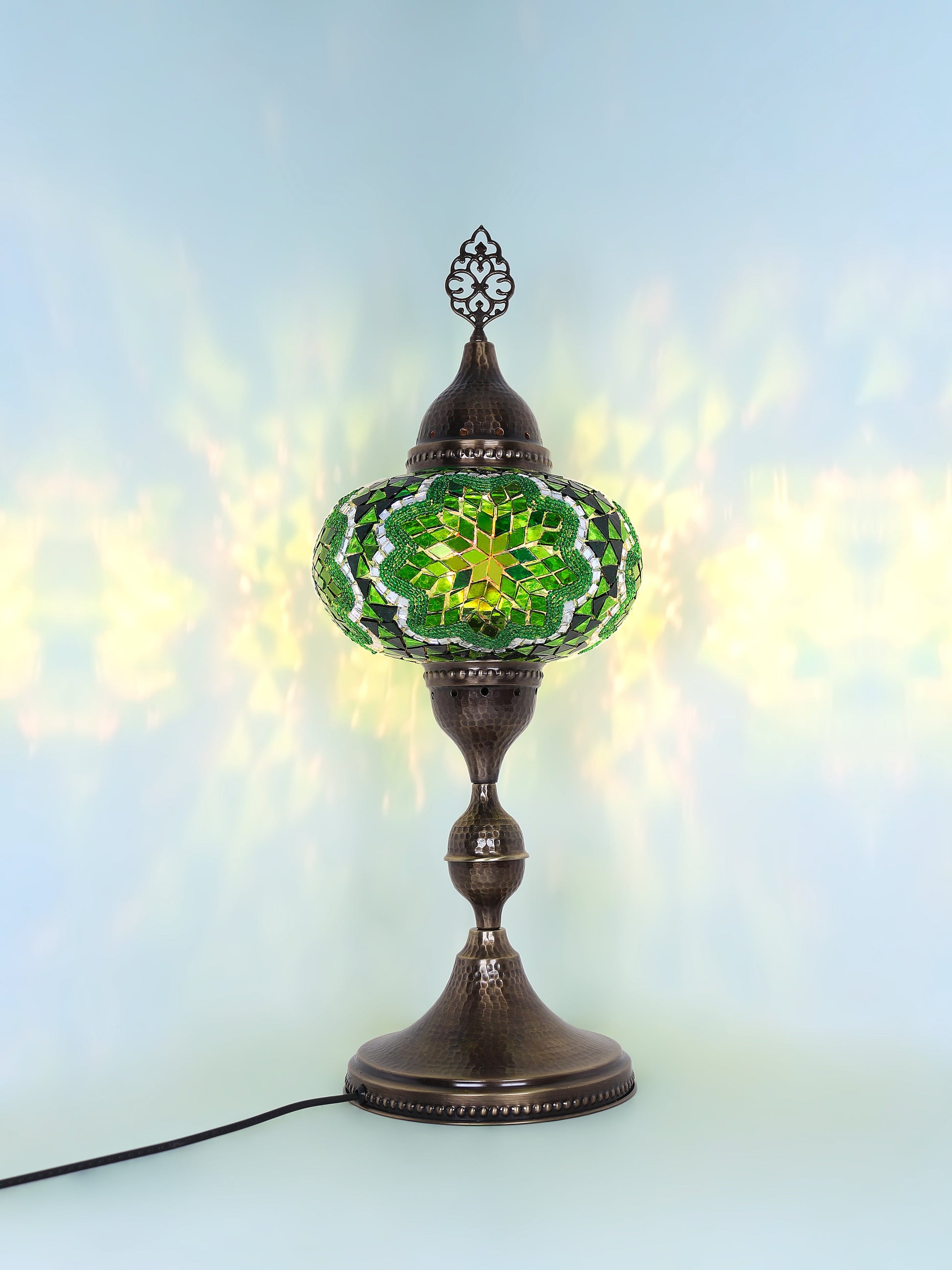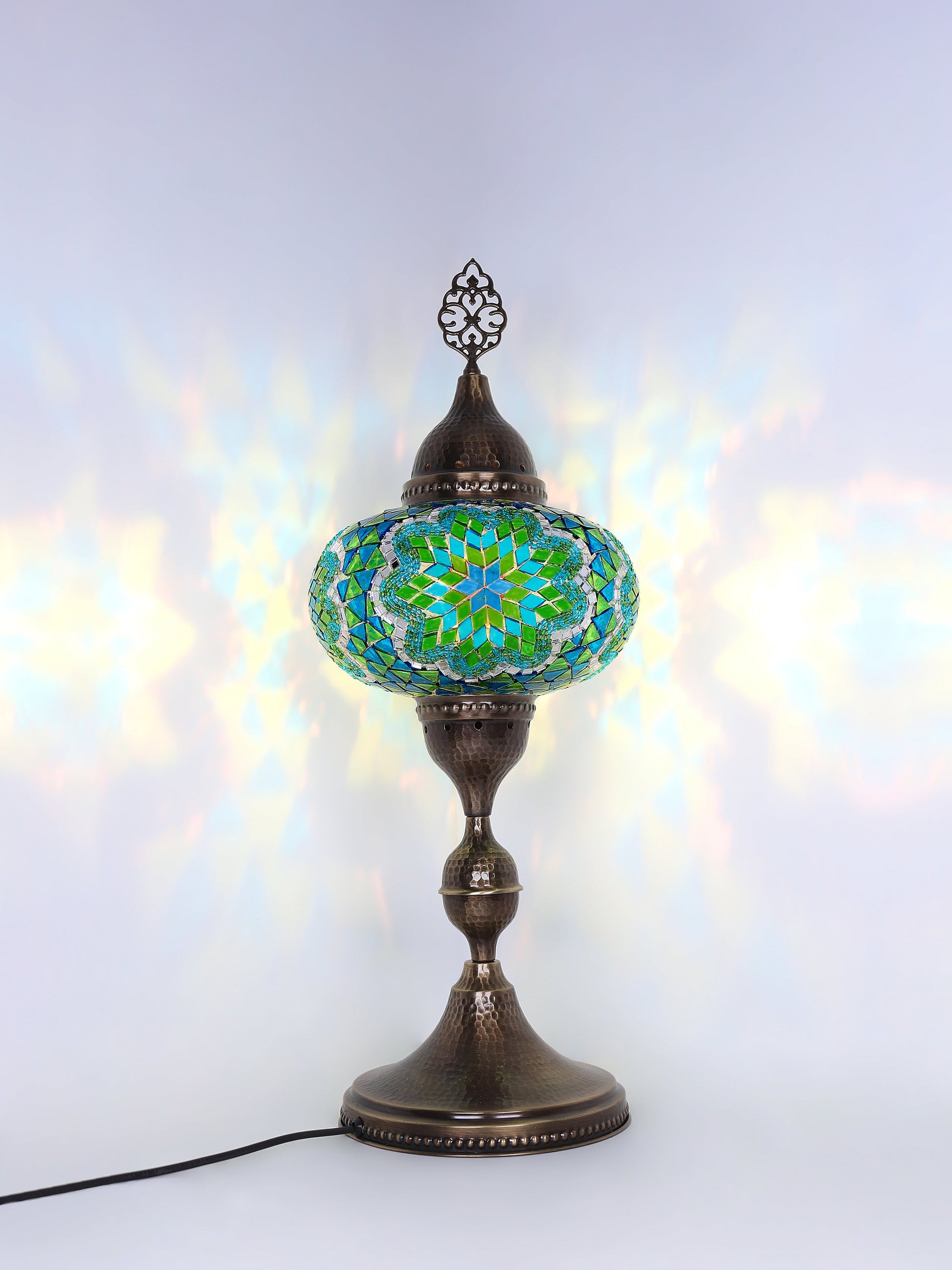 Our Mosaic Glass Lamps feature exquisite Bohemian handblown & hand decorated glass globes that reflect traditional craftsmanship. The metal frames are individually crafted and shaped with precision, especially on larger models, enhancing durability and aesthetic appeal. Our lamps are made in Turkey only after an order is placed, guaranteeing quality and authenticity. The glass globes used are significantly heavier and more robust than standard market offerings, designed to provide lasting beauty instead of delicate fragility. In the unlikely event your lamp is damaged during shipping, please notify us immediately so we can arrange a replacement. Despite recent increases in material costs by 15% to 25%, we remain committed to offering these artisan creations at accessible prices without compromising on quality.