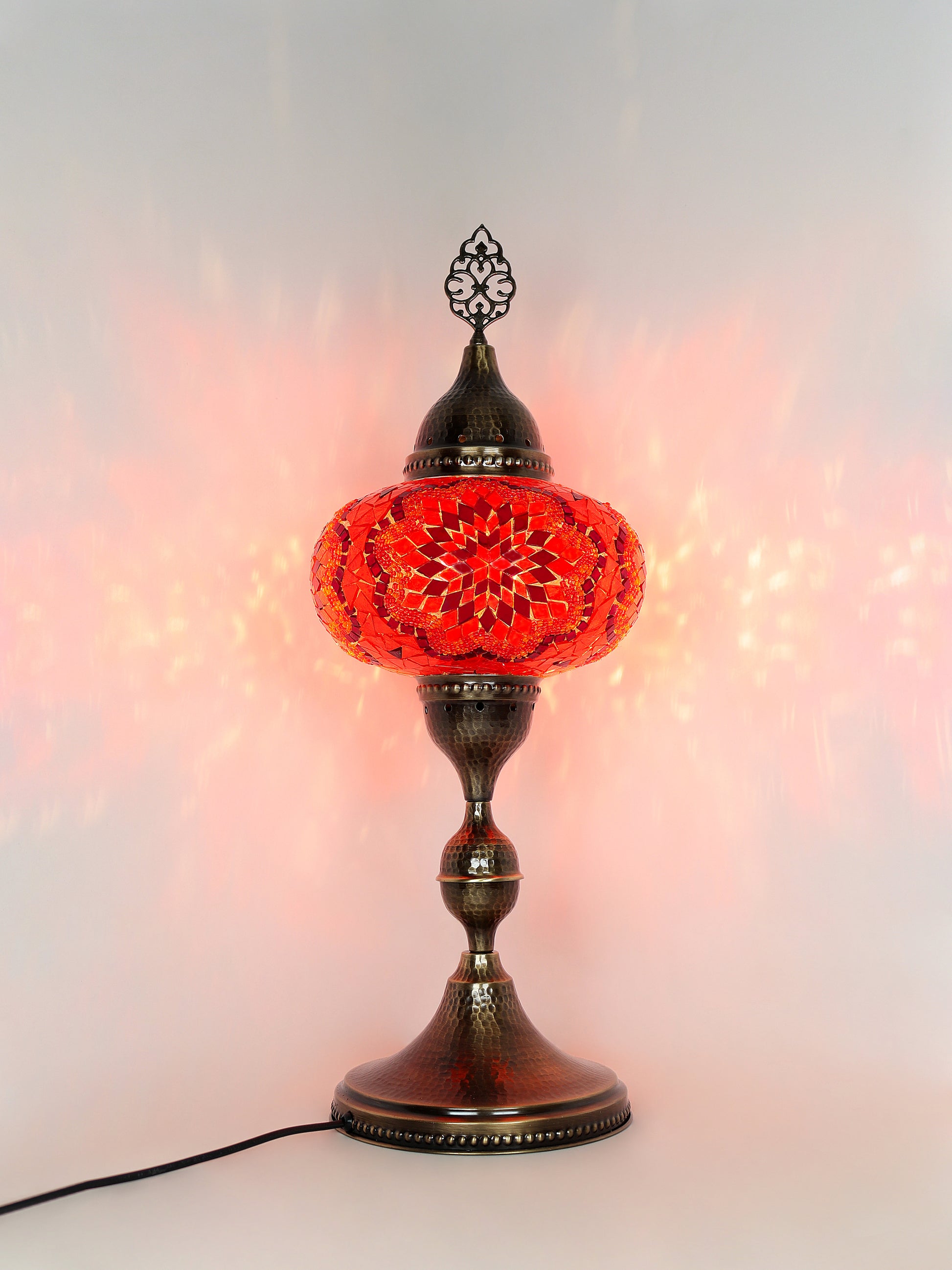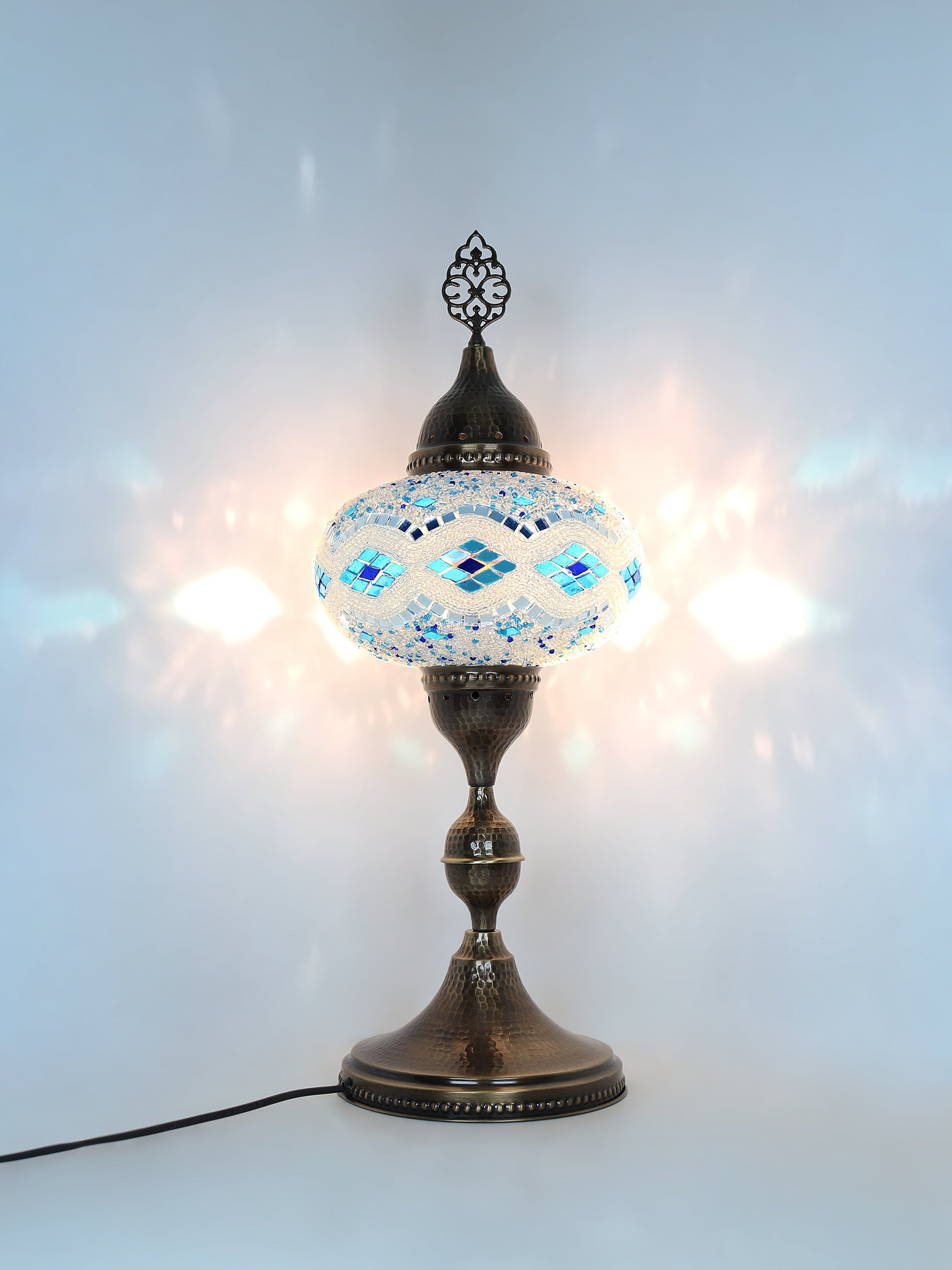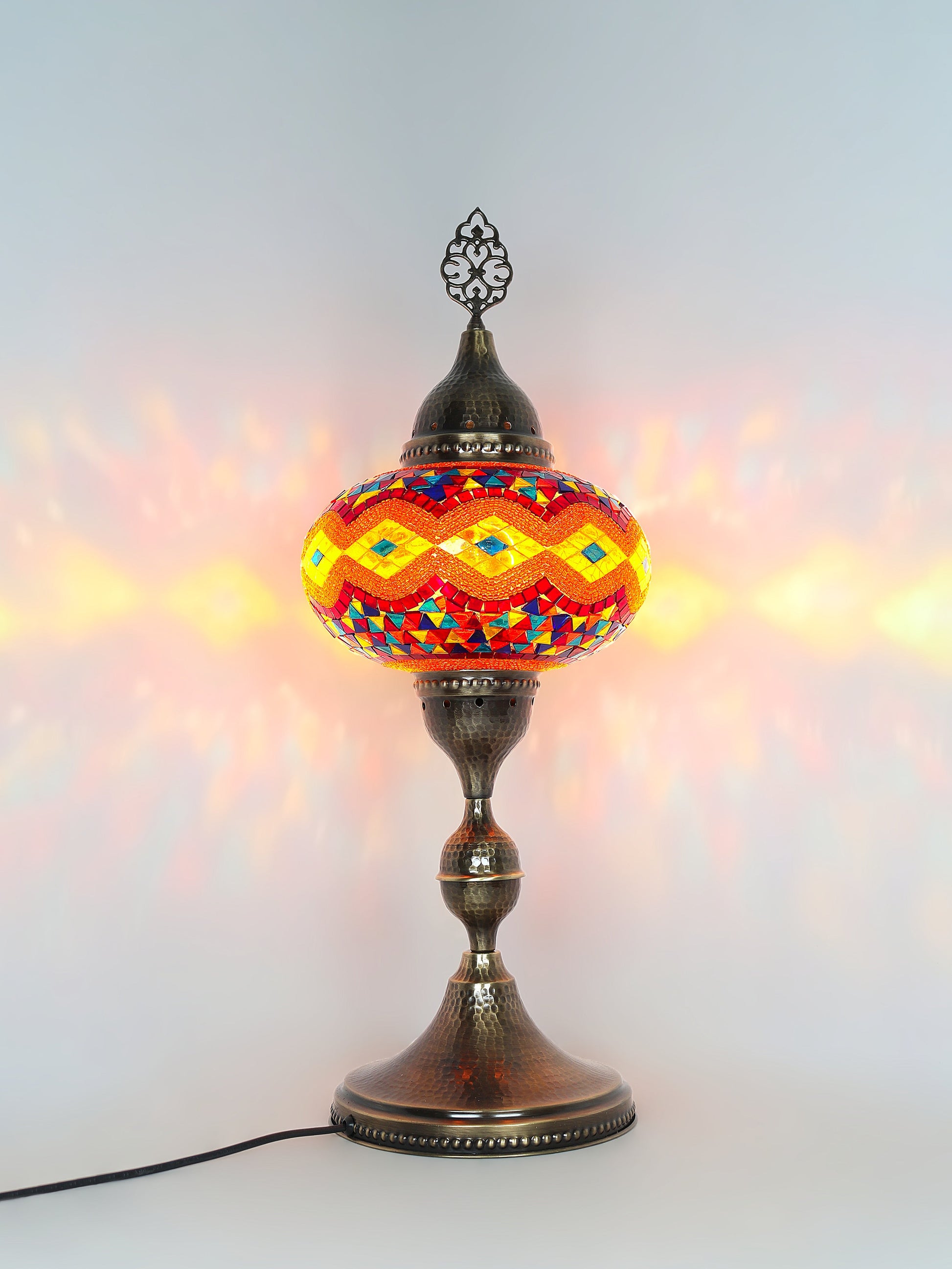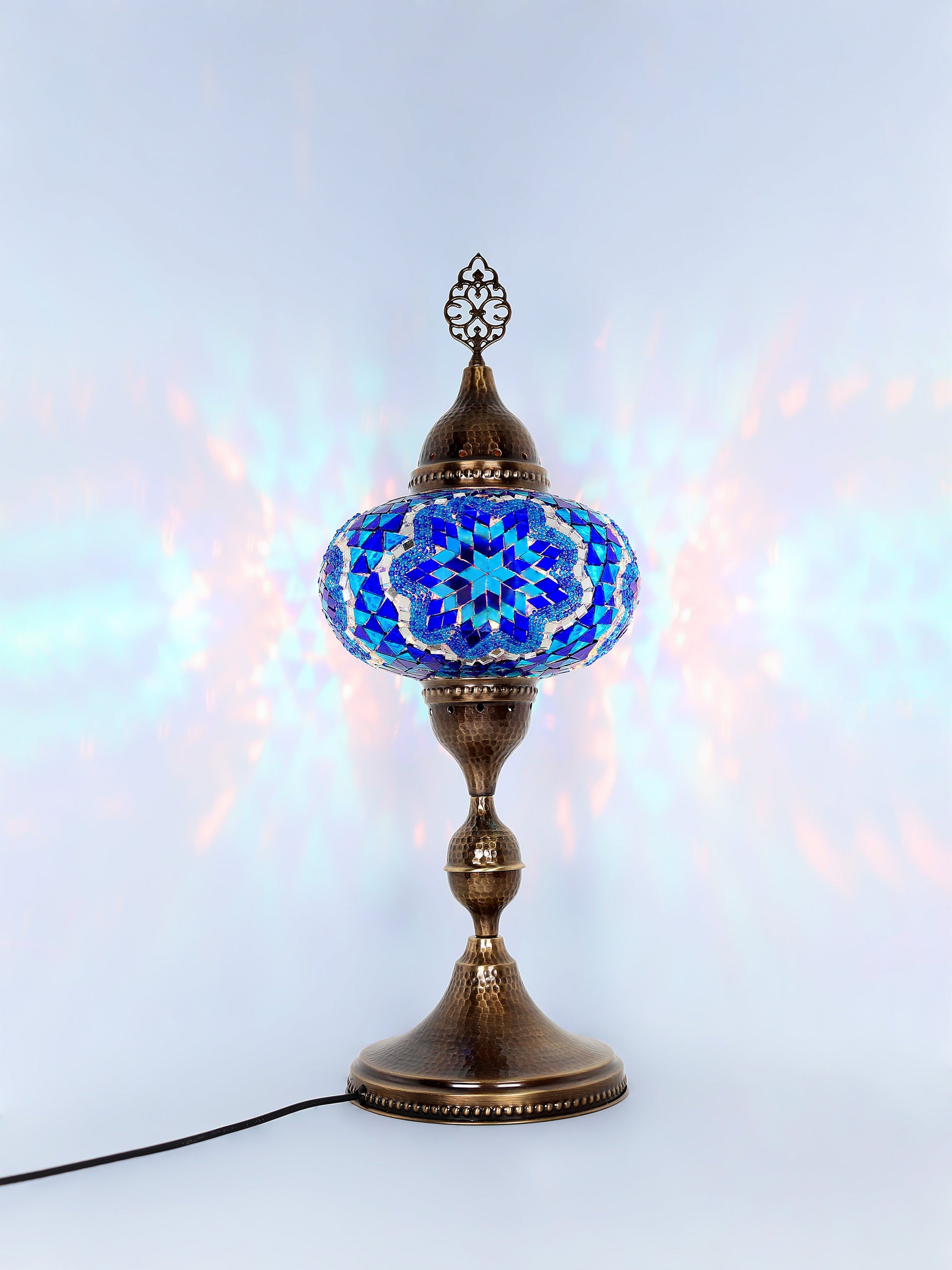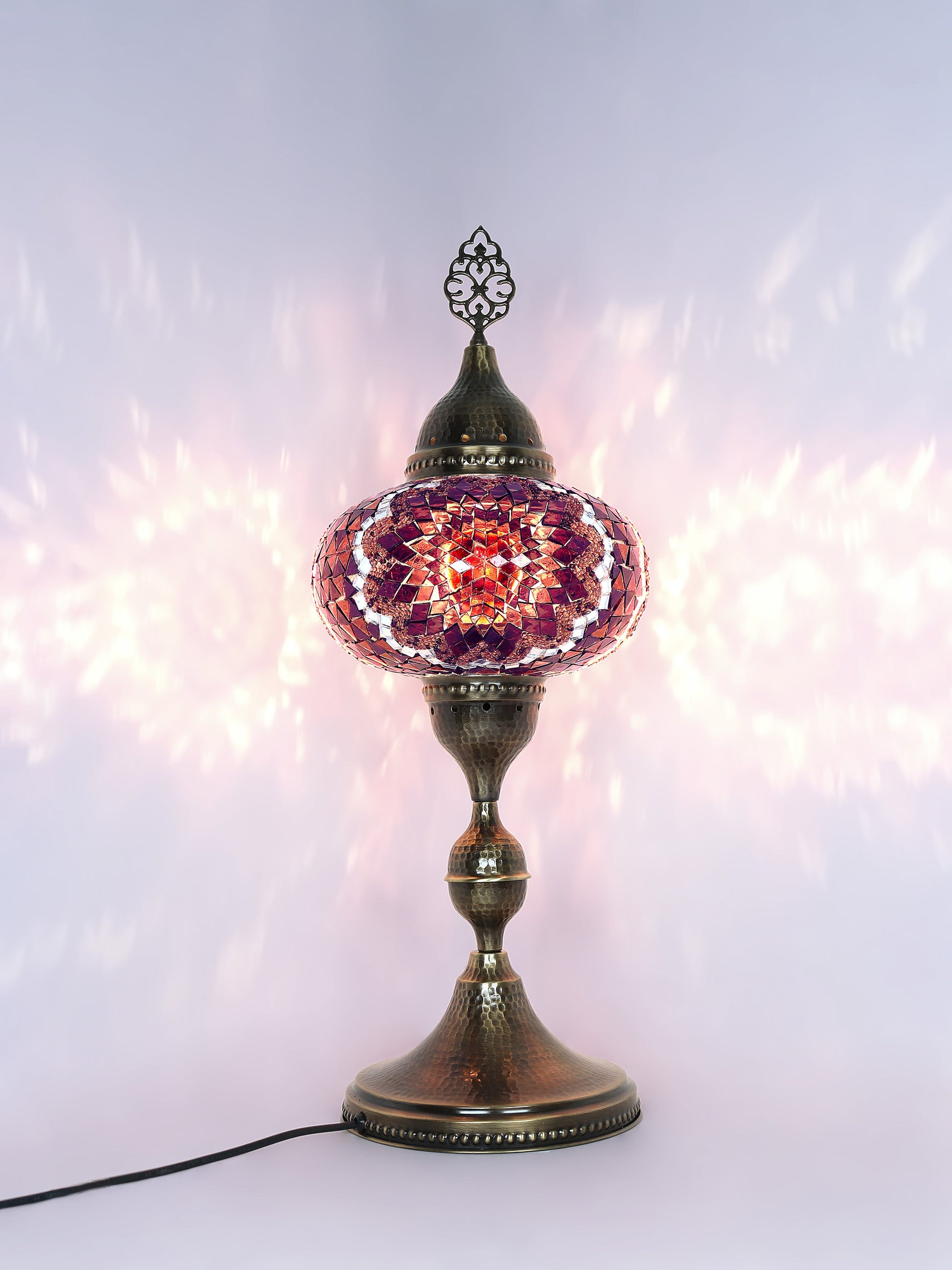 Our Mosaic Glass Lamps feature exquisite Bohemian handblown & hand decorated glass globes that reflect traditional craftsmanship. The metal frames are individually crafted and shaped with precision, especially on larger models, enhancing durability and aesthetic appeal. Our lamps are made in Turkey only after an order is placed, guaranteeing quality and authenticity. The glass globes used are significantly heavier and more robust than standard market offerings, designed to provide lasting beauty instead of delicate fragility. In the unlikely event your lamp is damaged during shipping, please notify us immediately so we can arrange a replacement. Despite recent increases in material costs by 15% to 25%, we remain committed to offering these artisan creations at accessible prices without compromising on quality.