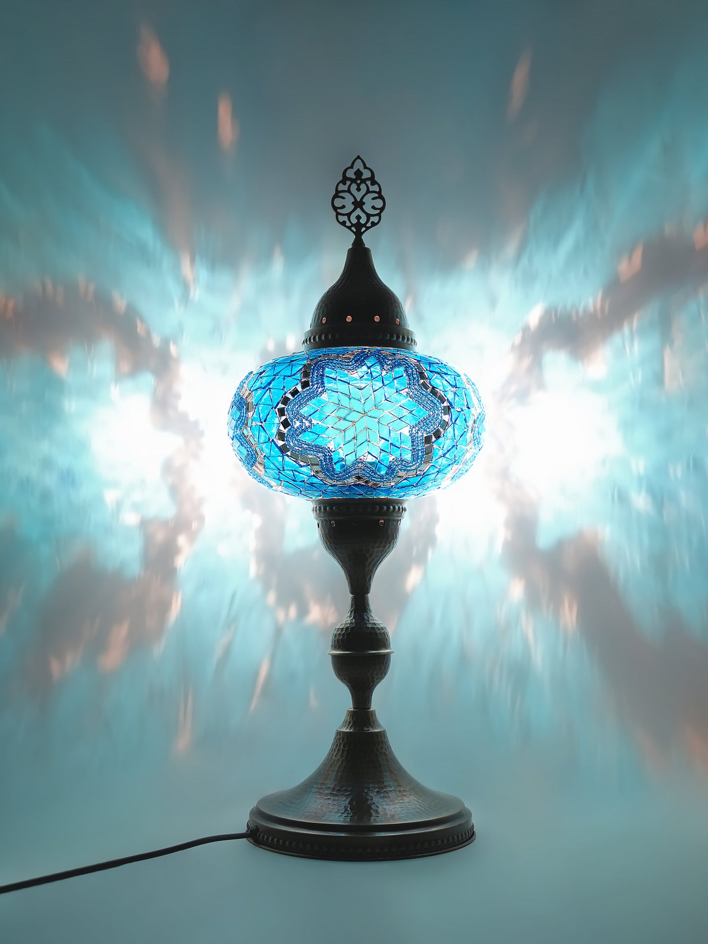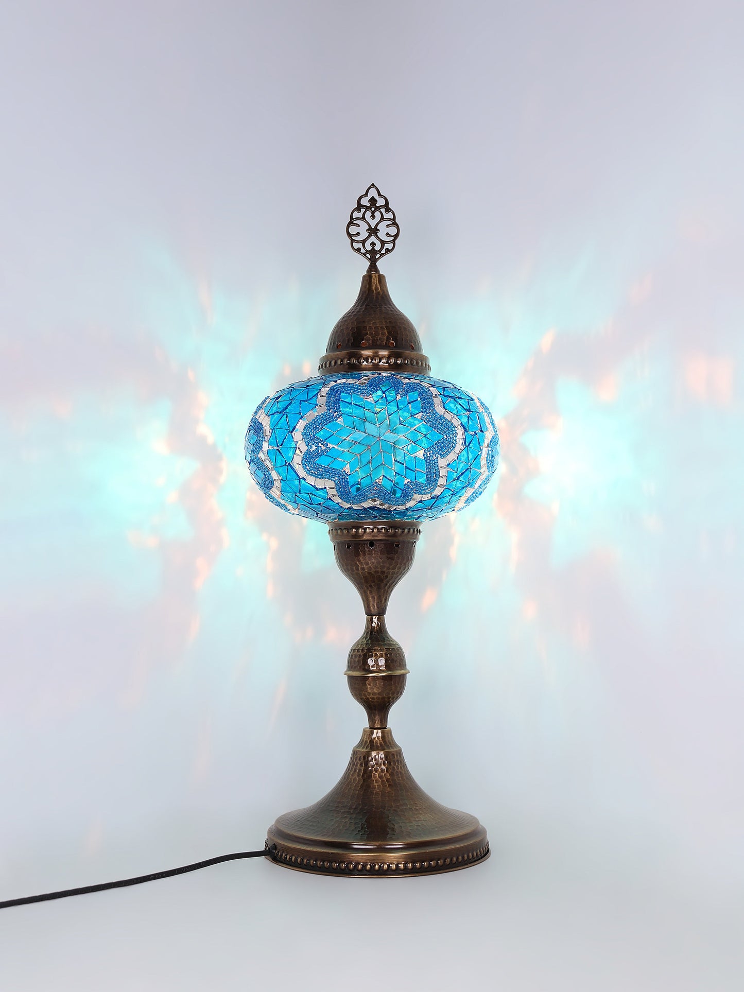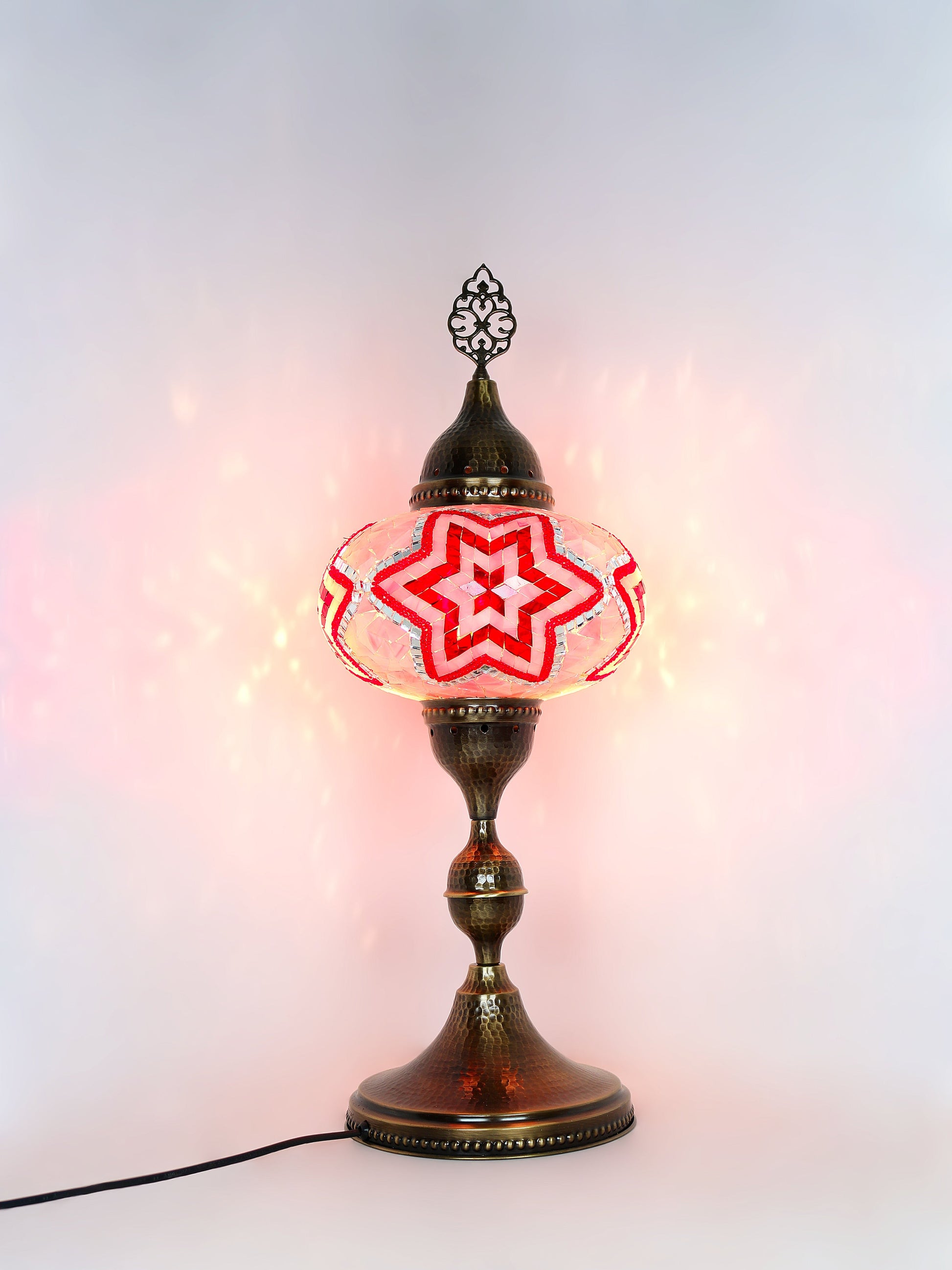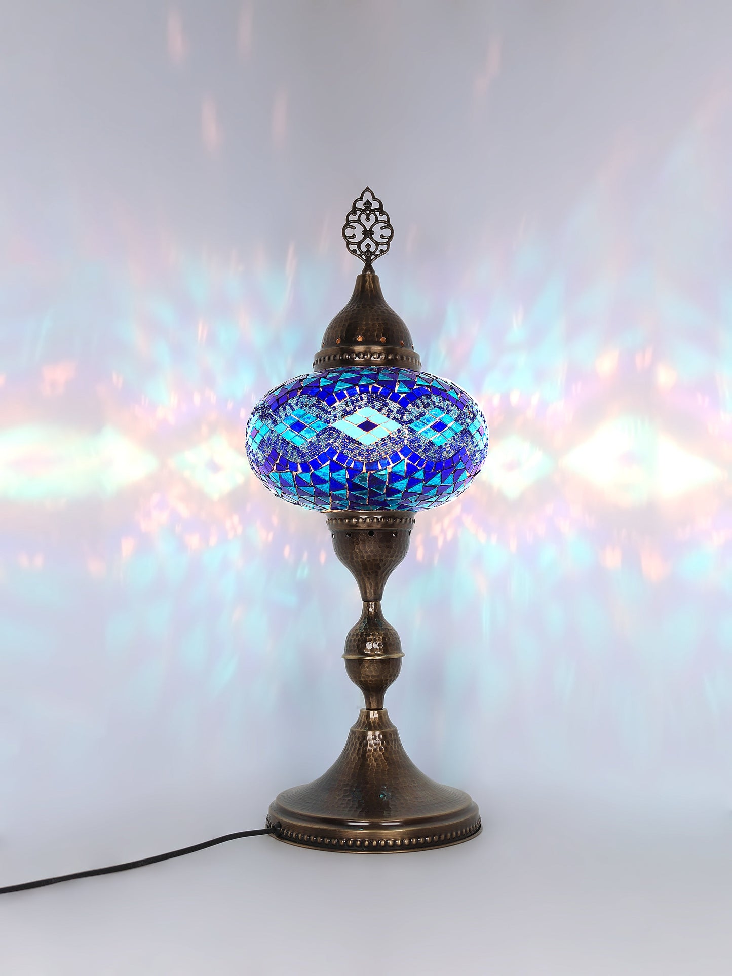 Our Mosaic Glass Lamps feature exquisite Bohemian handblown & hand decorated glass globes that reflect traditional craftsmanship. The metal frames are individually crafted and shaped with precision, especially on larger models, enhancing durability and aesthetic appeal. Our lamps are made in Turkey only after an order is placed, guaranteeing quality and authenticity. The glass globes used are significantly heavier and more robust than standard market offerings, designed to provide lasting beauty instead of delicate fragility. In the unlikely event your lamp is damaged during shipping, please notify us immediately so we can arrange a replacement. Despite recent increases in material costs by 15% to 25%, we remain committed to offering these artisan creations at accessible prices without compromising on quality.