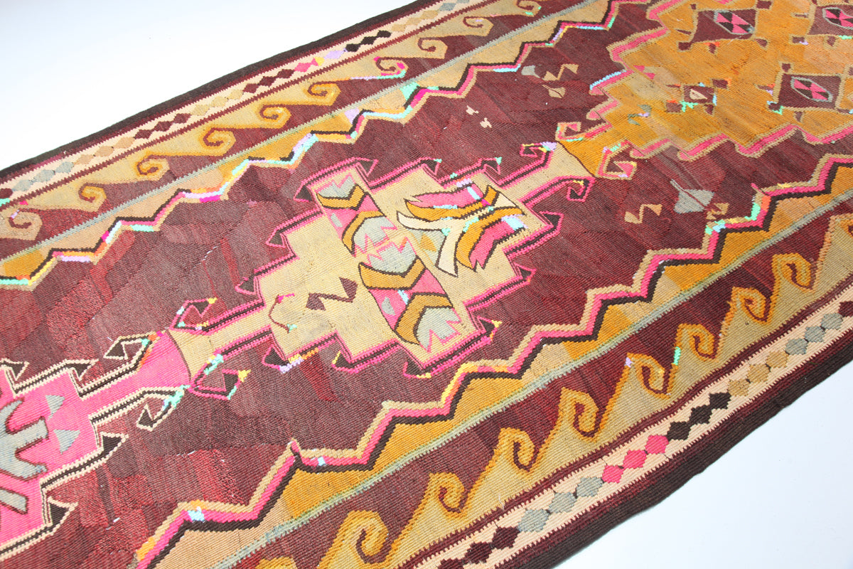 All our carpets and kilims are one-of-a-kind, hand-knotted or hand-woven with 100% hand spun wool pile. Color variation is called "Abrash" which is due to none-bleached wool's absorption of the dyes used or the carpet or kilim maybe woven with 2 different batches of dyed wool, which was available at the time.