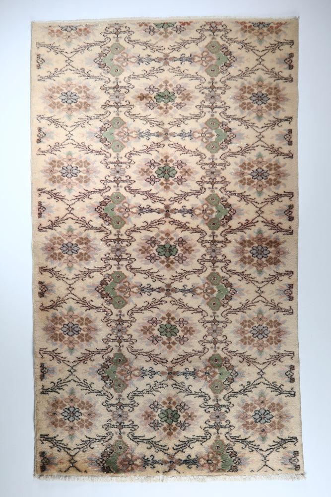 This vintage Isparta carpet is a meticulously hand-woven piece from Western Anatolia, featuring a distinctive whitewashed finish and low-sheared pile that allows it to seamlessly complement a wide variety of interior styles, from contemporary modern to rustic country living. Its design emphasizes highlighted motifs set against a neutral background, creating a subtle yet impactful focal point that enhances the natural beauty of any space. Combining traditional craftsmanship with understated elegance, this carpet offers both aesthetic versatility and enduring quality, making it an exceptional addition to sophisticated home decor.